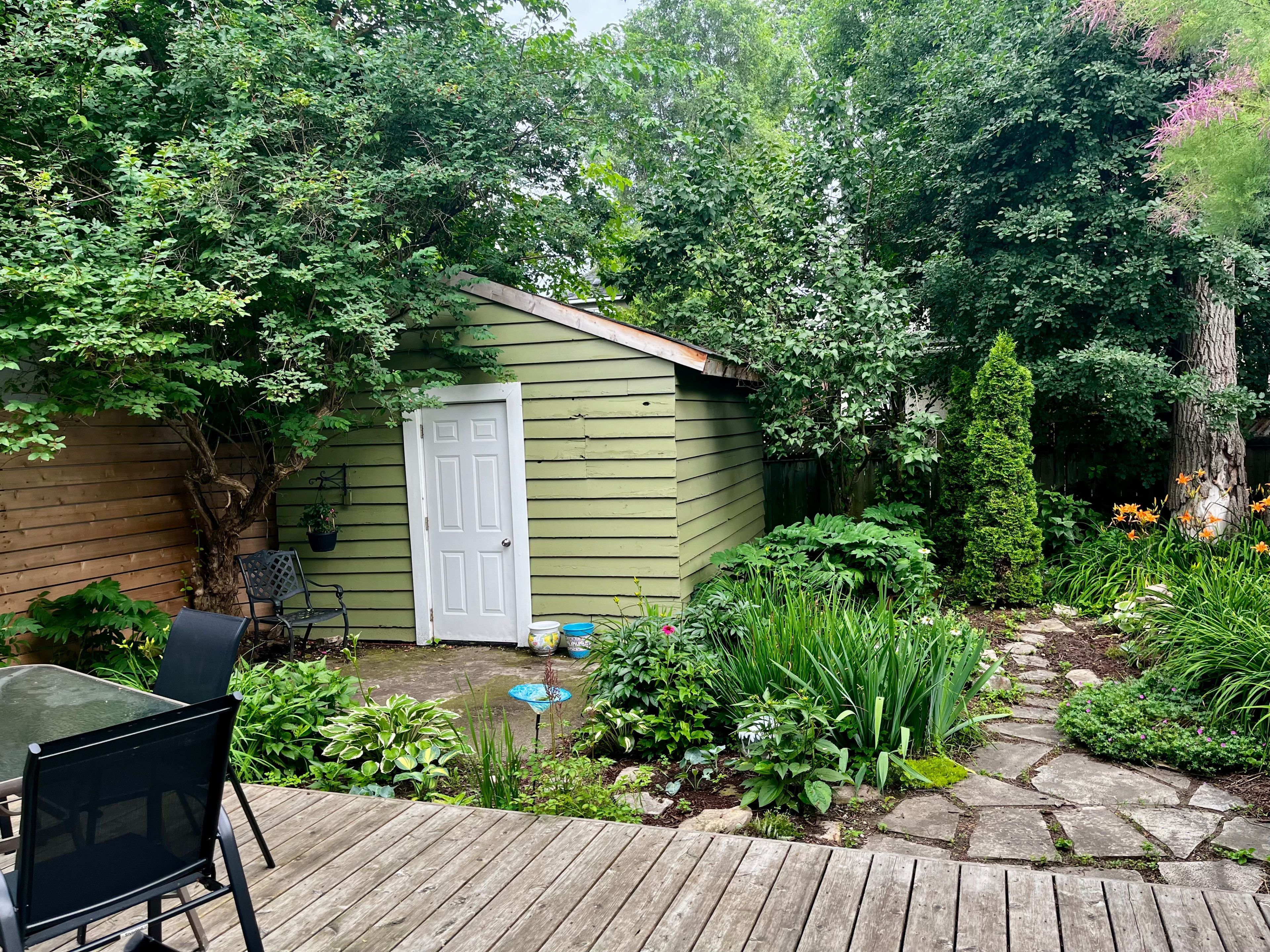 • Private, landscaped yard with a spacious cedar deck for gatherings.