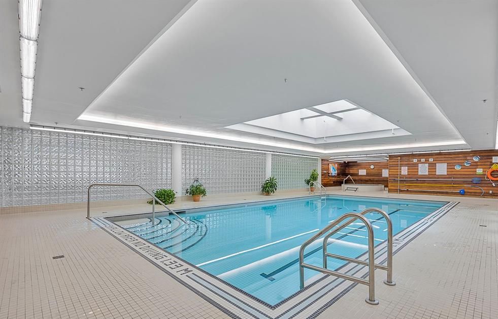• Building amenities include indoor pool, sauna, gym, and meeting room.