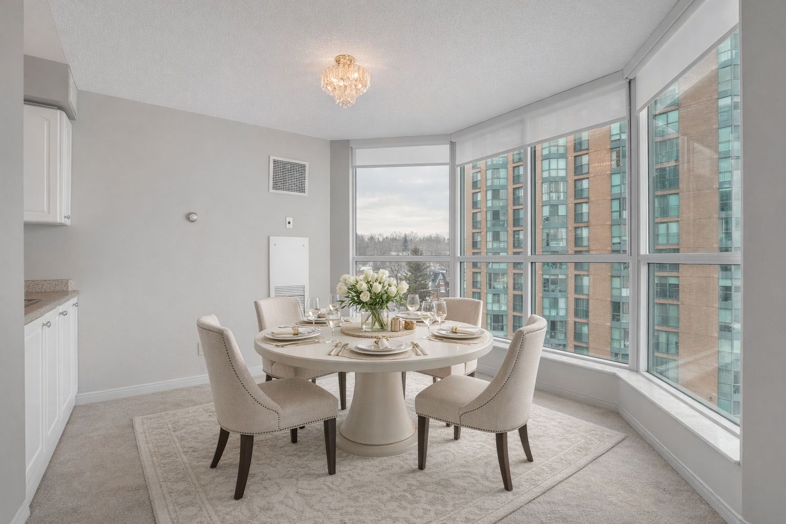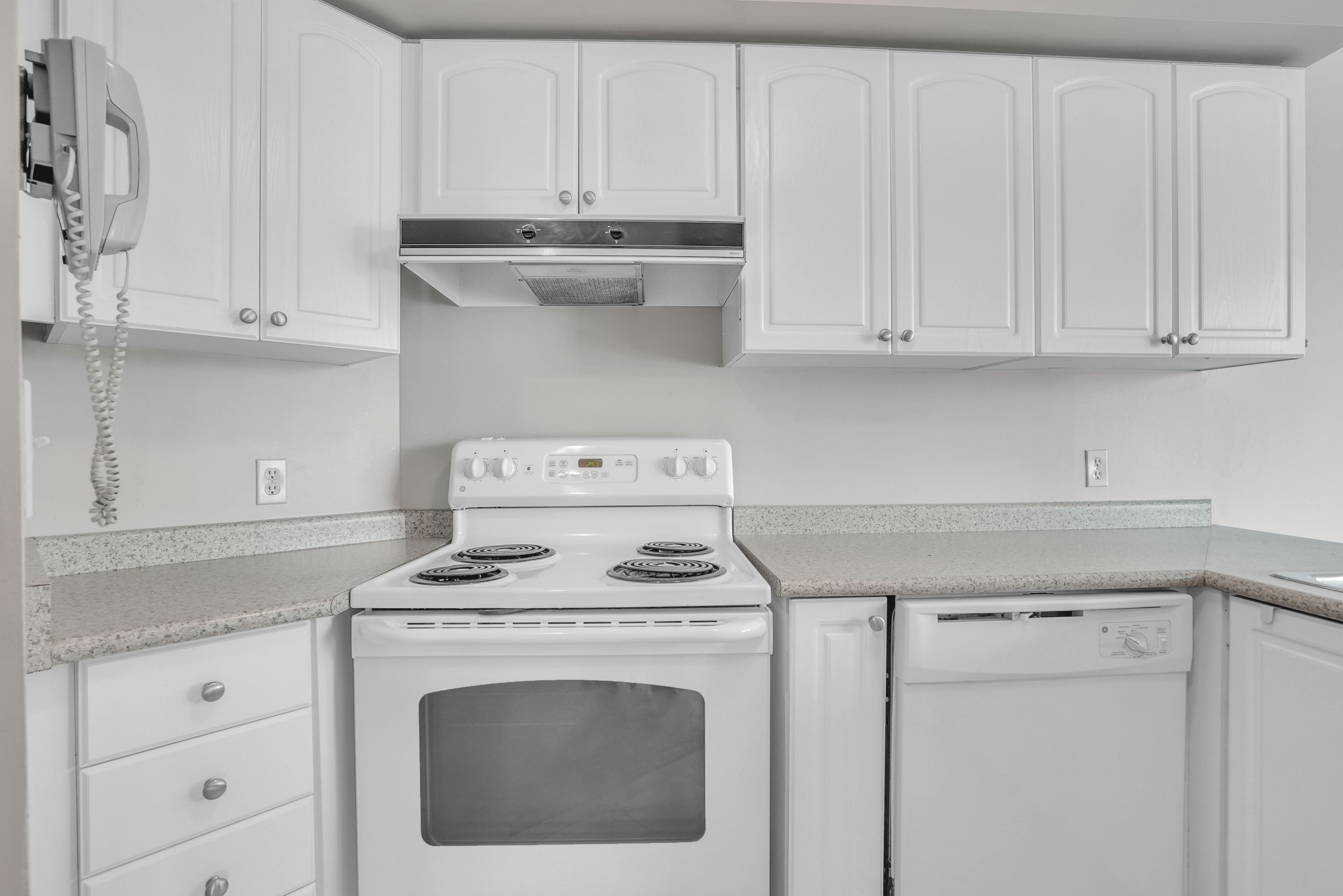 • Bright kitchen with white cabinetry, perfect for entertaining guests.