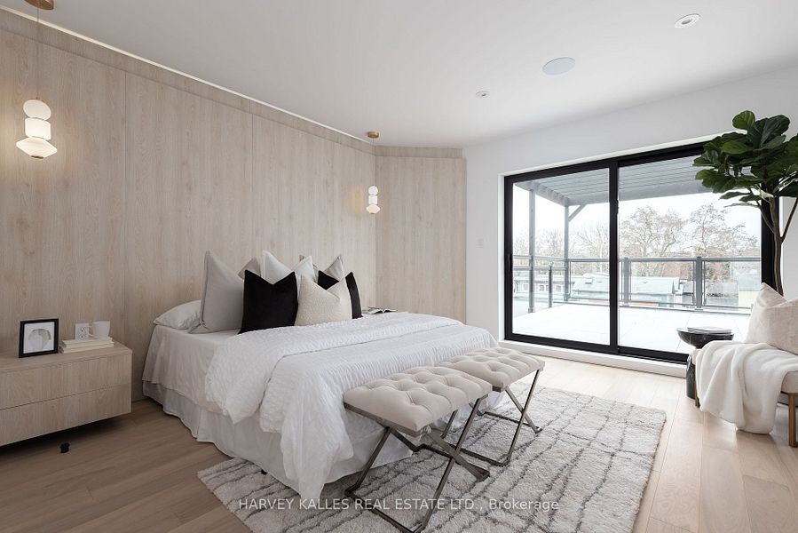 It's not often a home of this caliber becomes available in the vibrant heart of dundas & ossington. This fully detached, three-storey residence is a masterclass in modern luxury! Tucked away on a quiet, tree-lined street, yet just steps from toronto's most exciting restaurants, boutiques, and cultural hotspots. Thoughtfully reimagined from top to bottom, the home offers 3,195sf, including 2,335sf above grade & 860sf fully finished lower level. Every element is curated to the highest standard, from 10-foot ceilings and floor-to-ceiling windows to italian marble accents including extremely elegant living room fireplace, custom millwork, sonos-integrated in-ceiling speakers, and indirect mood lighting throughout. The custom kitchen features integrated fisher & paykel appliances and over 17 feet of built-in storage, leading to a powder room, mudroom, and walk-out to a fully fenced garden. Upstairs, three bedrooms include an incredible third-floor primary retreat with custom paneling, a private terrace with pergola, custom walk-in closet, and spa-like 5-piece ensuite bath. The finished lower level adds flexibility with a family room, fourth bedroom with 3-piece ensuite, in-ceiling speakers, tons of additional storage, and a laundry rough-in. Complete with a welcoming front porch, landscaped front yard, and parking for two, this exceptional home offers luxurious urban living in one of toronto's most sought-after neighborhoods.