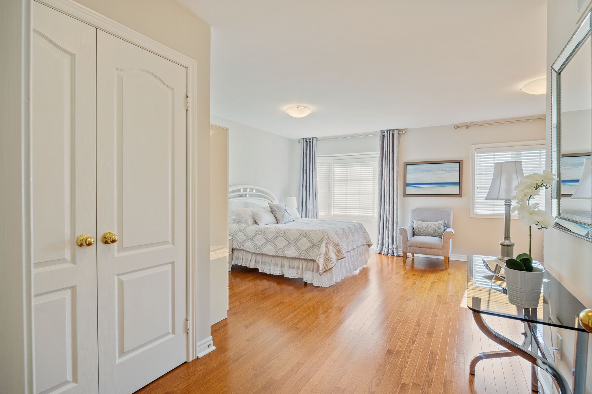 Welcome to 140 kingsbridge circle. A luxurious custom designed freehold townhouse (1885 sq ft plus finished basement). Situated on a premium lot. This meridian 3 bedroom model by acorn home was redesigned by the builder combining the primary bedroom with the 2nd bedroom. Can be converted back to 3 bedrooms. Walk out from kitchen to large deck and back garden surrounded by mature trees. Custom gourmet eat-in kitchen with granite countertops and stone glass back splash. Spacious family room with vaulted ceiling and gas fireplace. Main floor laundry with direct garage entry. 9ft ceilings on main level and smooth ceilings throughout. Oak staircase open to finished basement featuring a bedroom/office, 3 piece bathroom, rec room, custom built-ins., cold room & lots of storage. Close to schools, public transit. Parks and shopping.