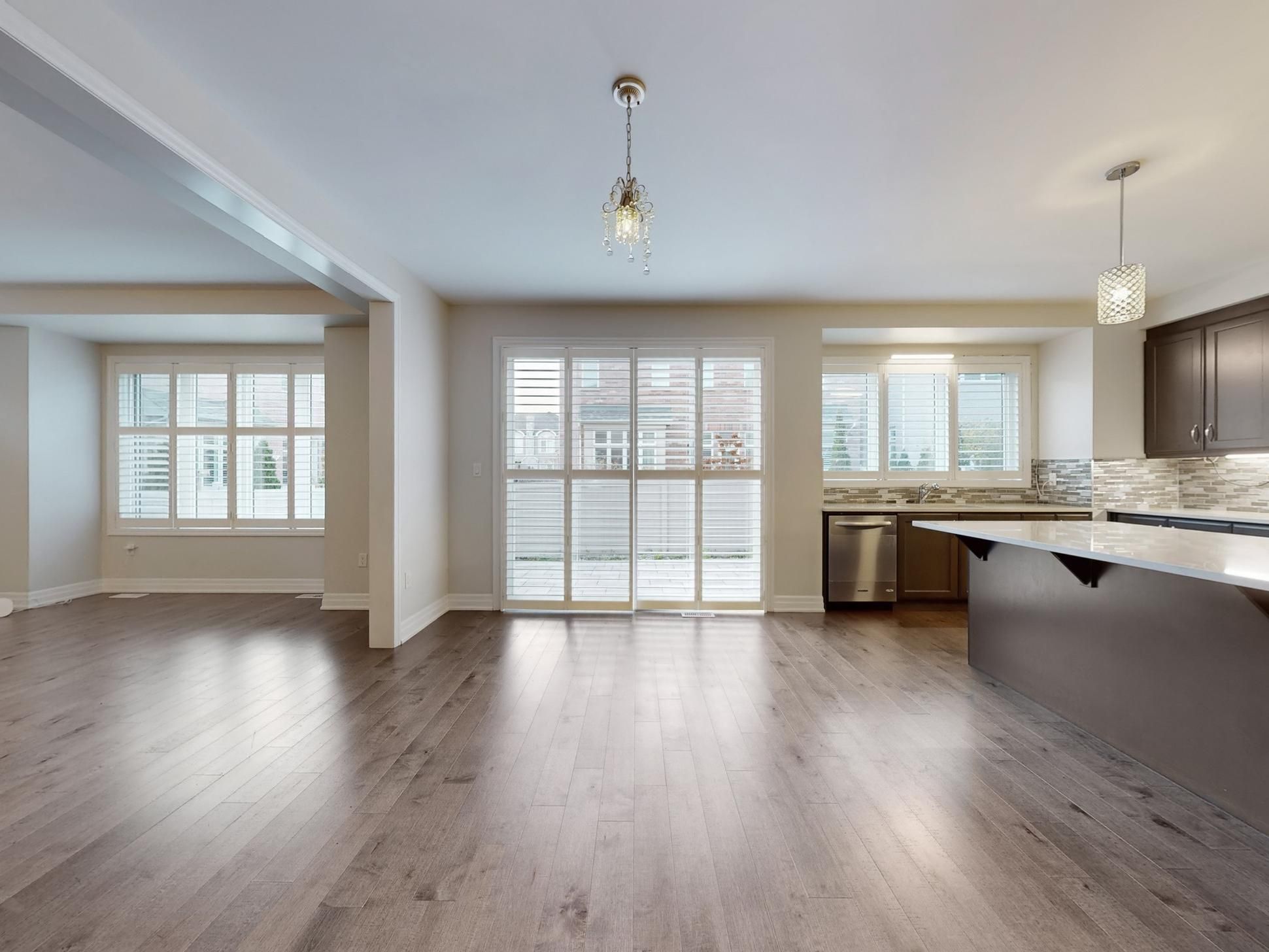 • Open concept kitchen featuring a large quartz island and high-end appliances.