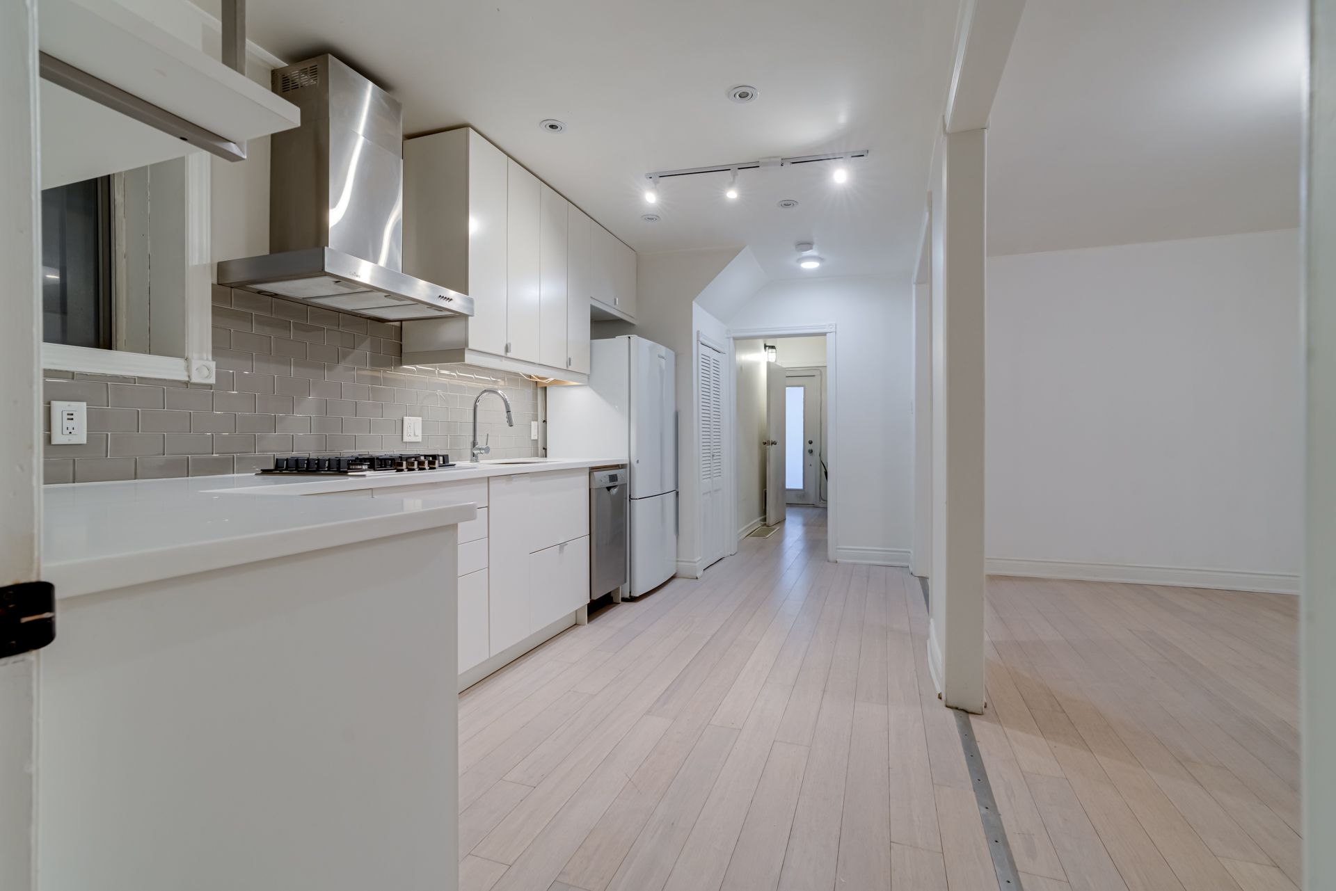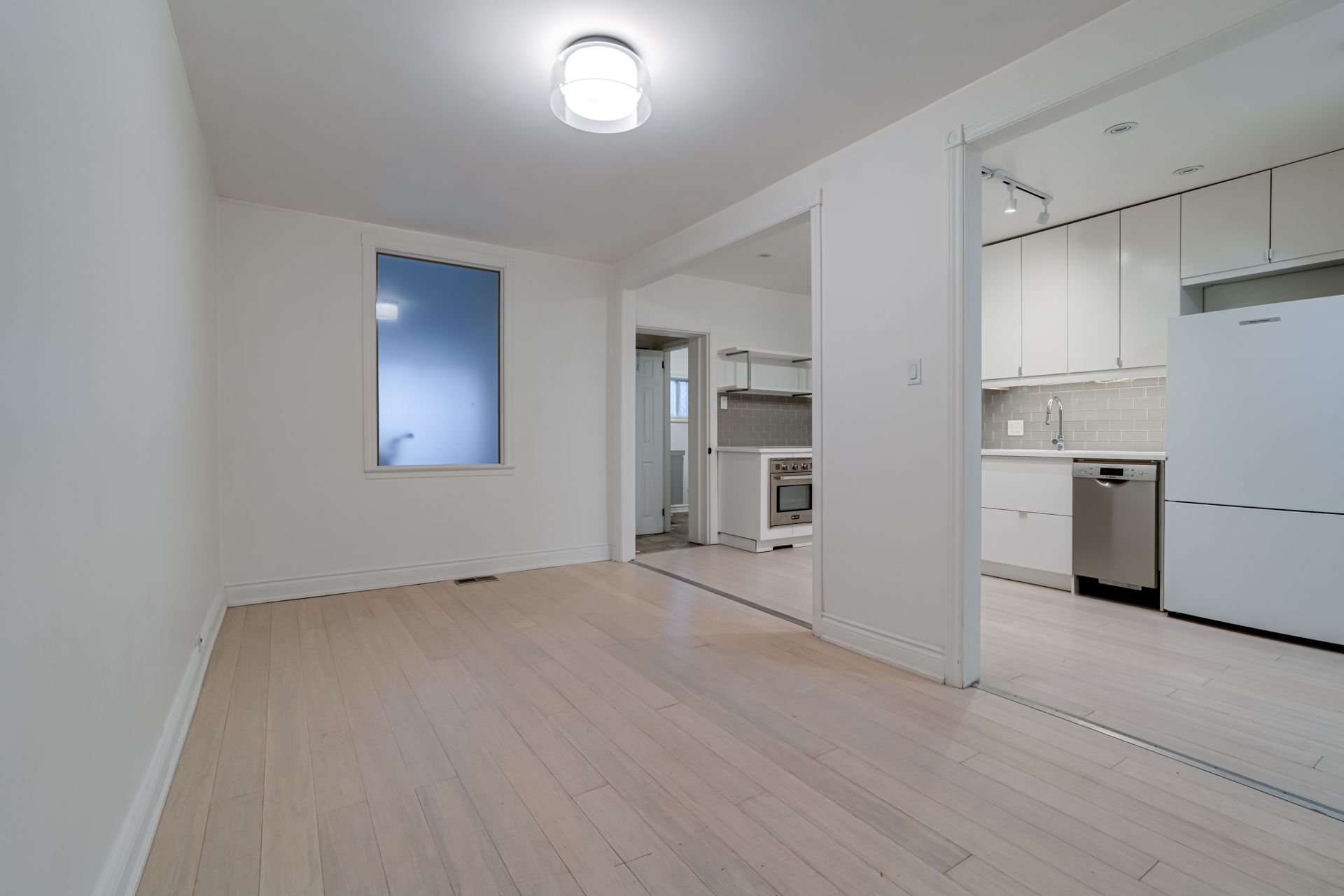 Bright and well-laid-out 1-bedroom main floor suite at 140 millicent street, a quiet residential street in the junction-wallace-emerson neighbourhood. Big open space with great flow between living/dining room and the functional kitchen. Updated kitchen with built-in stainless steel appliances, quartz counters and led track lighting. Good storage and work surfaces. King sized bedroom with large window, decorative fireplace mantle and built-in closet. Ensuite laundry with stacked washer/washer dryer. Updated bathroom with open shower. Access to shared fenced backyard and front porch. ** utilities included, internet available for $50/month. Short walk to fresh co., food basics and shoppers drug mart. Close to bloor go and the up express station. 8 minute walk to lansdowne ttc subway stop for easy access to the downtown core... You'll love living here!