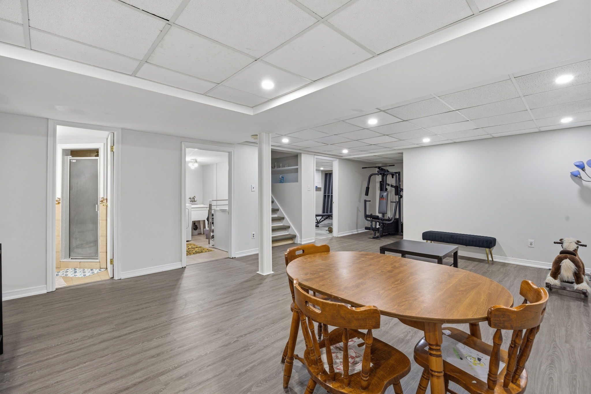• Finished basement with an additional bedroom and bathroom.