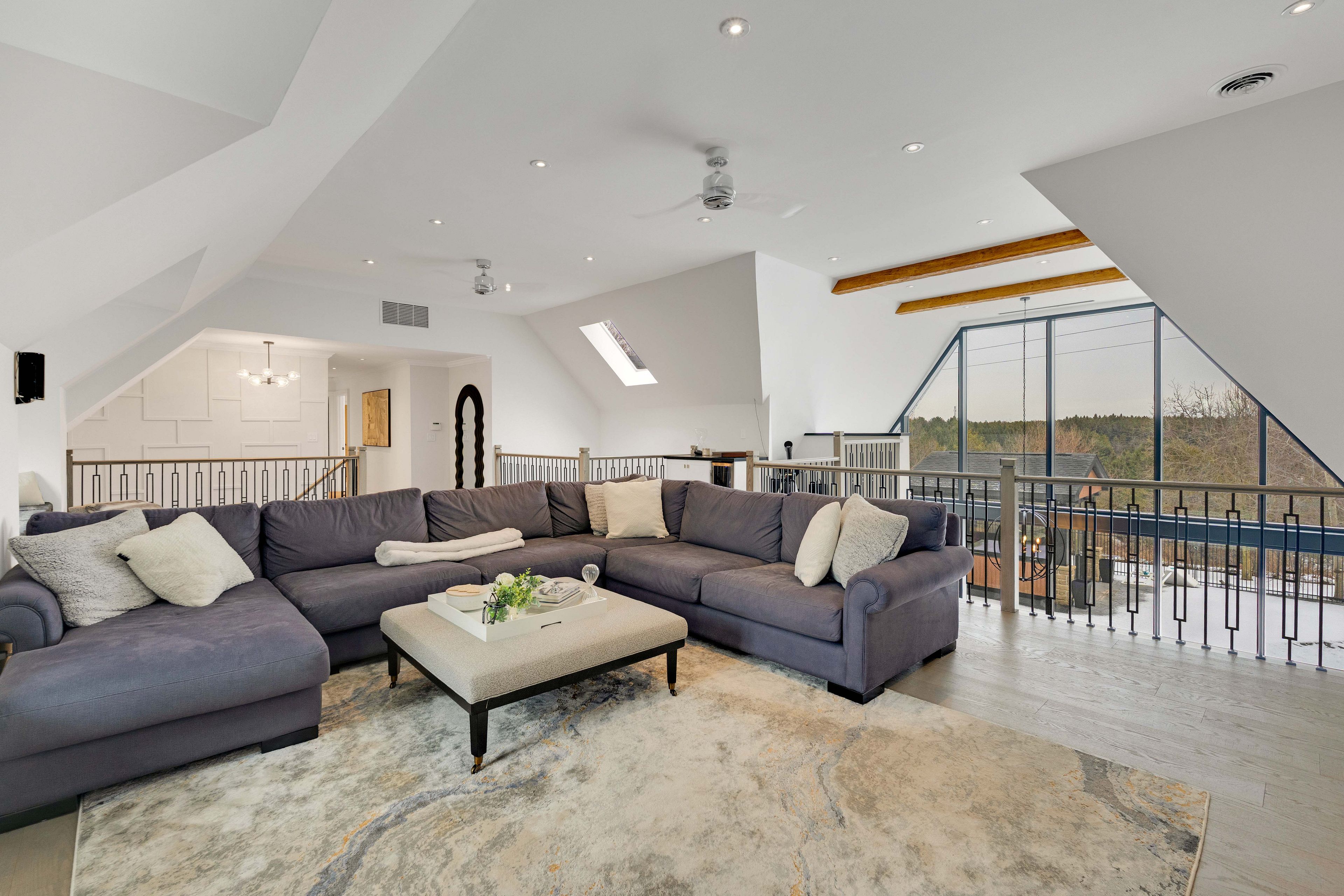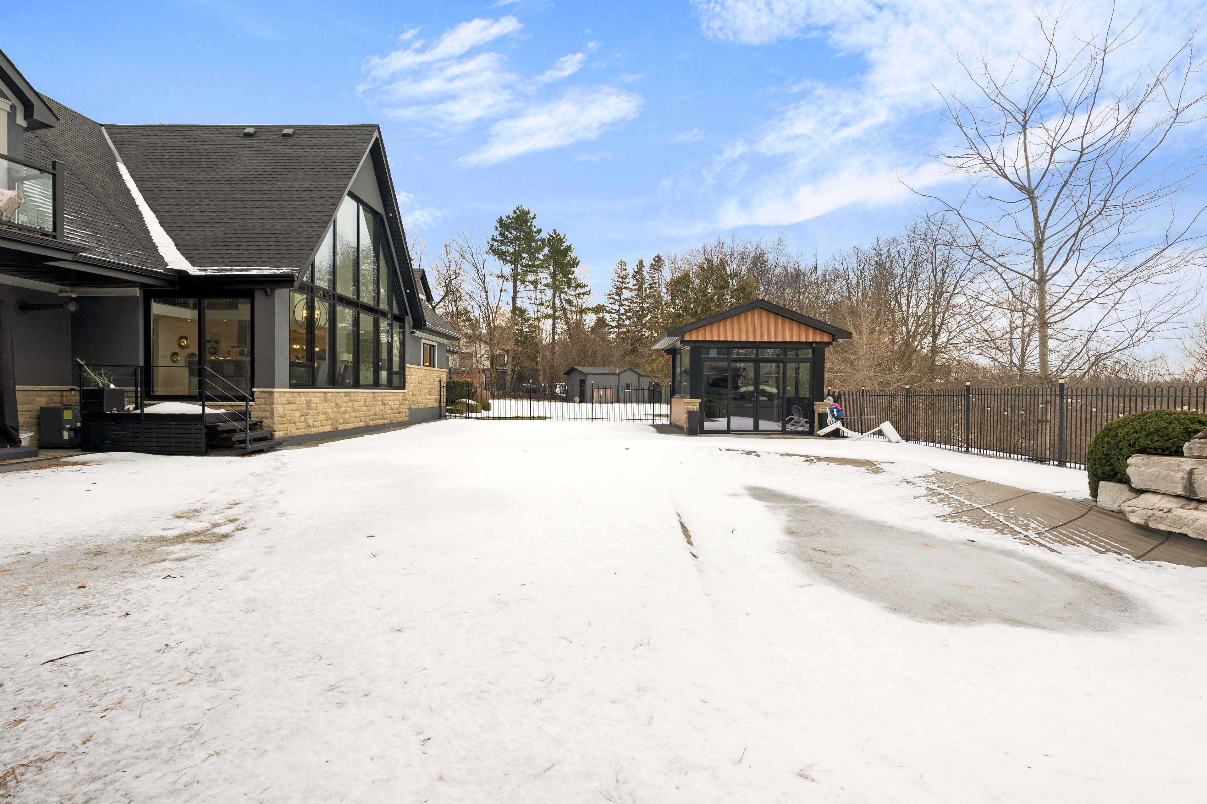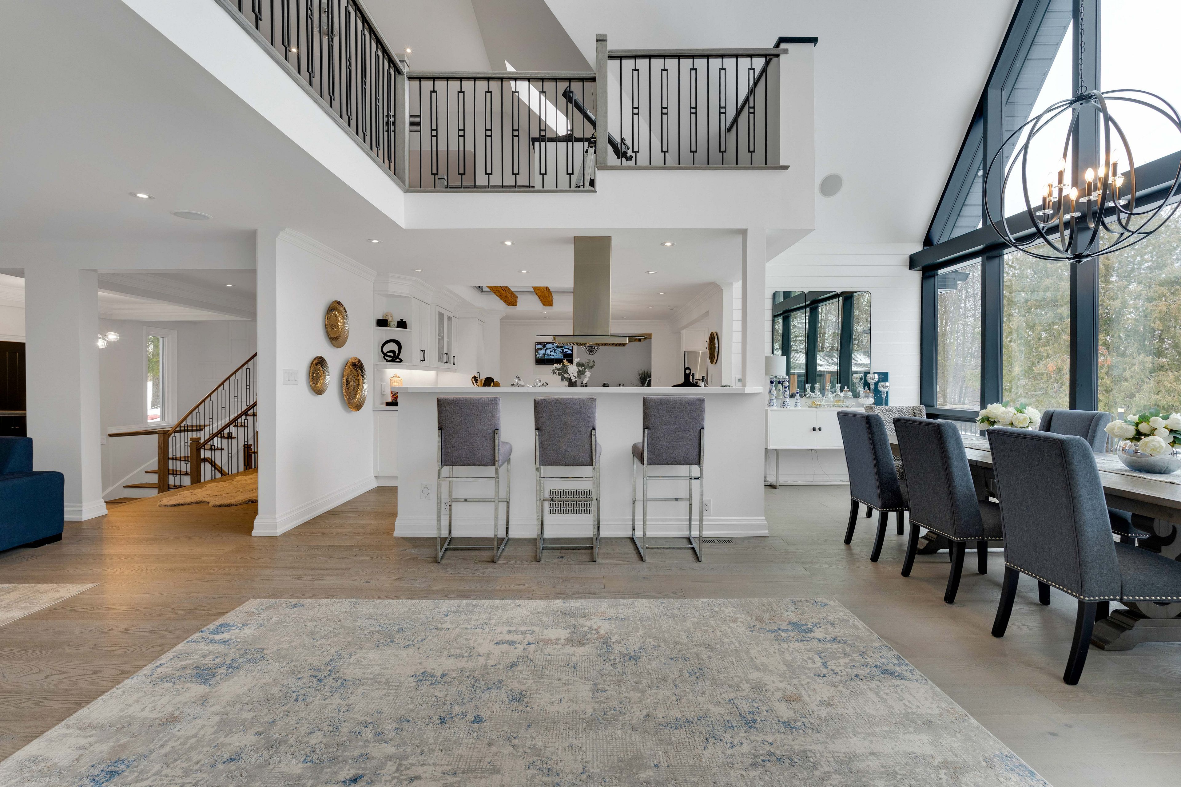 A distinguished kleinburg estate. Welcome to 140 ravendale court, an exceptional luxury residence offering over 5,000 square feet of above grade living space, complemented by a fully finished lower level featuring two expansive rooms and a temperature controlled walk in wine cellar, providing approximately 7,000 square feet of total refined living area. Set on a prestigious ravine lot measuring almost 2 acres and backing onto protected conservation lands, this private estate offers a rare combination of tranquility, exclusivity, and natural surroundings. Thoughtfully designed to accommodate both grand-scale entertaining and multi-generational living, the home features five generously proportioned bedrooms and six spa-inspired bathrooms, including a main floor bedroom and two primary suites on the second level, an exceptionally rare and desirable layout. The open concept main floor is highlighted by a chef-inspired kitchen and dining area, enhanced by soaring vaulted ceilings, expansive windows, and a seamless flow ideal for elegant entertaining. The outdoor living experience is equally impressive, featuring a resort style backyard with an in-ground pool, private cabanas, outdoor bar, enclosed hot tub spa, and a self contained guest room with an additional bathroom, creating an exceptional setting for both hosting and relaxation. Complete with two oversized garages, ideal for automotive or recreational enthusiasts, this remarkable property represents a rare opportunity to acquire one of kleinburg's most distinguished estate residences, where privacy, luxury, and lifestyle converge.