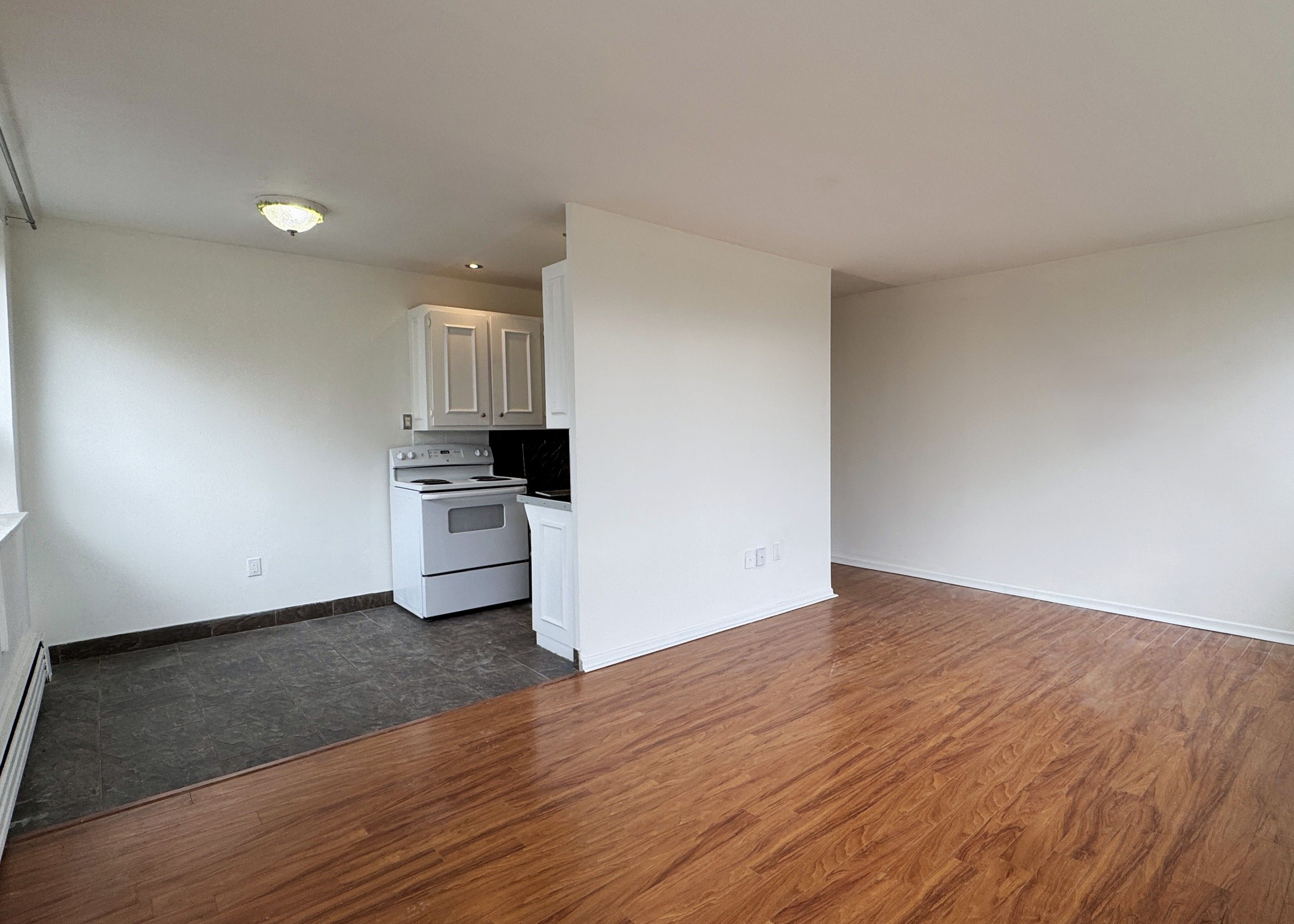 • Bright open-concept living and dining area with natural light.