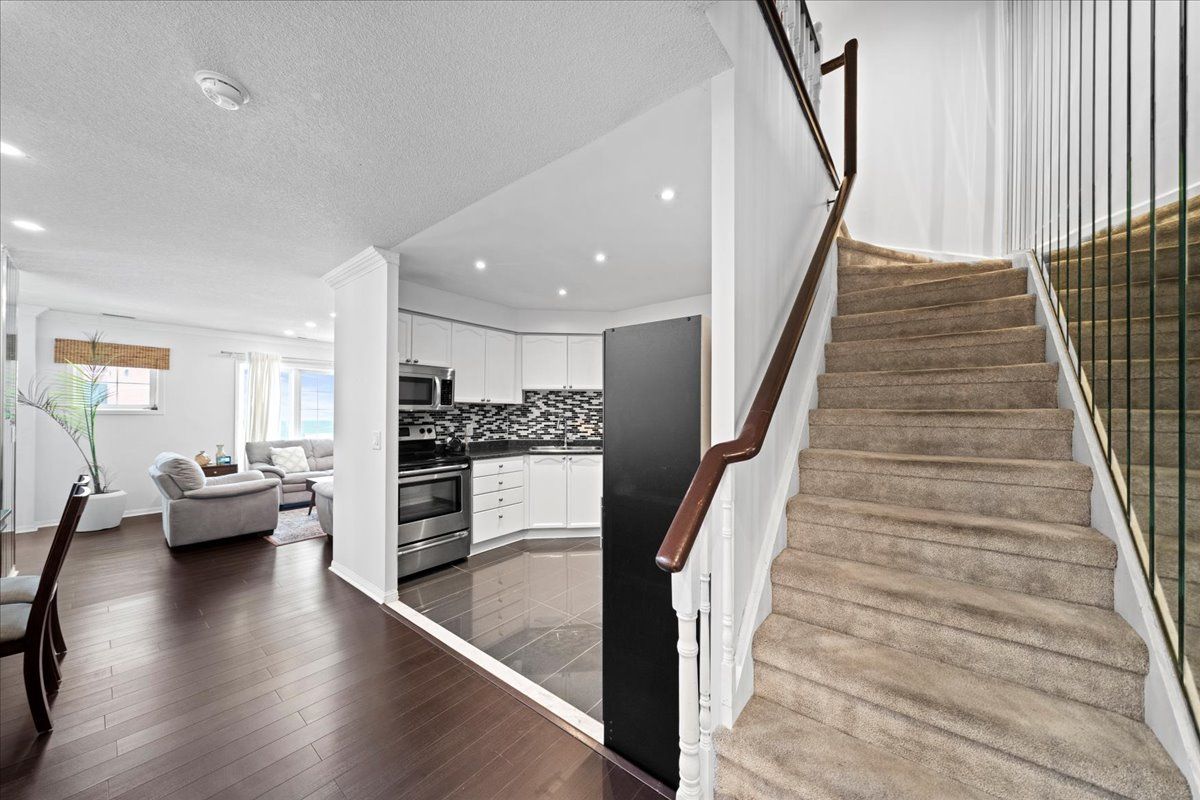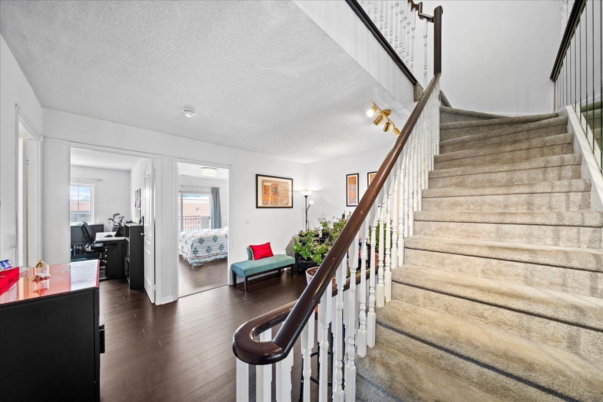 Welcome to this bright and beautifully maintained 3-bedroom, 3-bathroom condo townhome in the highly sought-after town centre neighbourhood of pickering. Offering a smart, functional layout and the rare bonus of two separate entrances-one from the street and one from the building hallway-this home combines comfort and convenience. The main level features a spacious living room and an open-concept kitchen and dining area, perfect for everyday living and entertaining. The second level offers two sun-filled bedrooms, a full bath, a cozy loft/sitting area, and a balcony for added outdoor space. The third floor is dedicated to a private primary retreat with a walk-in closet and an ensuite bath. A large storage room add extra practicality. One parking spaceunbeatable location-walk to pickering town centre, library, recreation centre, schools, restaurants, transit, and pickering go station. Minutes to hwy 401 & 407. Ideal for families, professionals, or anyone seeking style, space, and exceptional convenience.