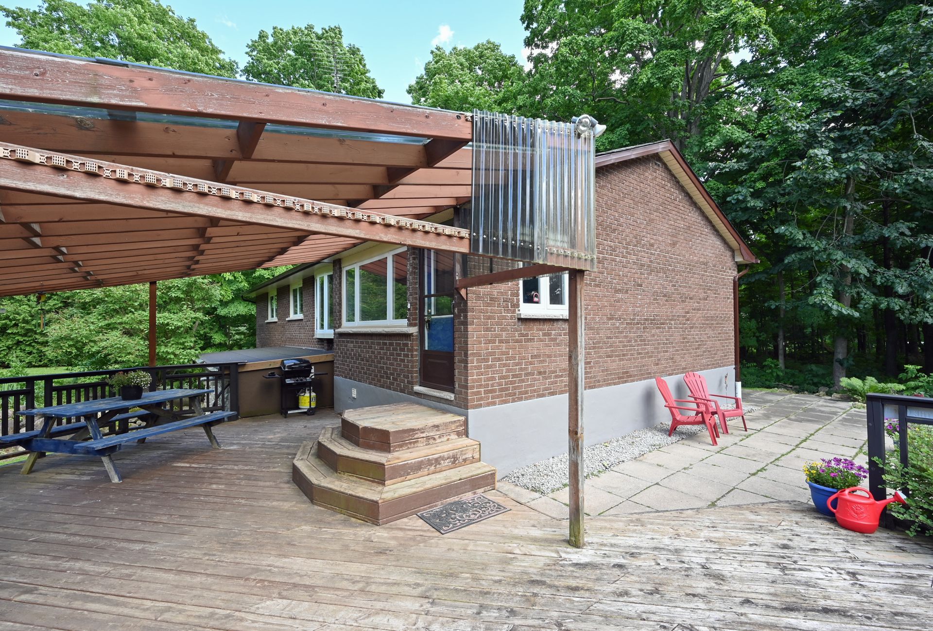 Welcome to your dream home and retreat! This charming 3+1 bedroom, 2-bathroom bungalow sits on a sprawling 2. 9-acre lot, offering unparalleled privacy and tranquility amidst a heavily treed landscape. Forget the need for a separate cottage, this home provides the perfect getaway with its serene views overlooking a large pond and a beautiful large deck for gathering, entertaining, or simply taking in the views. Inside, you'll find a cozy and inviting atmosphere, perfect for family living or entertaining guests. The main floor features a mudroom combined with a laundry area for added convenience. The finished lower level boasts a large rec room, an additional bedroom, and a walkout to the backyard, providing ample space for relaxation and activities. The spacious detached double car garage provides ample storage and workspace. Located on a paved road, this home offers the perfect balance of seclusion and convenience, with shopping and amenities just a short drive away. Don't miss the chance to own this slice of paradise! Approximately 10 minutes to acton and the go station, 15 minutes to to georgetown and 25 minutes to milton