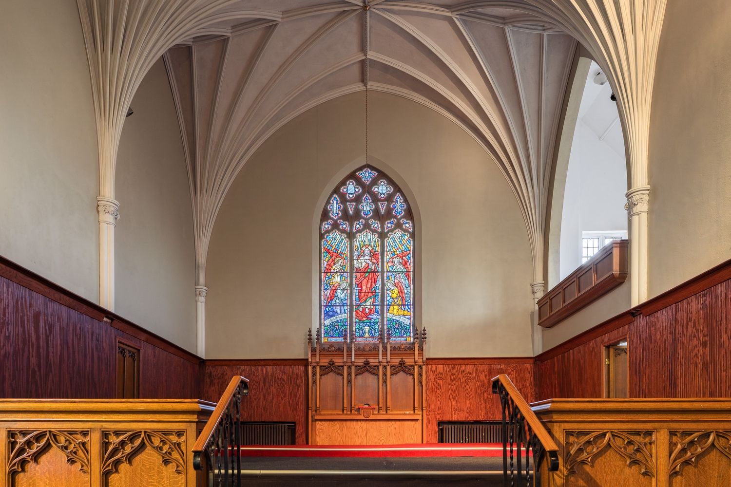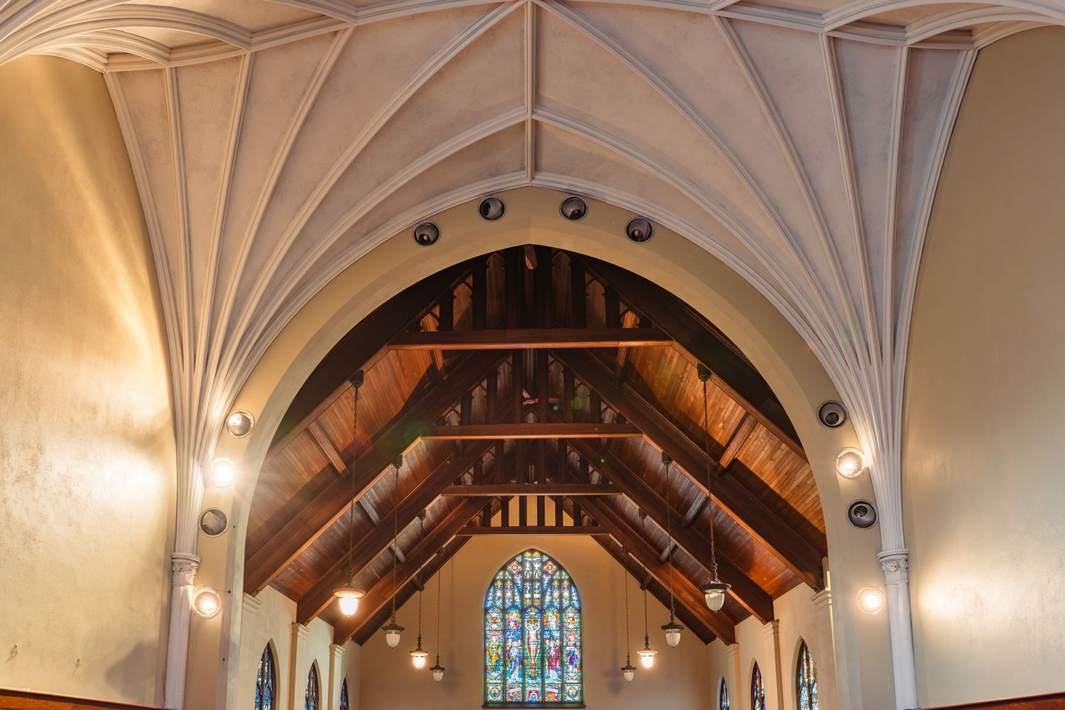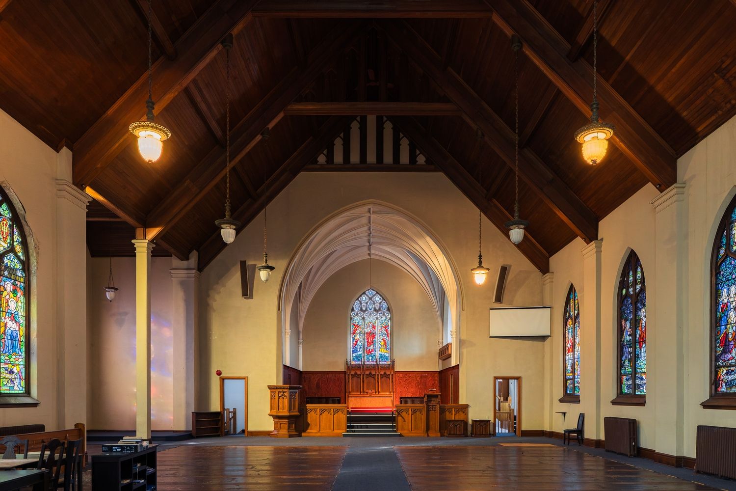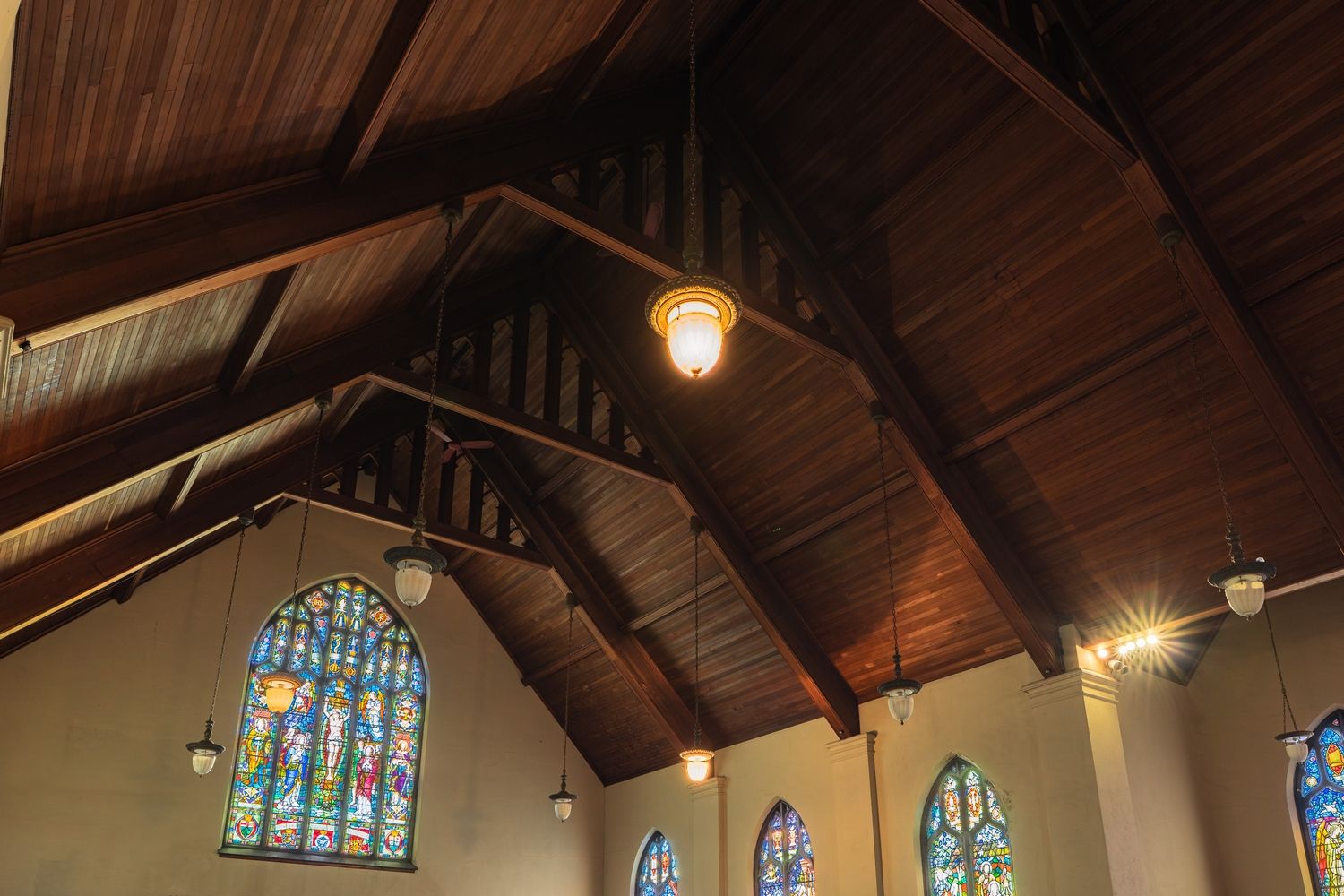 • Beautiful stained-glass windows create a vibrant atmosphere throughout.