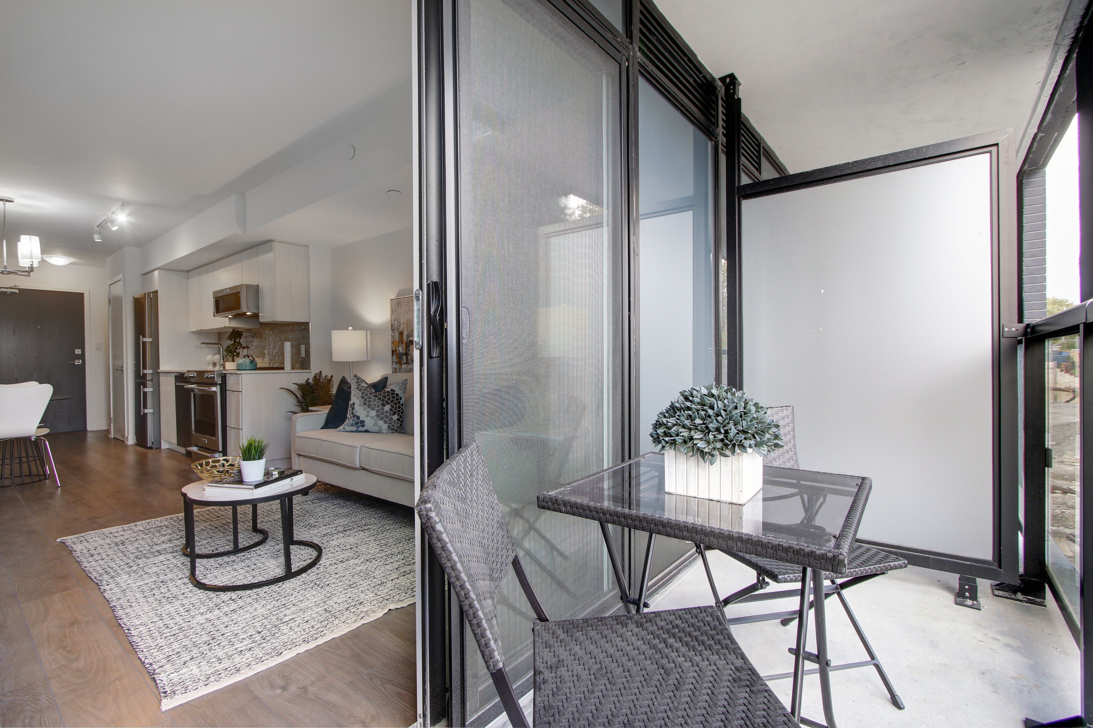 • Balcony offers nice views overlooking Topham Park neighbourhood.