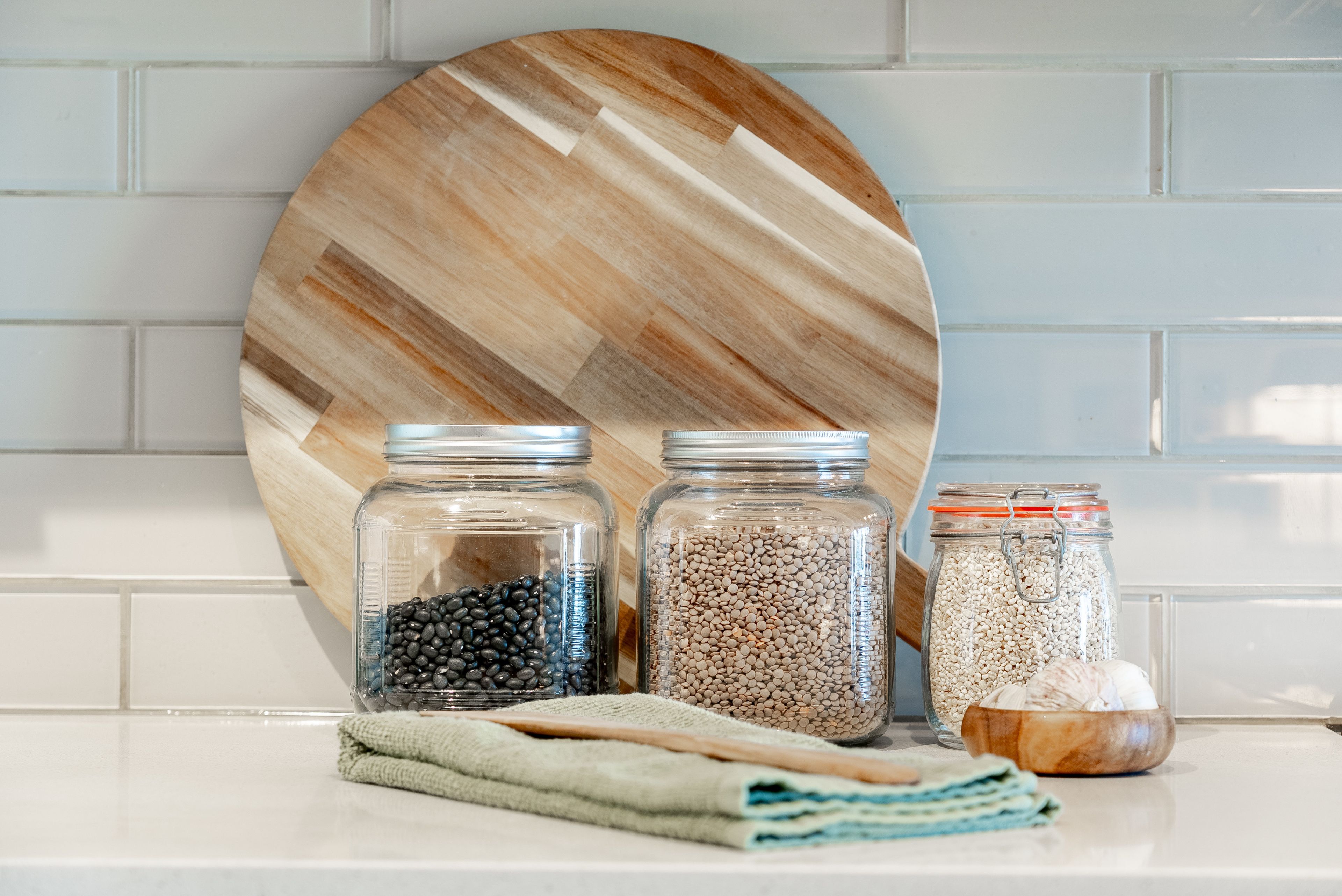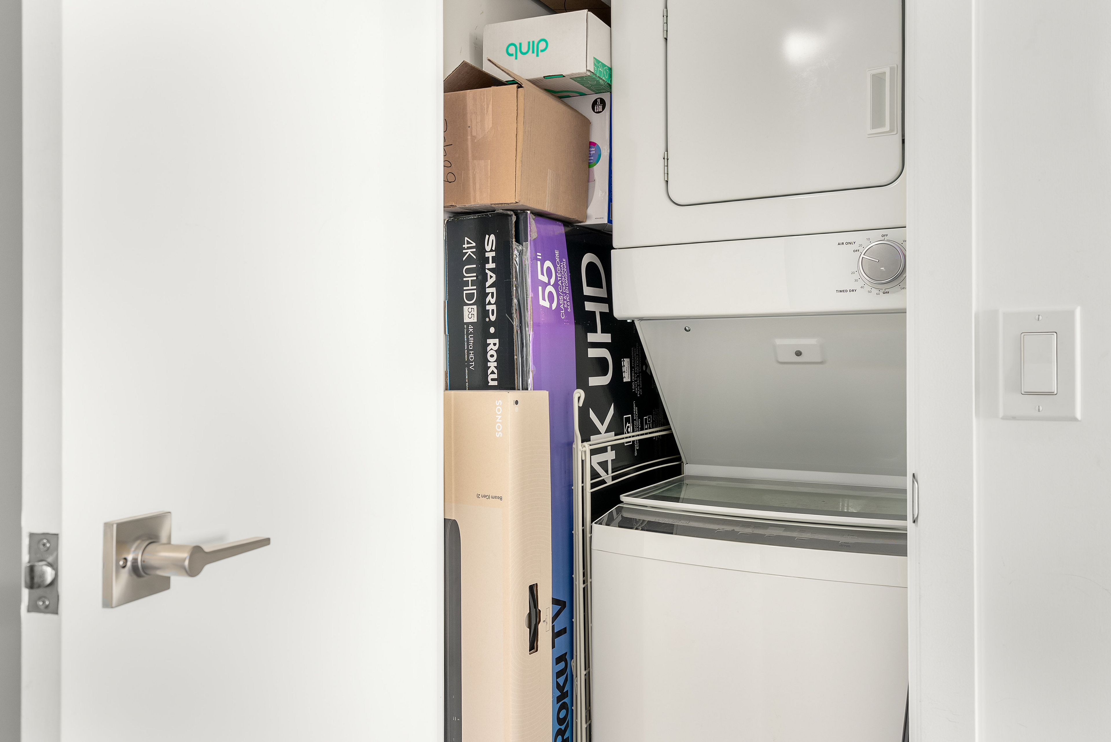 • Modern kitchen with quartz countertops and stainless steel appliances.