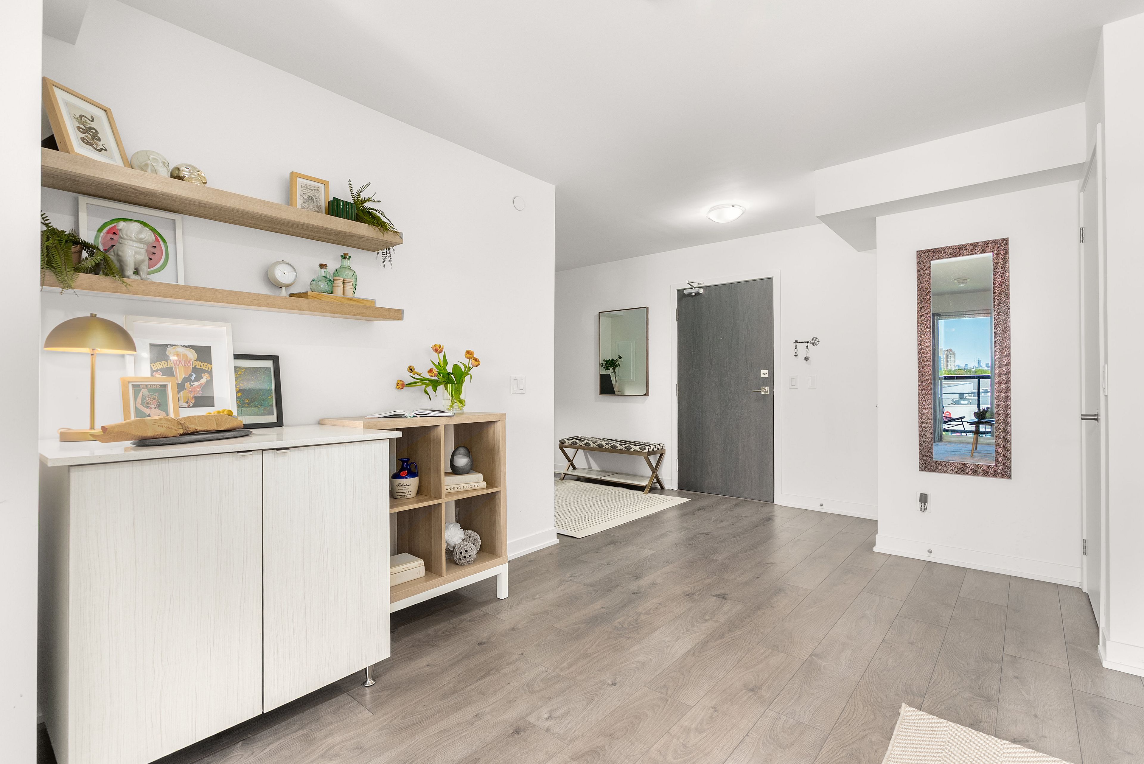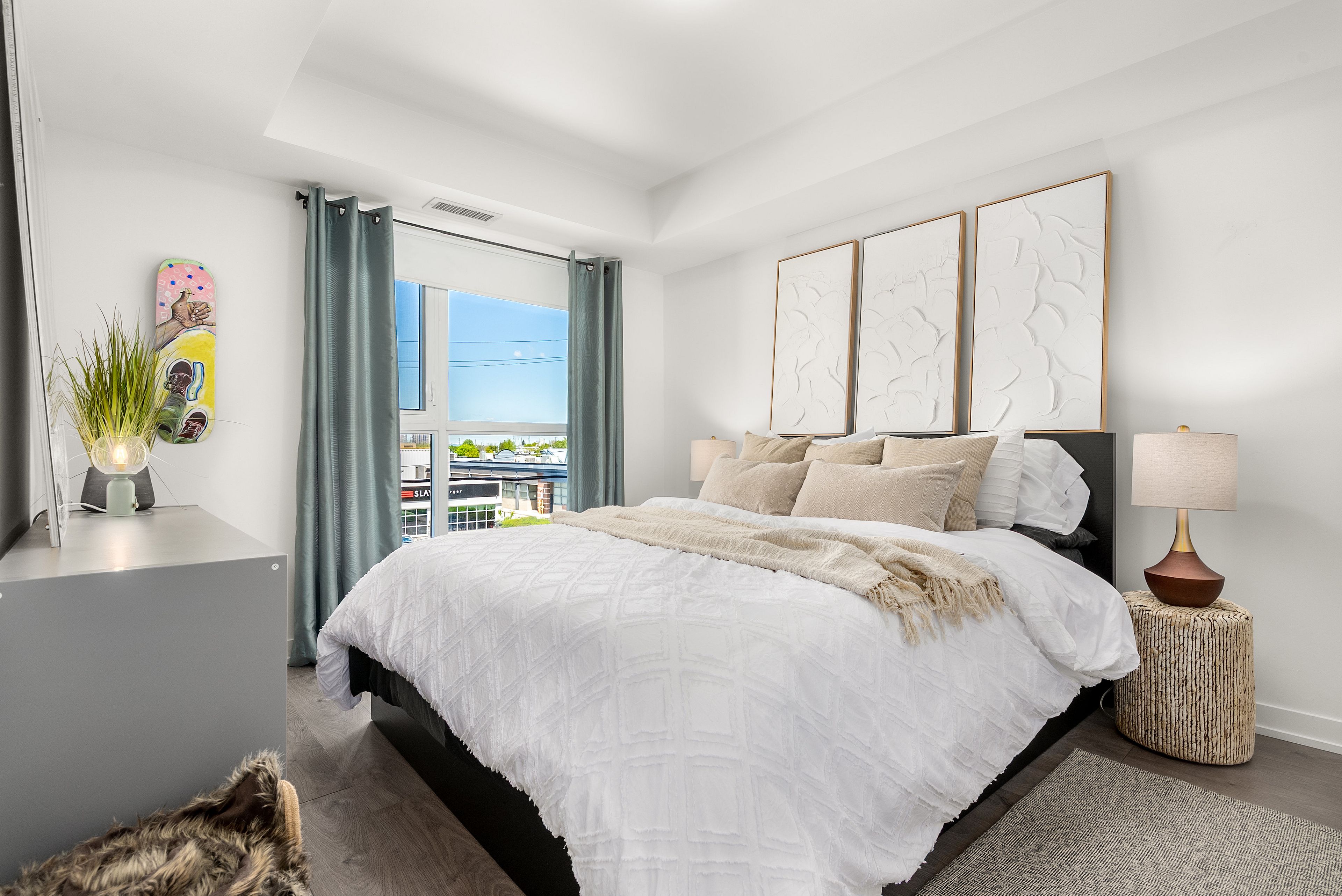 **included in rent: hydro, water, heat, high speed internet, cable tv,** bright and spacious 1-bedroom + den, 2-bath condo at the lanes in east york's connected topham neighbourhood. The open-concept layout features expansive west-facing windows with sunset views, a modern kitchen with quartz countertops and stainless steel appliances, and a spacious primary bedroom with large closet and 4-piece ensuite. The den offers flexible space for a home office, creative studio, or guest area. Well-designed for comfortable everyday living with great natural light and a functional layout that makes the space feel larger than expected. Residents enjoy concierge service, the strike club lounge, rooftop sky deck with city views, and the skyview fitness centre. Steps to local cafés, restaurants, shops, and parks including topham, warner, and edge park. Easy access to transit, the dvp, and a quick commute downtown. Available now. Reach out to book your showing and see it in person. Parking available for rent: $200/month