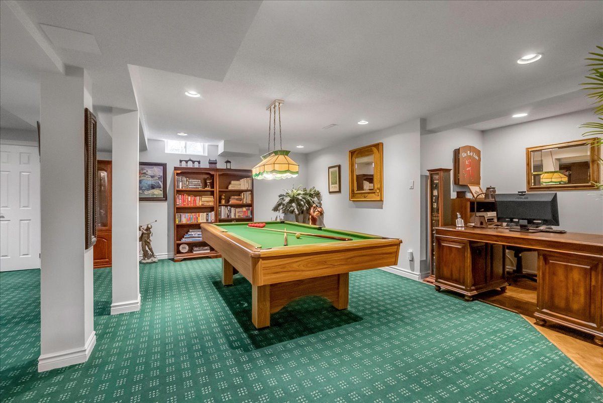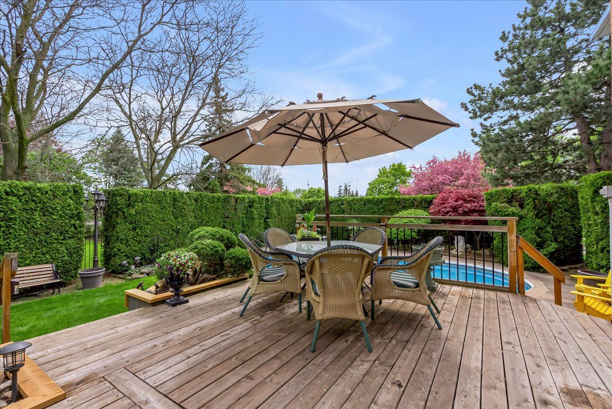 Welcome to the distinguished fairway hills community in glen abbey. This meticulously maintained, original owner home boasts over 5400 sq. Ft. Of total living space. Enjoy incredible privacy in your backyard backing onto green space with a saltwater pool. 4+1 bedroom & 4. 5 bathroom residence that showcases many elegant features including grand foyer, vaulted ceiling, skylight, extensive use of rich dark hardwood flooring, crown moulding & 3 gas fireplaces. Experience the traditional centre hall plan! Formal living room with gas fireplace & formal dining room, perfect for hosting. Updated kitchen w/ soft-close dark wood cabinetry, granite counters, s/s appls. Incl gas stove, built-in oven & microwave, bosch d/w, glass-front cabinets, pots & pan drawers, wine rack, pantry, pot lights & generous eat-in area. The family room impresses w/ vaulted ceiling, hardwood floors, wainscoting, & gas fireplace. The main floor incl. Office & laundry. Wood spiral staircase leads to the 2nd level. The primary bedroom features double-door entry, large windows, & spacious walk-in closet. 5-pc ensuite w/ marble tile, glass shower, jacuzzi tub & double sinks. 3 additional bedrooms, incl. One with private ensuite. Finished lower level w/ open-concept recreation room features gas fireplace & custom bar, games area with murphy style bed. Separate room, perfect as gym/bedroom, includes servery with sink & fridge. 3-pc bathroom & ample storage. The backyard is a true oasis with heated saltwater pool, deck with pergola, & garden shed/cabana. South west exposure! Irrigation system services both front & rear gardens w/ dripper feeders. Mechanicals incl furnace (2011), a/c (trane 2024), roof shingles (2020) & windows (2016). As a resident of fairway hills, you'll enjoy access to 11 acres of private, manicured grounds & community events including golf tournaments, picnics, & festive holiday gatherings. This community boasts top rated schools, walking trails, glen abbey golf course and much more!