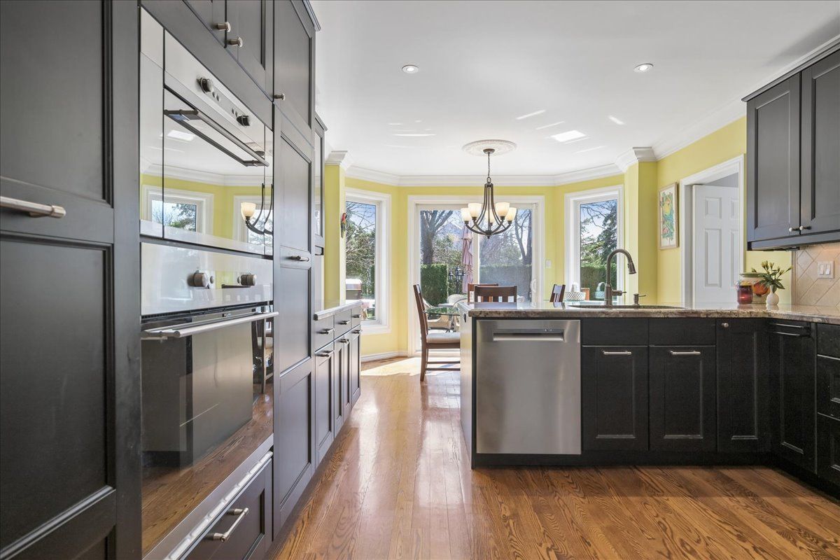 • Updated kitchen with granite counters and modern stainless steel appliances.