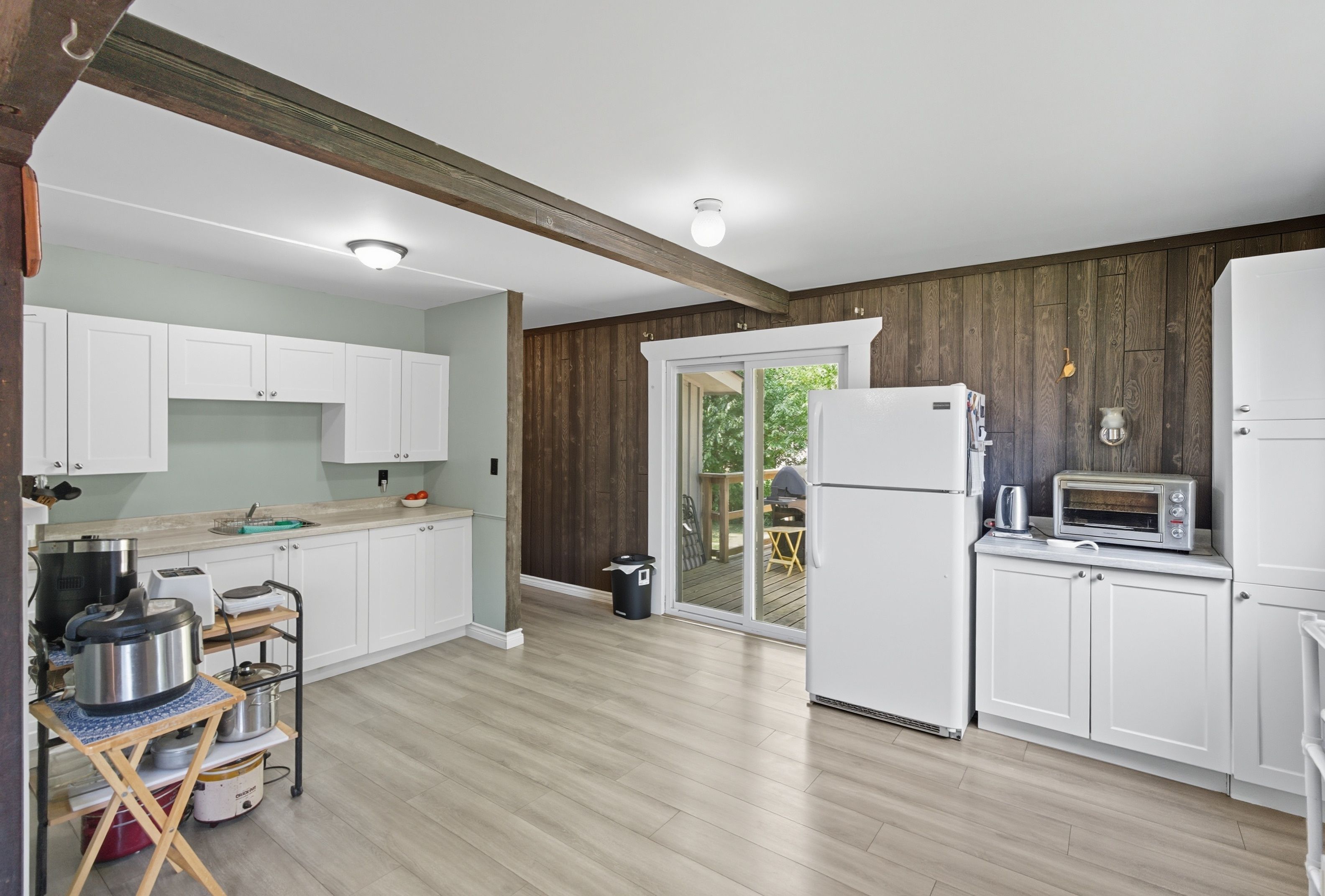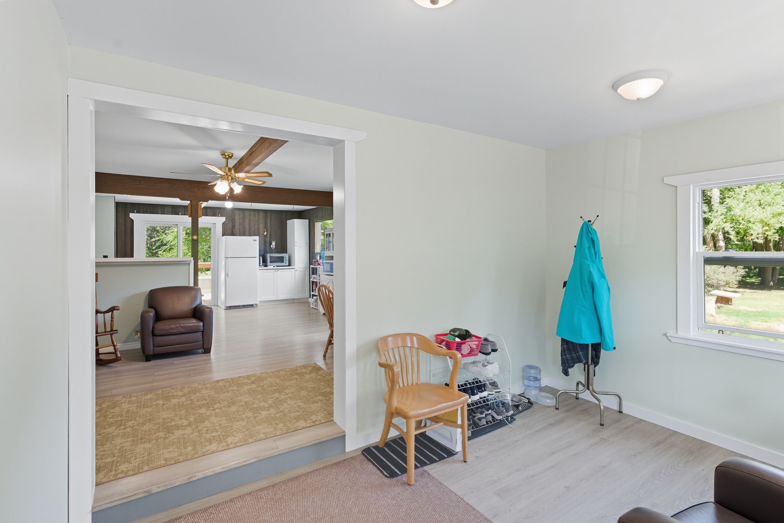 Welcome to this exceptional 3-acre opportunity zoned a2, offering not 1 but 2 detached homes plus a sprawling barn perfect for the hobbyist, entrepreneur, or aspiring homesteader. The 2 houses & the barn have 200 amp service each. House #1 is a beautifully renovated 3-bedroom, 1595 sq ft home featuring a sun-filled living room, a spacious kitchen with white cabinetry and brand-new stainless steel appliances, and a main-floor primary bedroom for easy living. Enjoy the convenience of main-floor laundry, a generous rec room, and a walkout to a deck ideal for summer gatherings. House #2 boasts 1485 sq ft on the main level, with a large living room, a versatile bonus room (perfect as a den or office), and a massive kitchen/dining area that opens to its own deck. The main-floor primary bedroom, 3-piece bath, and laundry make it fully functional, while the upper level over 900 sq ft offers a roughed-in kitchen and bath, awaiting your vision to restore its former 2-bedroom in-law suite. The expansive barn (~2200 sq ft) is a dream for hobbyists or small-scale farmers, complete with a loft ready for your creative touch. Behind it, wide open acreage invites you to plant an organic garden, cultivate trees and flowers, or simply enjoy the rural lifestyle. All this in a convenient location that blends tranquility with accessibility. This is more than a property its a canvas for your next chapter.