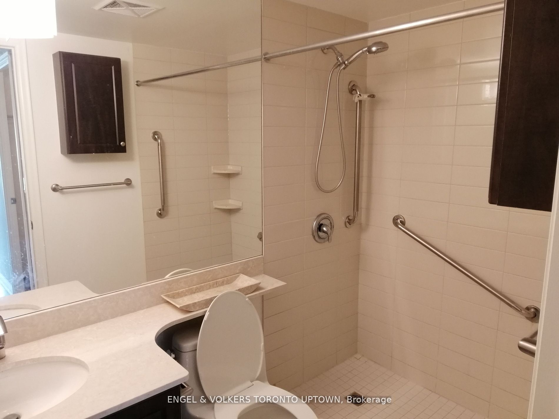 Attention downsizers & small families! Welcome to royal york grand condos in prestigious humber heights. Feel instantly at home in this highly sought-after split-bedroom, spacious suite - perfect for privacy and functional living. The oversized primary bedroom offers a large walk-in closet and accessible, barrier-free 3-piece ensuite shower. The second bedroom features a large window and a closet with custom built-ins, with convenient access to a separate 4-piece bathroom. Enjoy open concept living with a walkout to your private balcony and take in beautiful sunset views over the trees. The spacious kitchen features granite countertops, stainless steel appliances, ample cabinet space, and a breakfast bar ideal for casual dining or entertaining. The versatile den is perfect for a work-from-home setup or additional flex space. This very well-managed building offers excellent amenities including a fitness centre, party/meeting room, visitor parking, and secure entry for added peace of mind. Steps to ttc, parks, biking trails, and schools, including one of toronto's top-ranking elementary schools-making it an ideal choice for downsizers, working professionals, or small families. The upcoming eglinton crosstown lrt (not yet built) will be just steps from your front door, adding incredible future value and connectivity. Includes 1 parking space and 1 spacious locker. Minutes to all amenities, major highways, and pearson airport-this is the perfect blend of city convenience and natural surroundings.