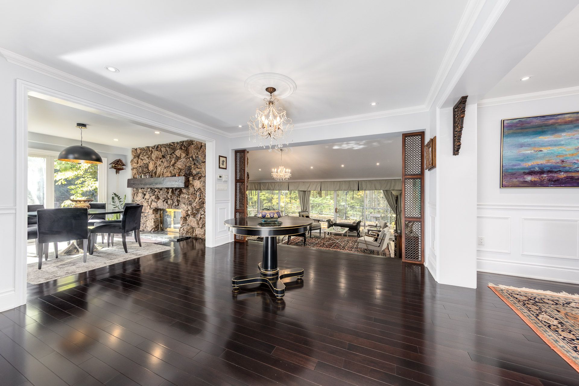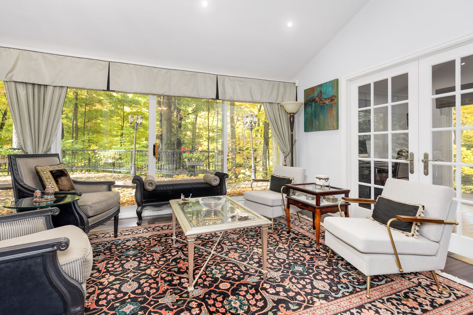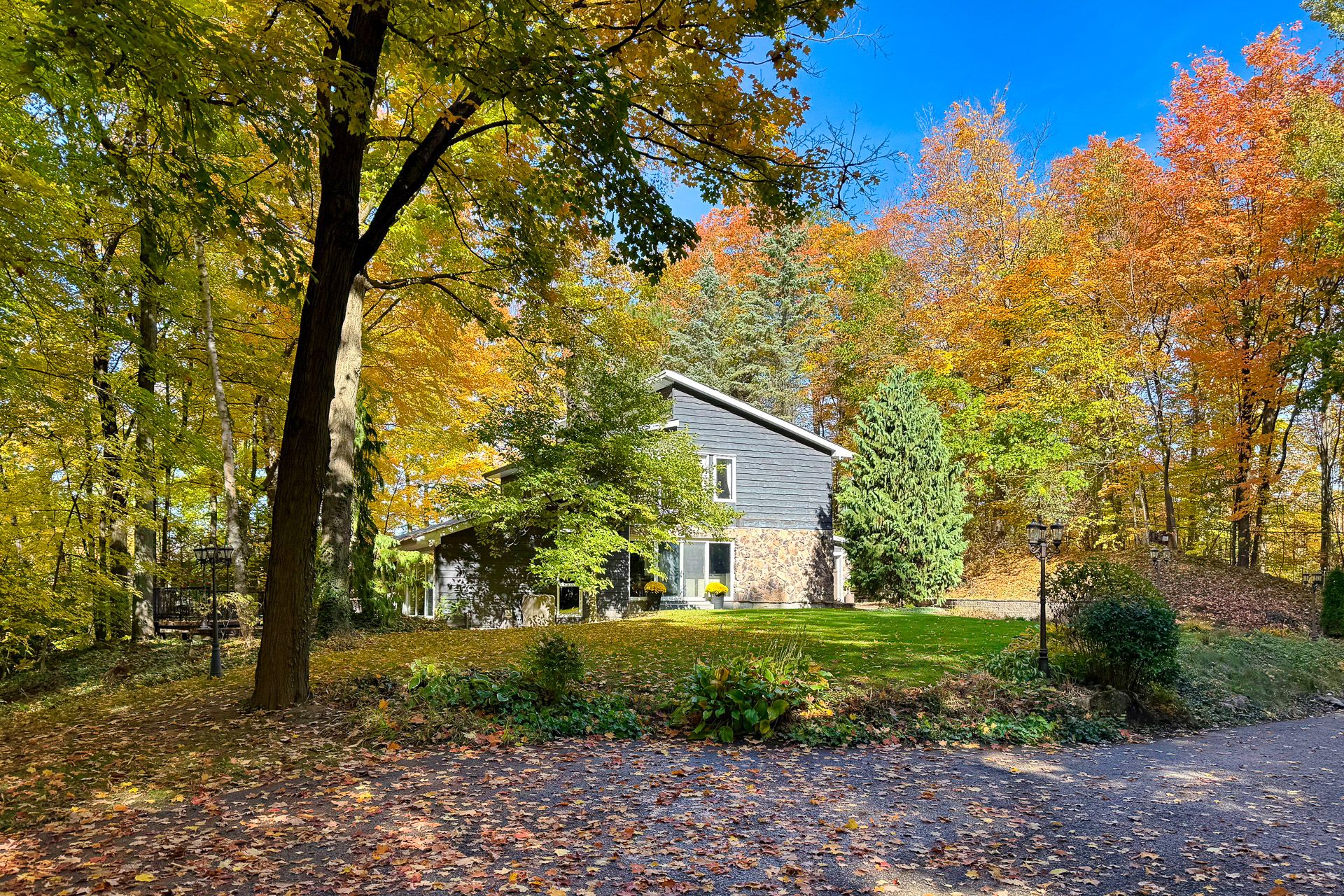 Luxury living on 4. 19 private acres - a modern retreat in nature. Nestled within 4. 19 acres of lush, forested land, this custom luxury residence offers the perfect blend of privacy, elegance, and modern comfort-just minutes from the city. Beautifully renovated throughout, the home retains its original character with a heritage stone fireplace and striking volcanic stone wall in the living area. Expansive windows frame stunning ravine and forest views, letting you enjoy the beauty of every season from your living room. The chef-inspired kitchen features a large island and premium miele appliances, including a built-in coffee machine, steamer, and warming drawer. A spacious office overlooking the backyard provides an inspiring workspace surrounded by nature. Upstairs, the primary suite is a private haven with a eletric fireplace, sitting area, and spa-like ensuite with heated floors. Additional bedrooms offer custom built-ins, large closets, and panoramic windows. The finished basement adds flexible recreational space, while modern updates include a 200 amp electrical panel, new mechanical systems, and a comprehensive security system. An automatic gated entrance and private driveway lead you through serene woodlands to this exceptional home-where luxury meets tranquility in a truly rare natural setting. **3d floor plan link attached