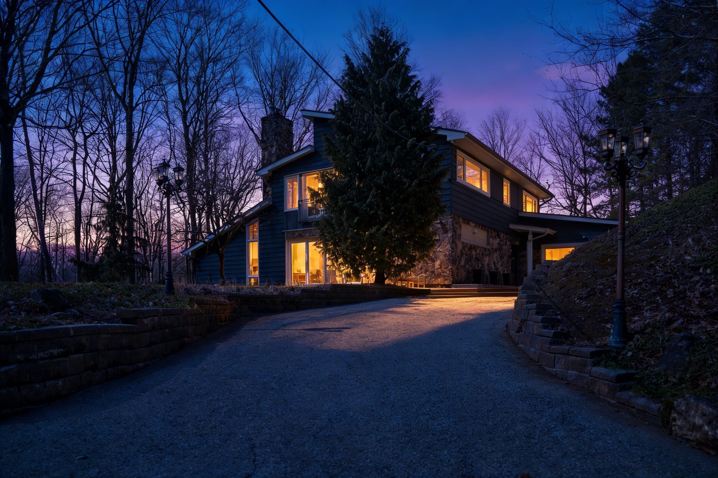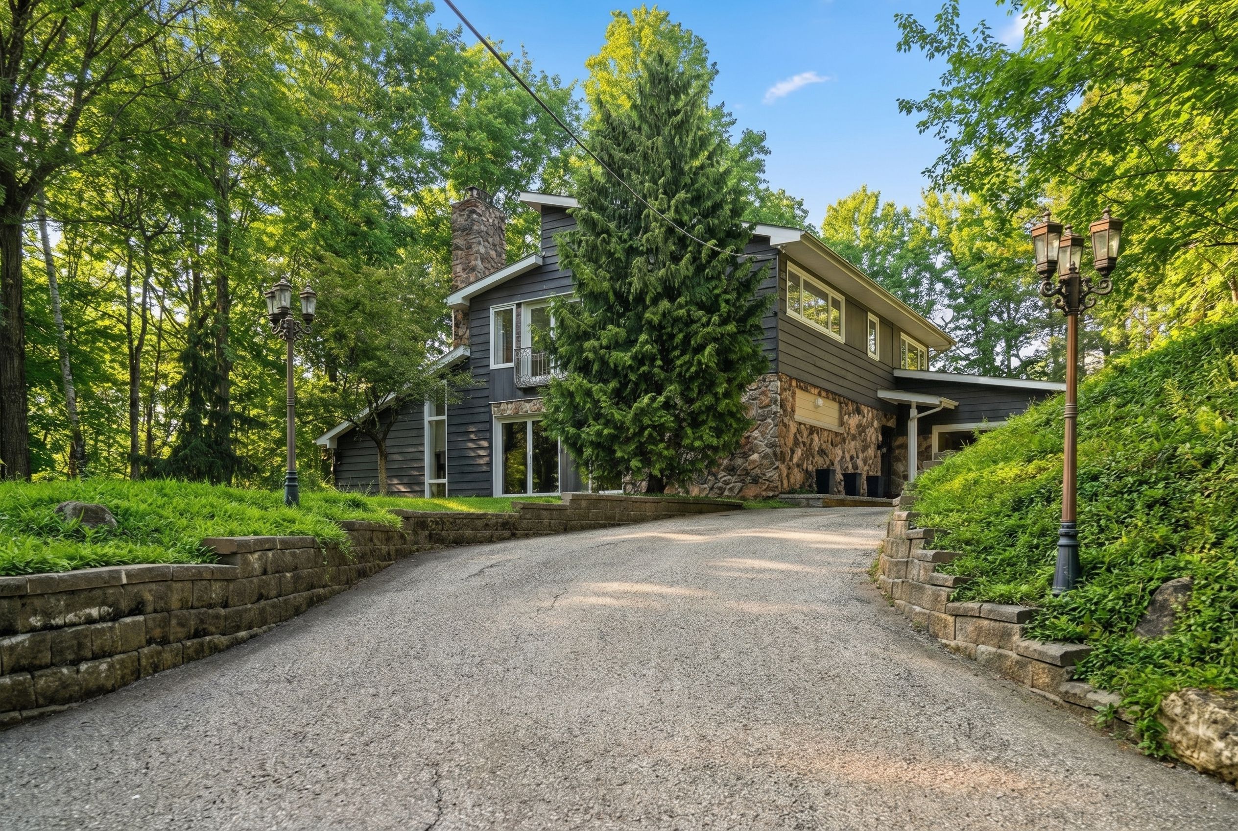 • Secluded home on 4.12 acres, offering a peaceful forested setting.