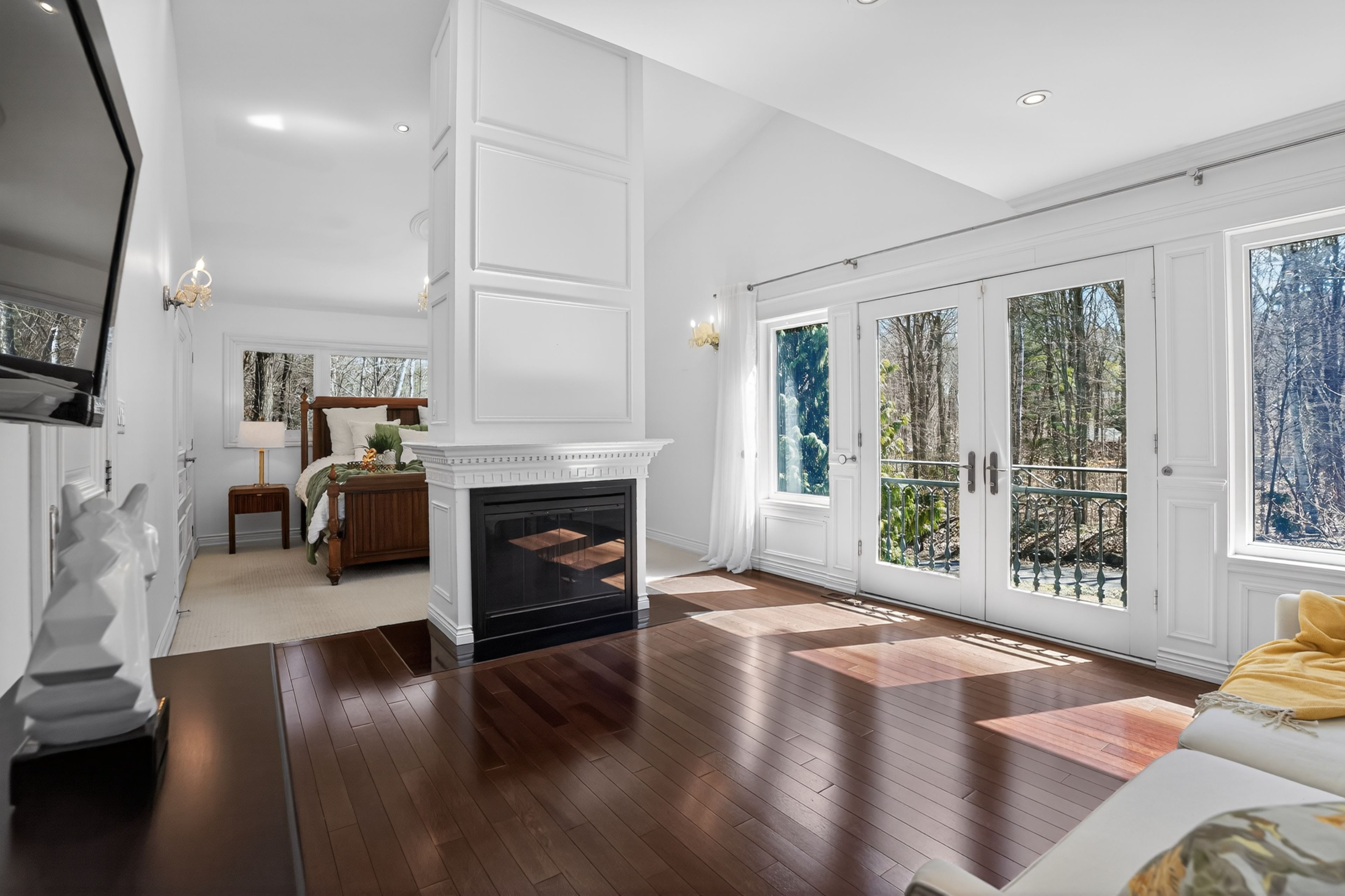 • Private primary suite features an electric fireplace and spa-inspired ensuite.