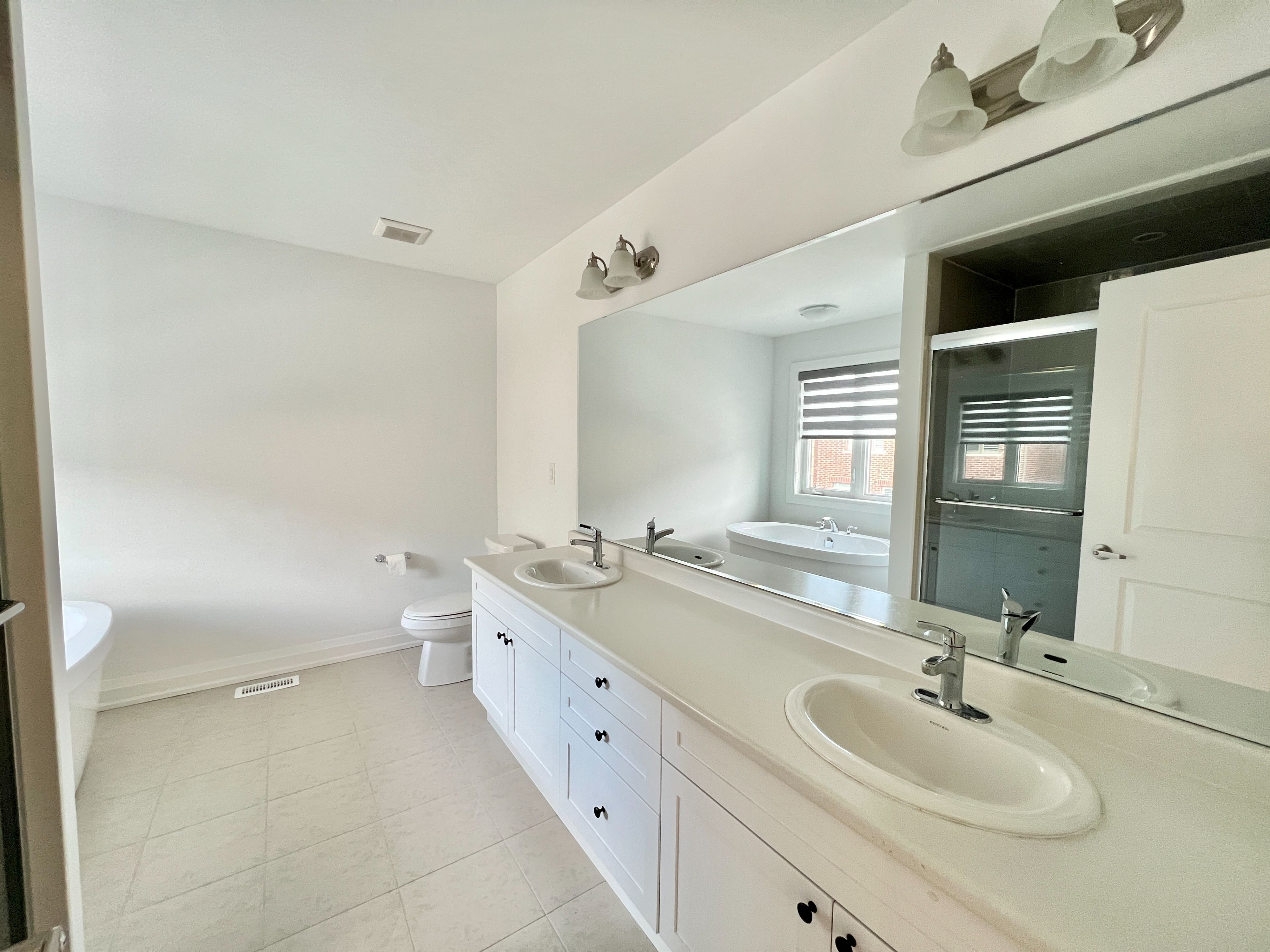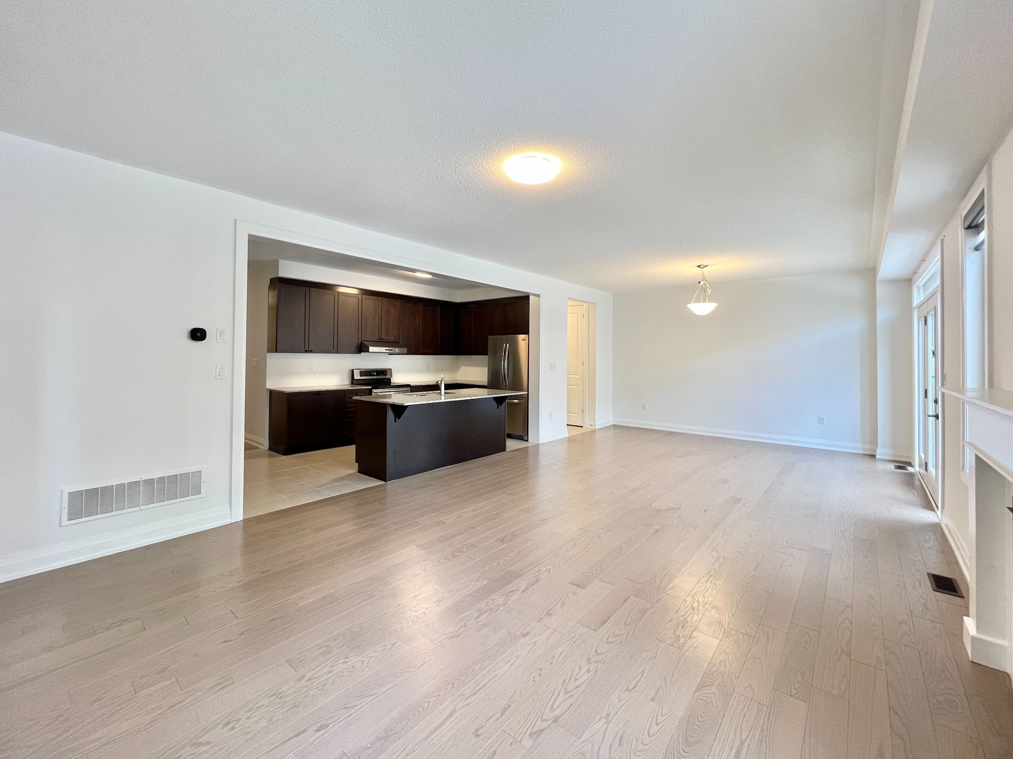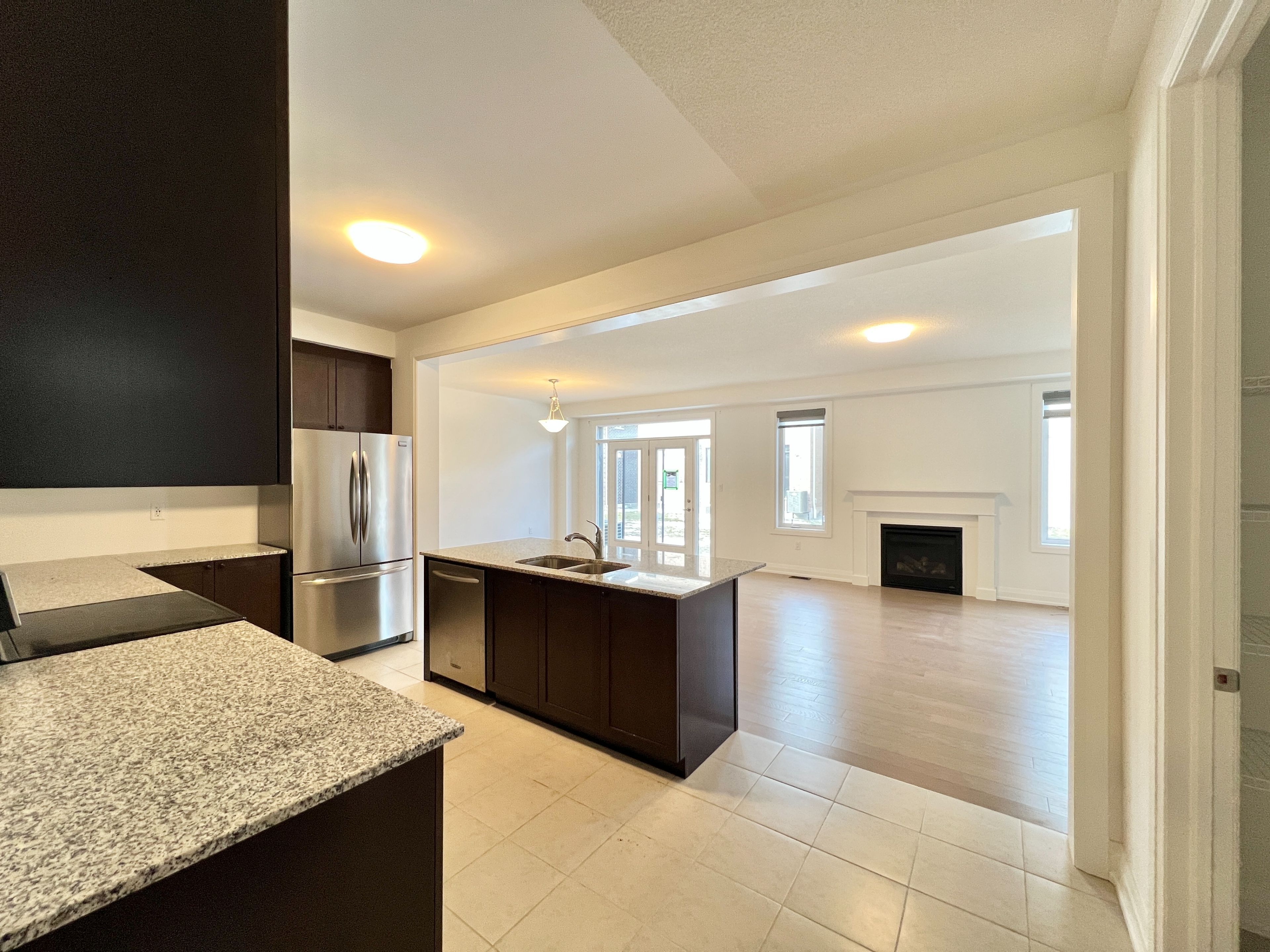 Immaculate one year new modern detached home built by mattamy homes with a double-car garage. Featuring large windows throughout for abundant natural light and a bright, welcoming atmosphere. The main floor offers 9-foot ceilings and an open-concept layout ideal for entertaining. The gourmet kitchen includes stainless steel appliances with oversized centre island, granite countertops, and ample cabinetry, flowing seamlessly into the spacious living and dining areas. Upstairs features a luxurious primary bedroom with a spa like 5-piece ensuite and large walk-in closet, a second bedroom with its own 4-piece ensuite and walk-in closet, plus two additional generously sized bedrooms. Second-floor laundry adds everyday convenience. Direct access to garage, total 4 cars parking! Ideally located with easy access to highway 407 and major routes, and just minutes from shopping, grocery stores, parks, trails, schools, and other essential amenities. Don't miss the opportunity to live in this exceptional property!