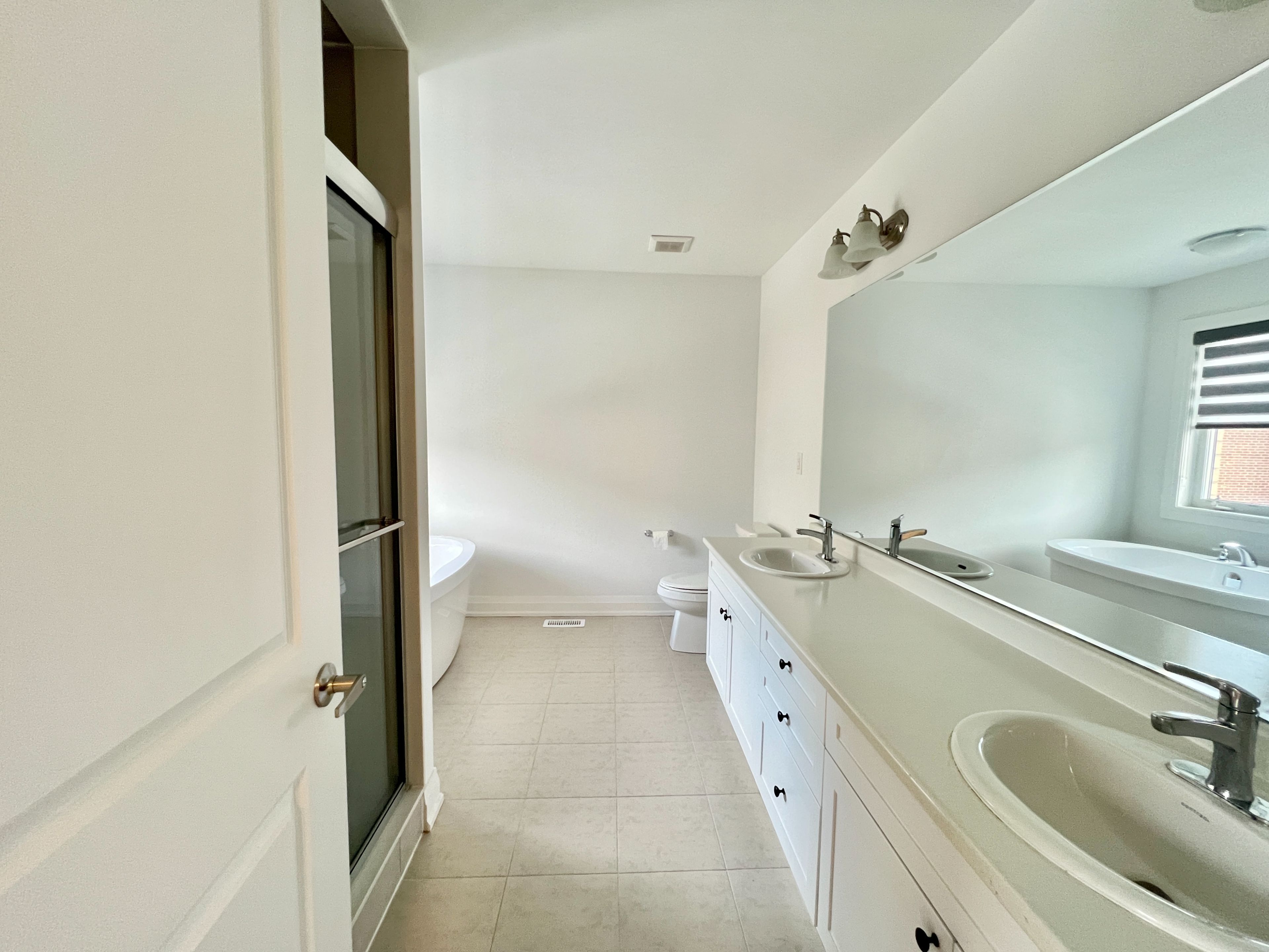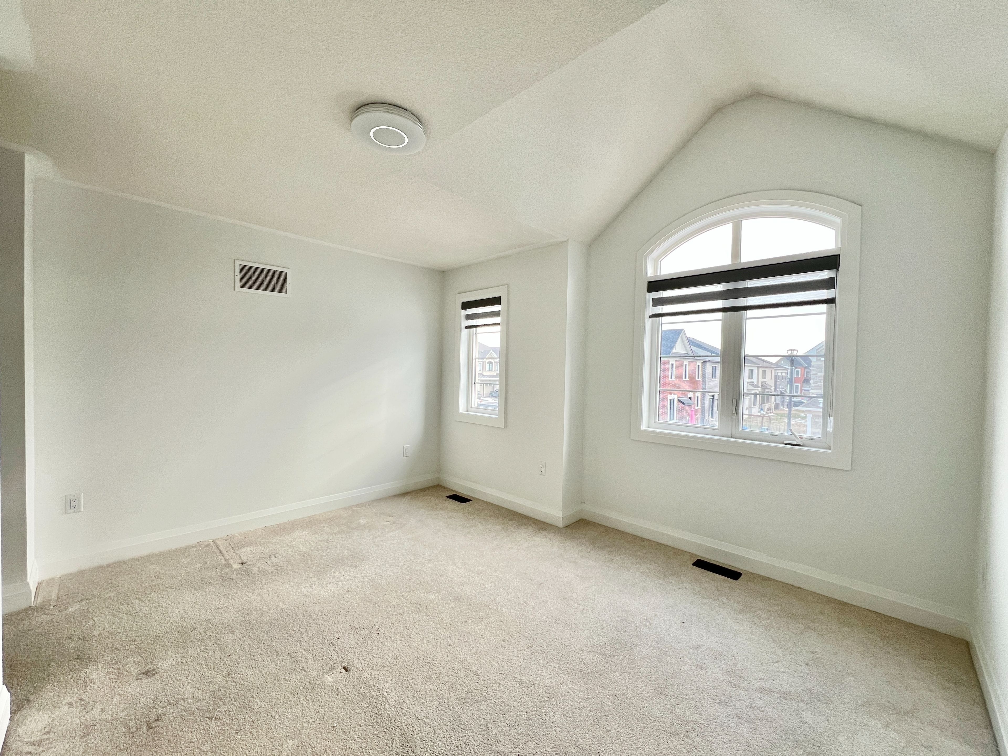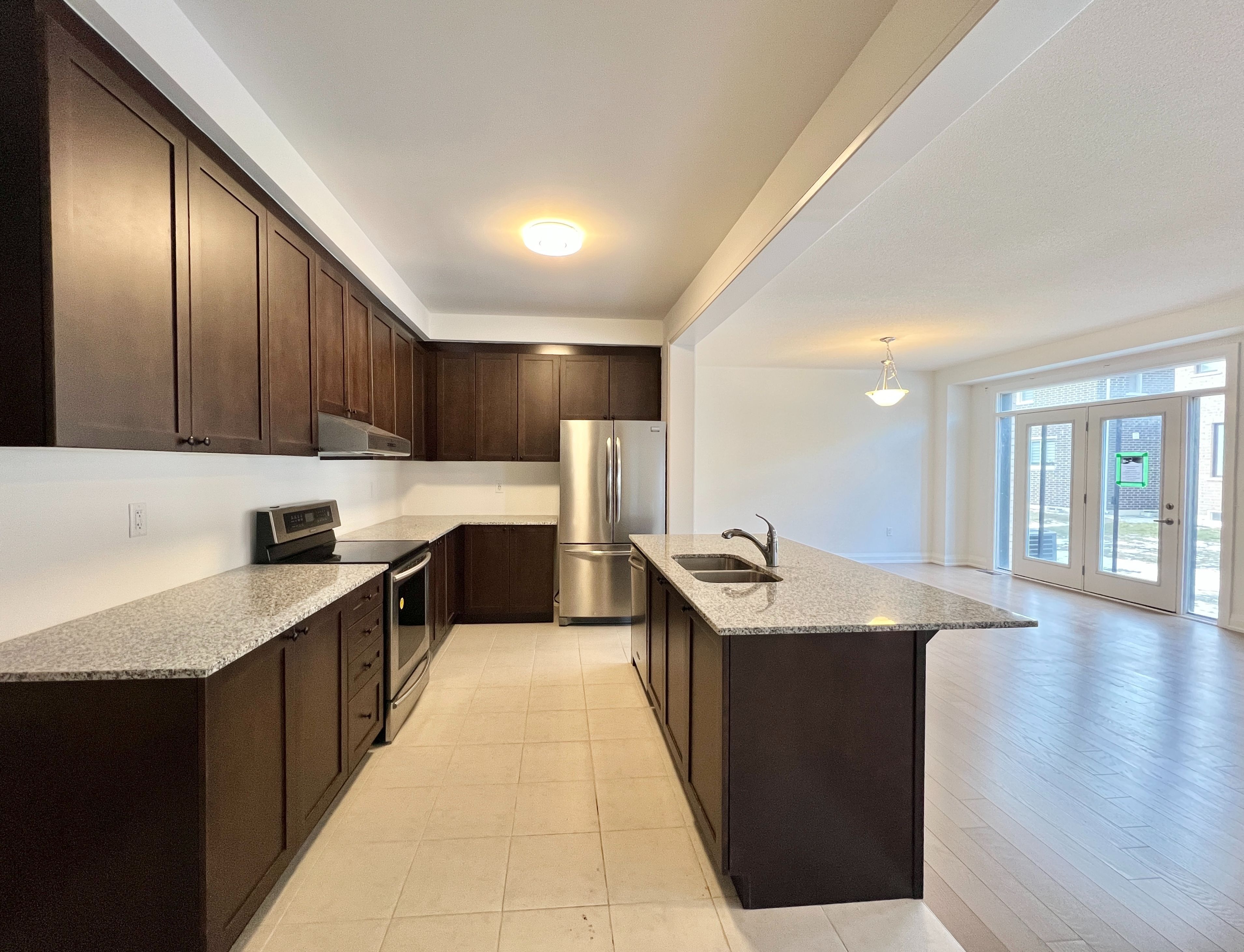 Immaculate one year new modern detached home built by mattamy homes with a double-car garage. Featuring large windows throughout for abundant natural light and a bright, welcoming atmosphere. The main floor offers 9-foot ceilings and an open-concept layout ideal for entertaining. The gourmet kitchen includes stainless steel appliances with oversized centre island, granite countertops, and ample cabinetry, flowing seamlessly into the spacious living and dining areas. Upstairs features a luxurious primary bedroom with a spa like 5-piece ensuite and large walk-in closet, a second bedroom with its own 4-piece ensuite and walk-in closet, plus two additional generously sized bedrooms. Second-floor laundry adds everyday convenience. Direct access to garage, total 4 cars parking! Ideally located with easy access to highway 407 and major routes, and just minutes from shopping, grocery stores, parks, trails, schools, and other essential amenities. Don't miss the opportunity to live in this exceptional property!