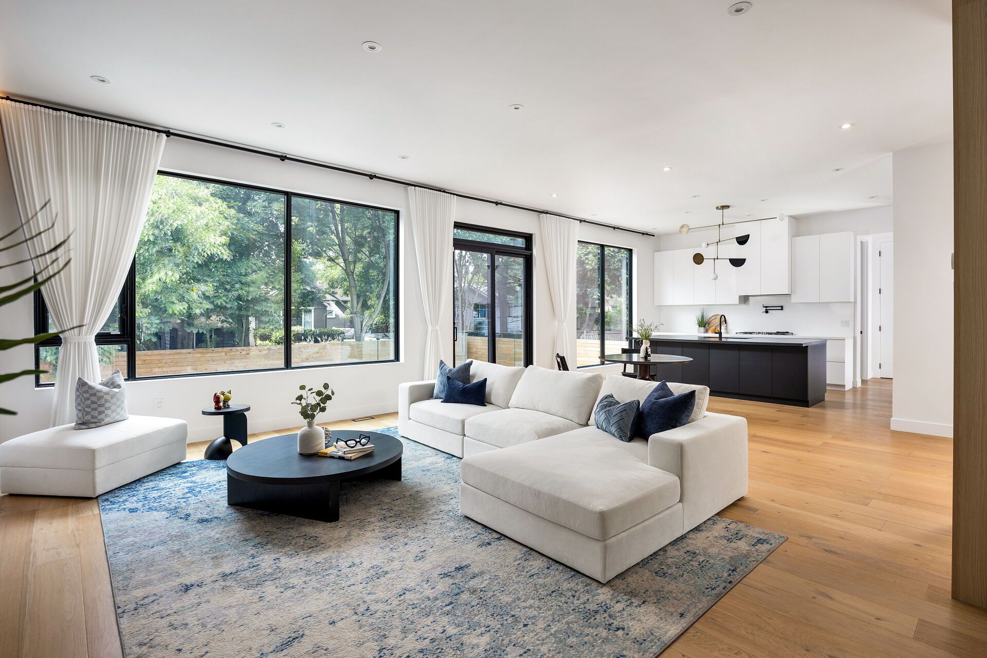 • Chef's kitchen equipped with Miele appliances and seamless family room flow.