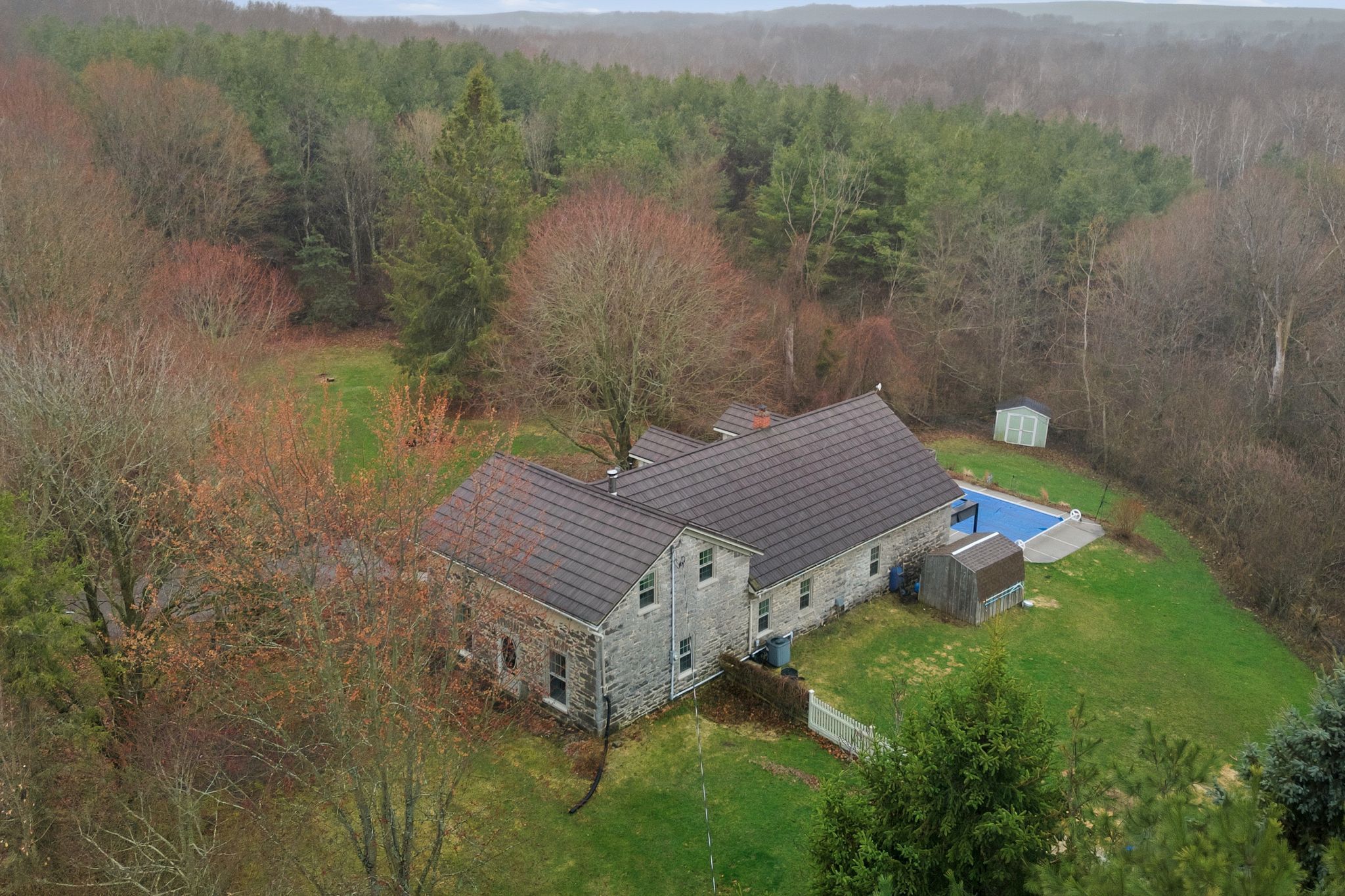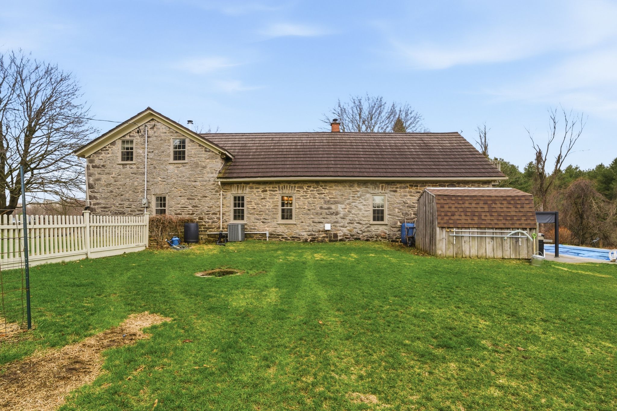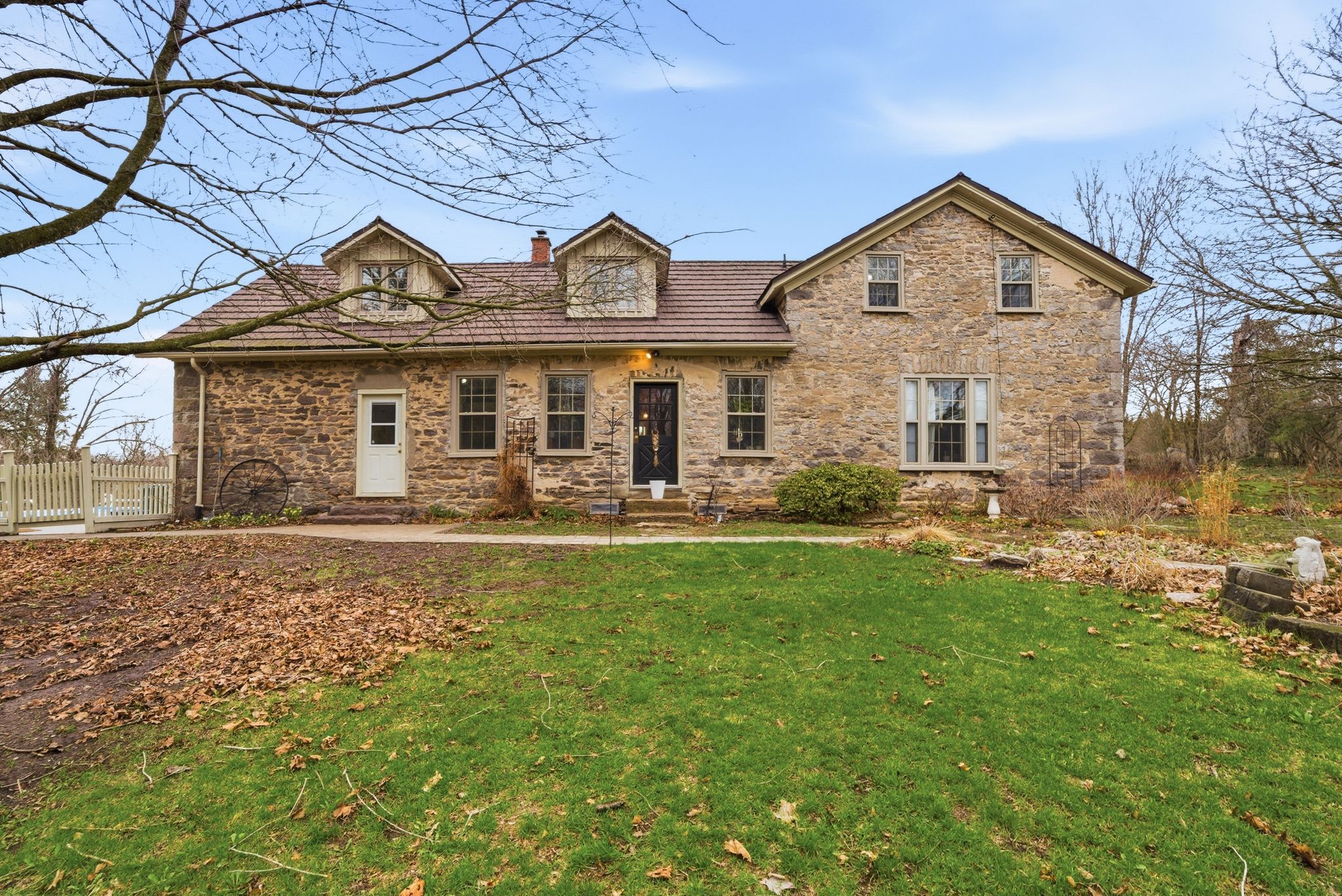 • Charming 1800's stone home on a spacious 3.63-acre wooded lot.