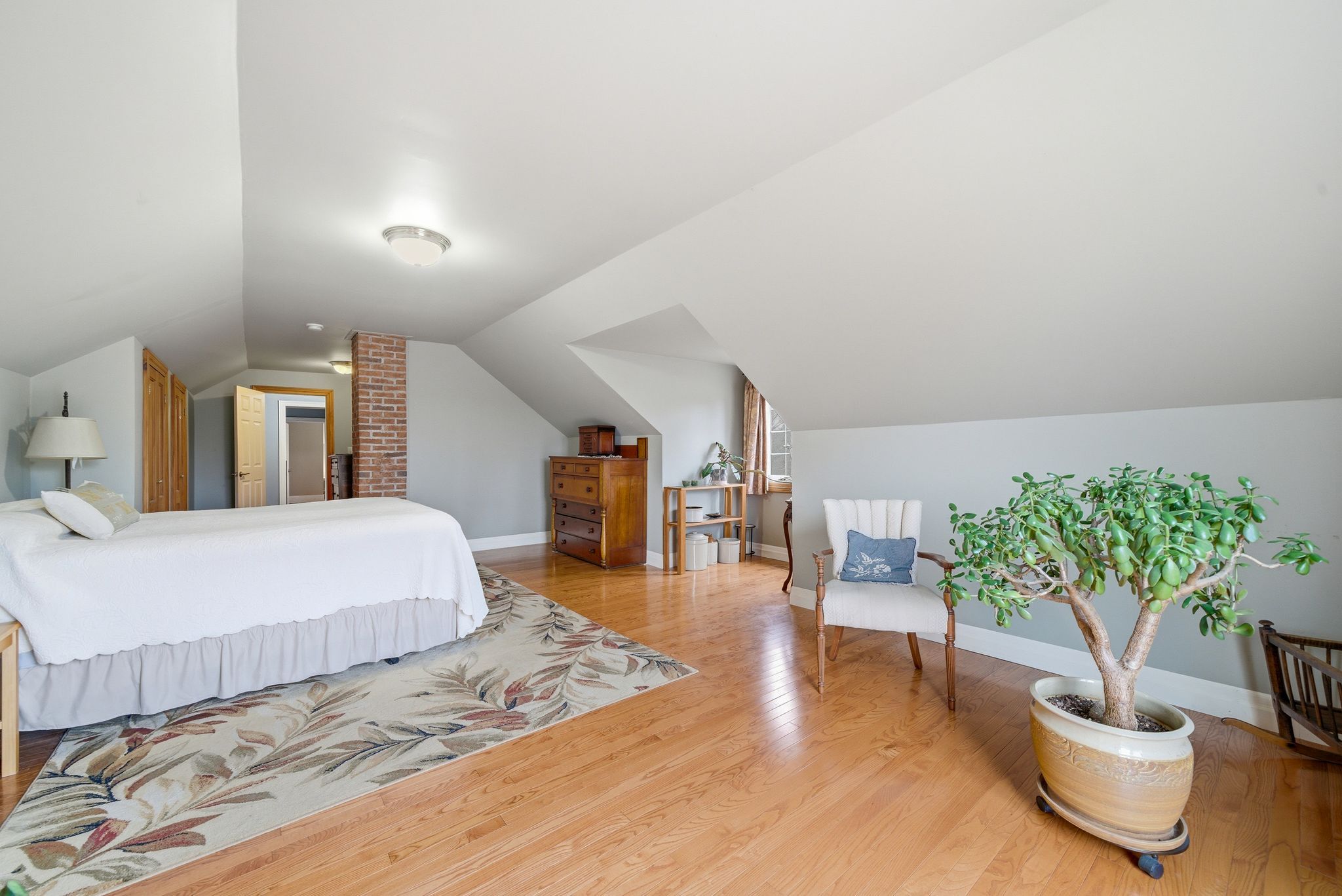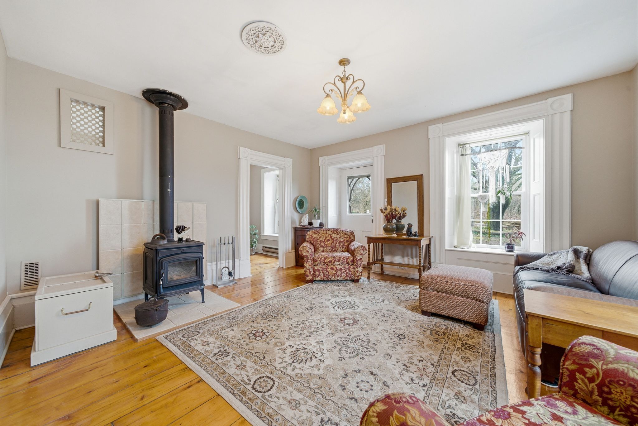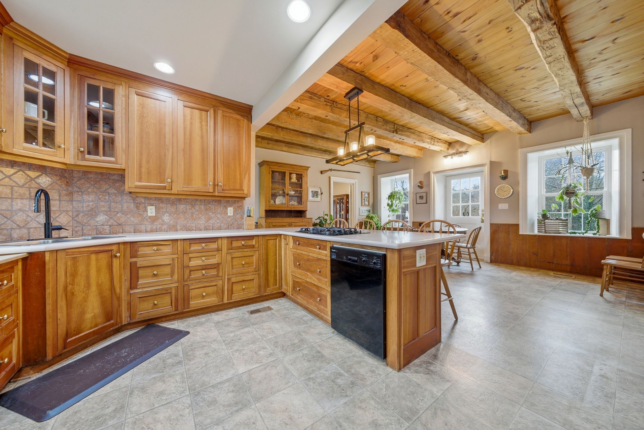 • Authentic features like wide pine floors and exposed beams throughout.