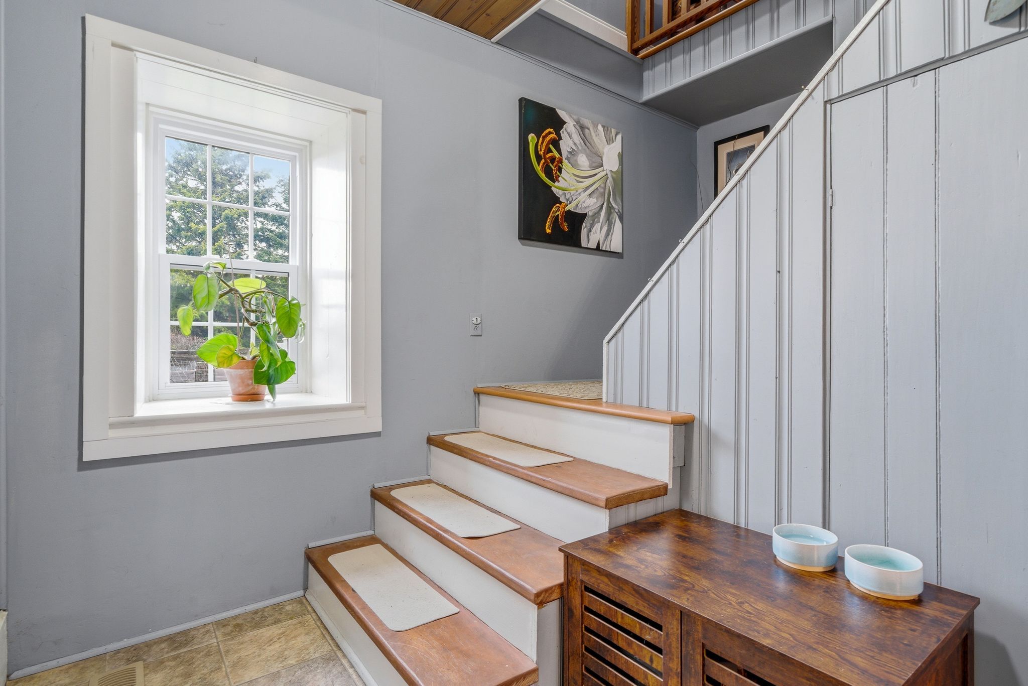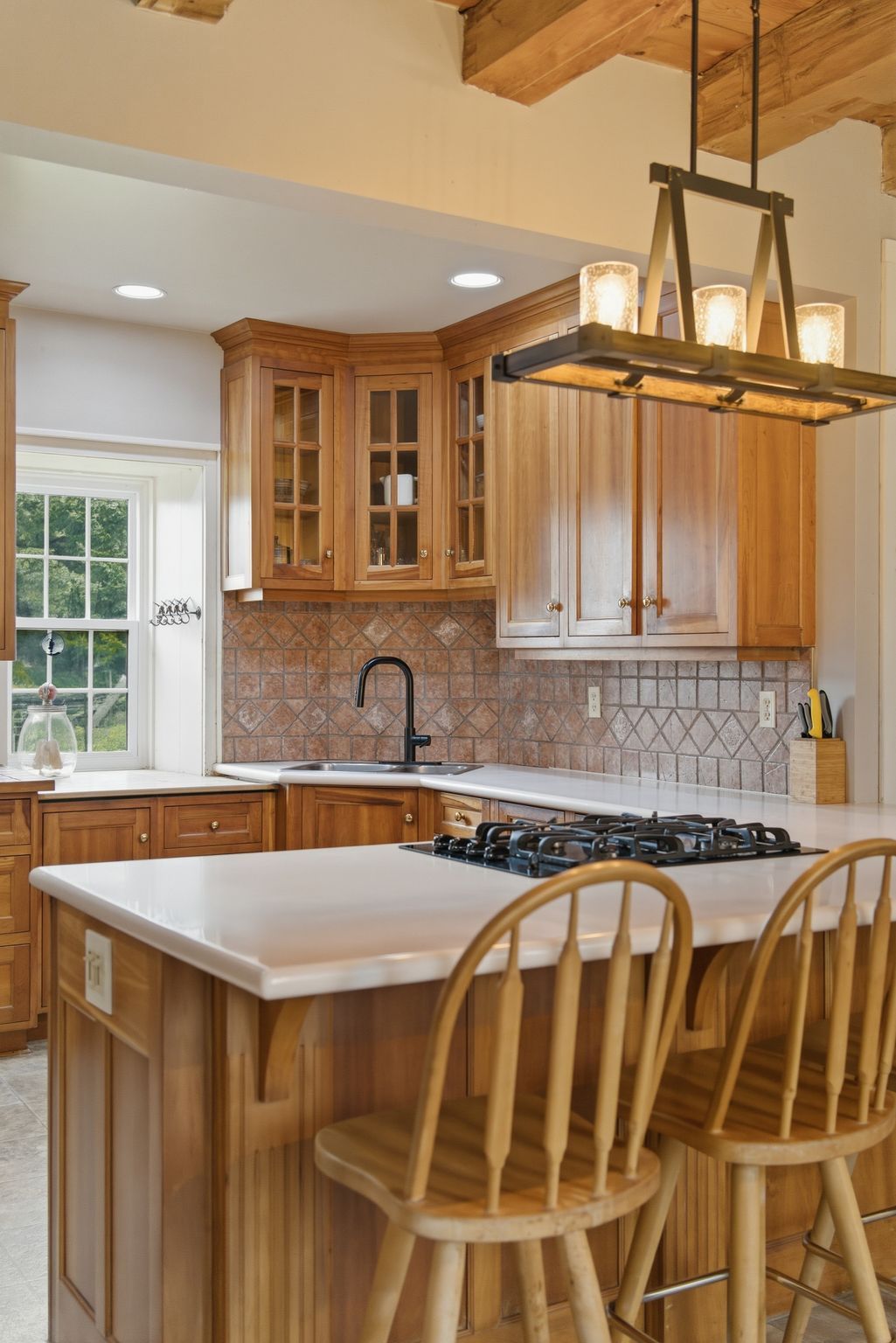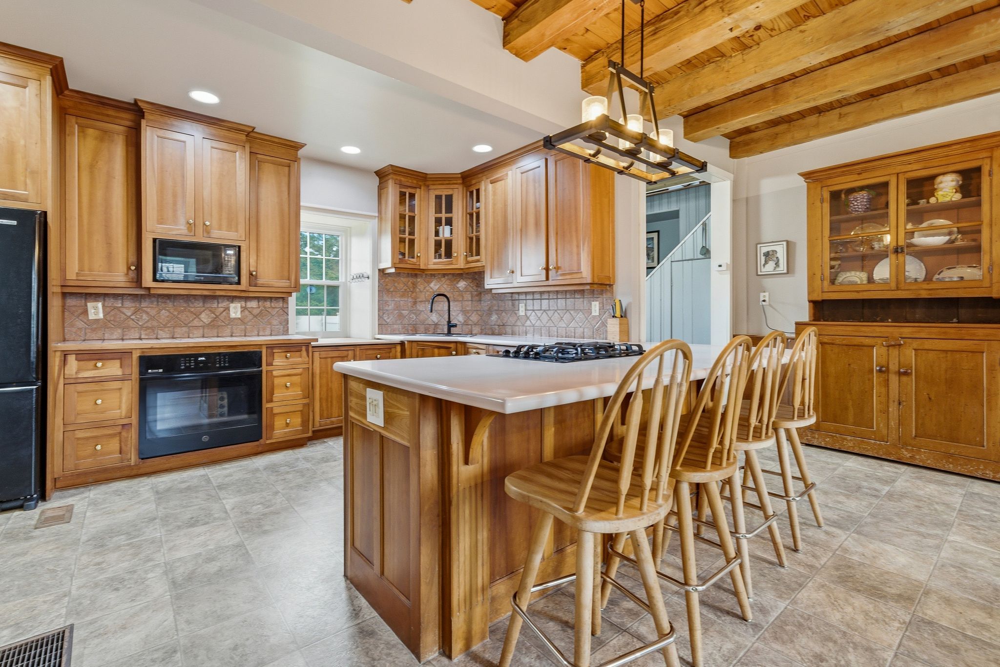 • Updated cherry wood kitchen with a large island for gatherings.