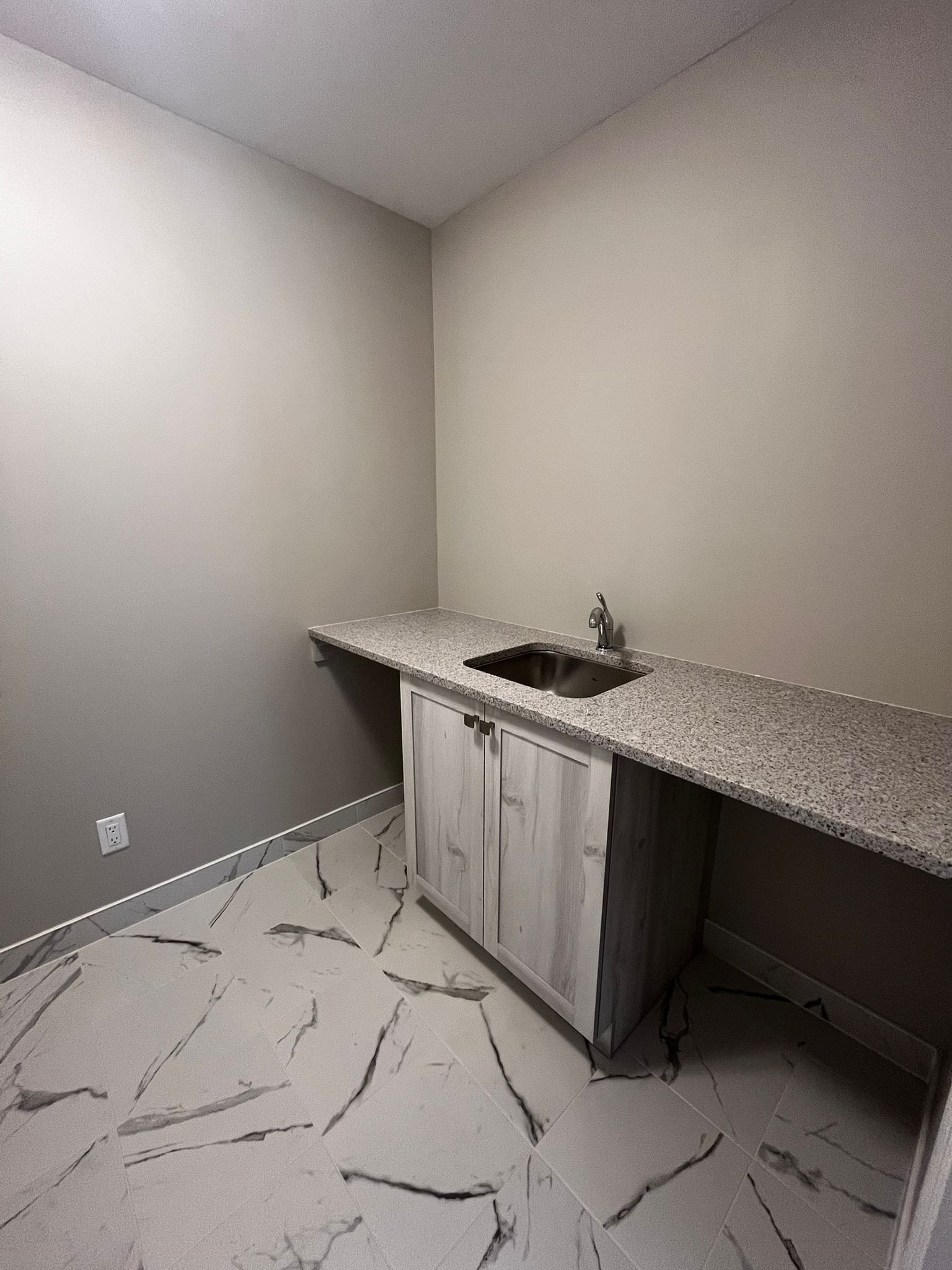 • Sleek kitchen with quartz counters and a walk-in pantry.