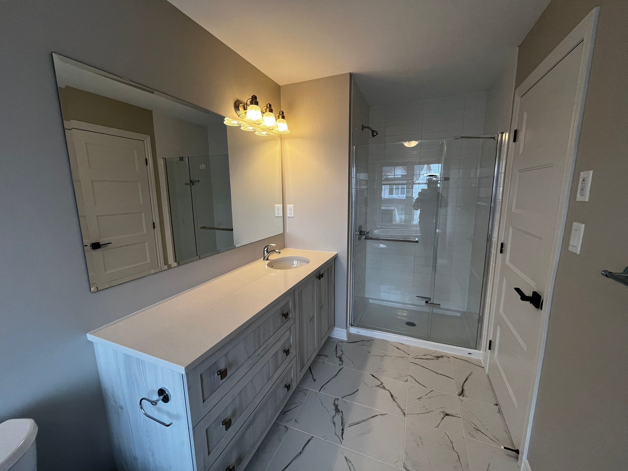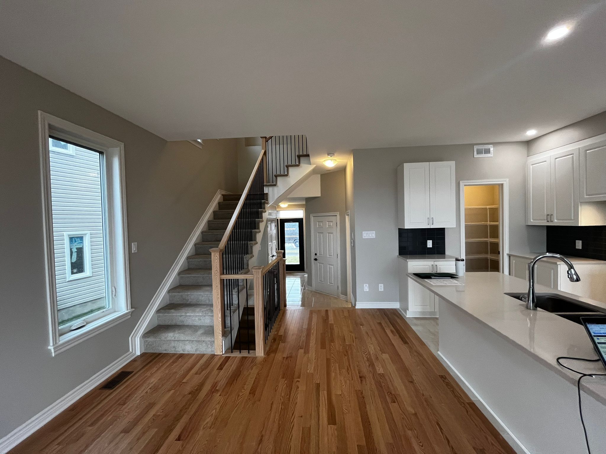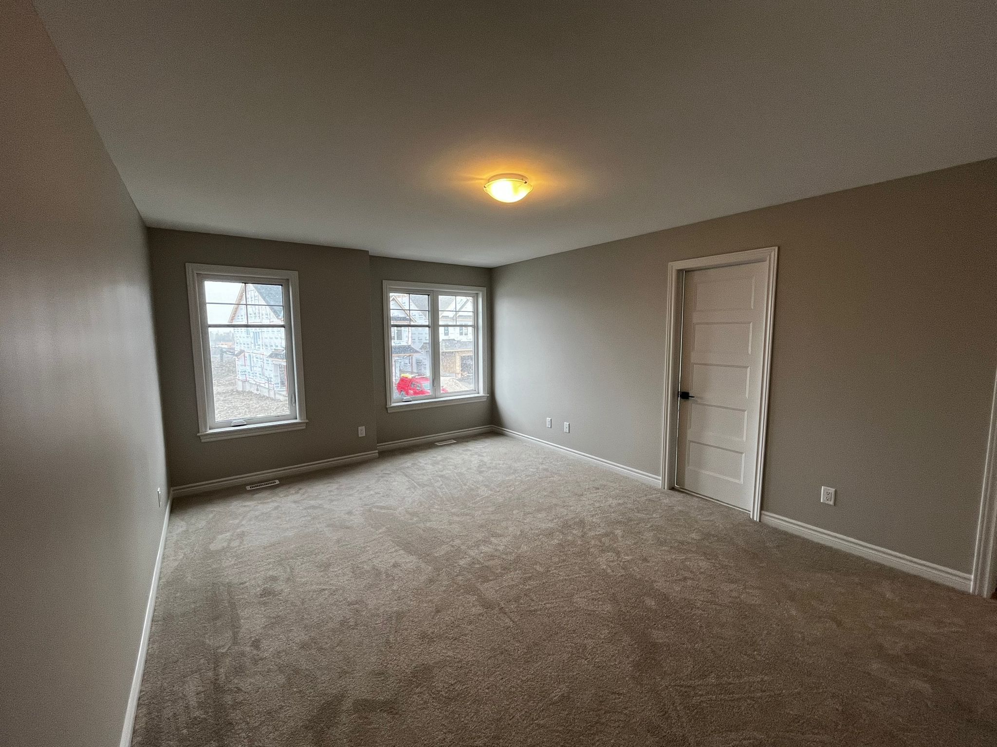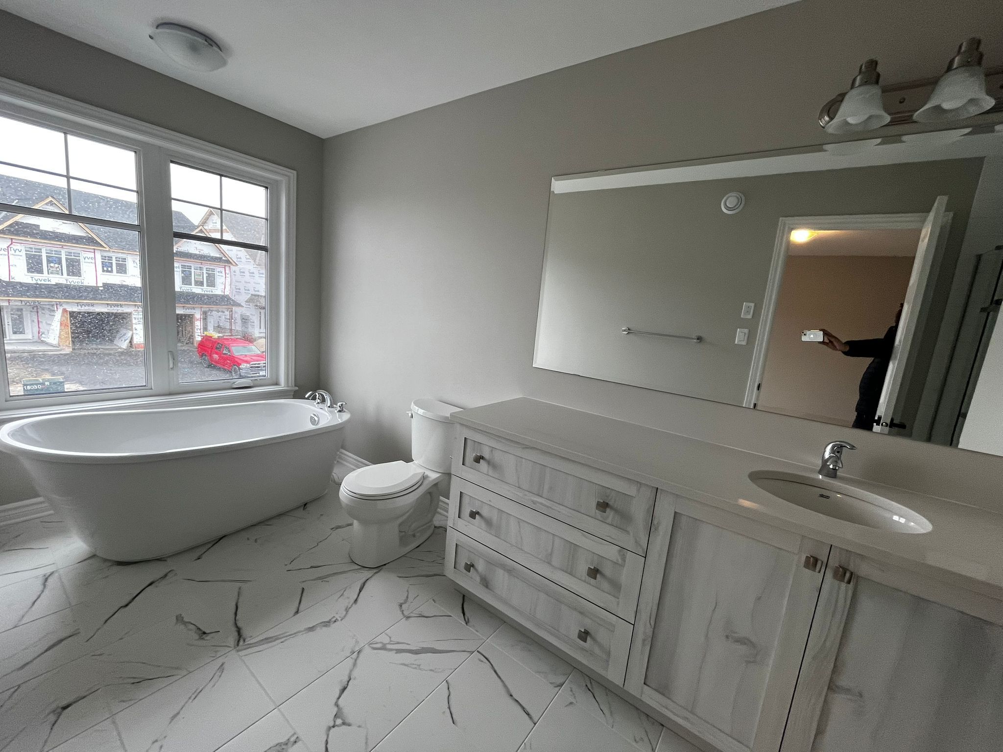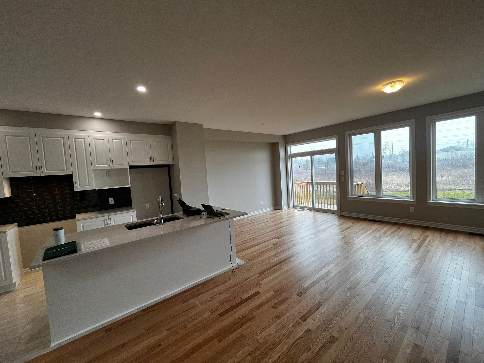 Welcome to this beautiful home in kingston's sought-after west village community - a beautifully finished, modern rental home with thoughtful upgrades throughout. The main floor features maple hardwood flooring, a sleek kitchen with quartz counters, white cabinetry, and a generous walk-in pantry, all centered around a cozy gas fireplace in the living area. Upstairs, the primary suite offers a luxurious 4-piece ensuite complete with a freestanding tub and a walk-in tile-and-glass shower. The finished walkout basement adds even more versatile living space and includes a rough-in for a future bathroom. Built for efficiency and comfort, this home is ideally located close to riocan, cataraqui centre, new schools, parks, and everyday conveniences.