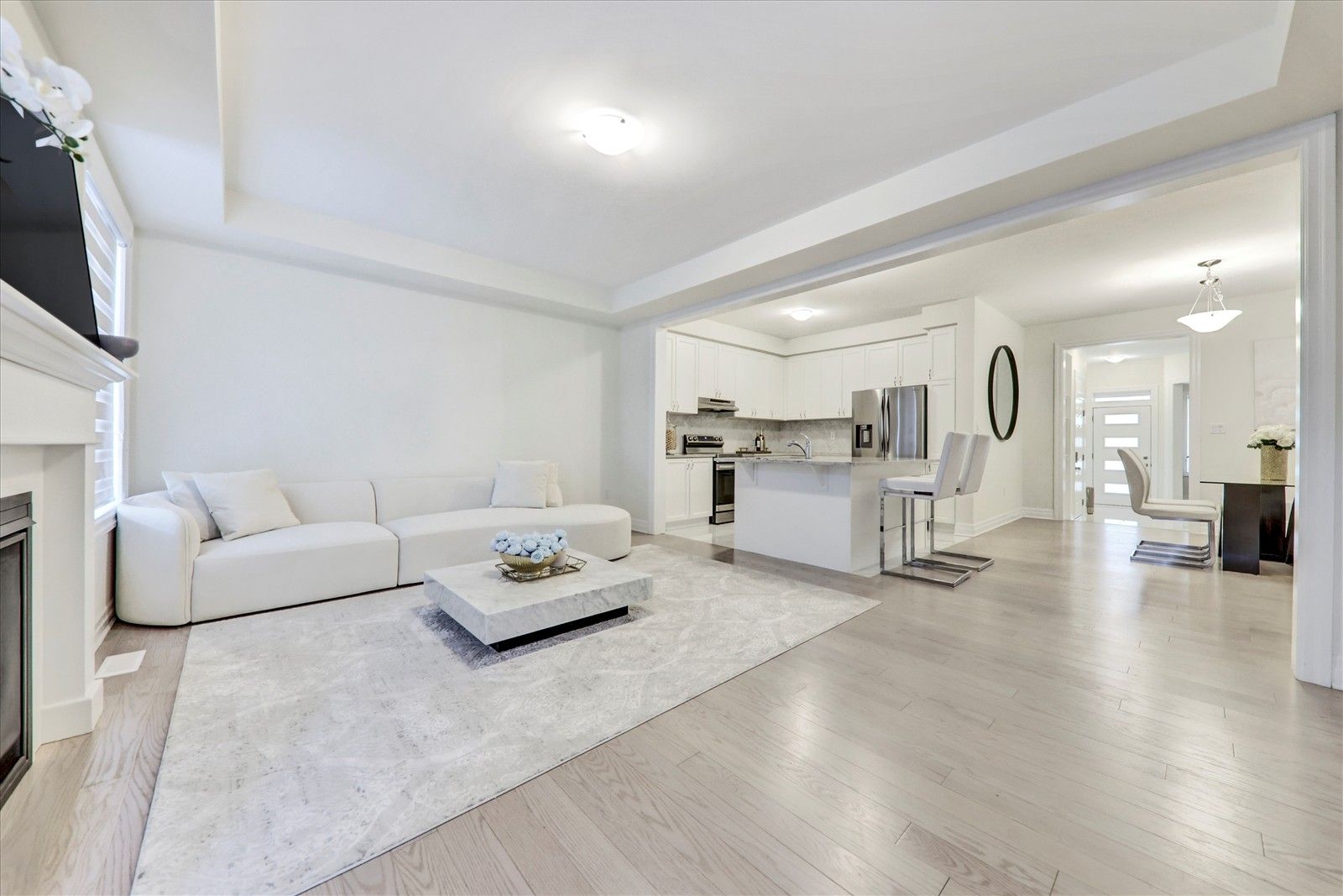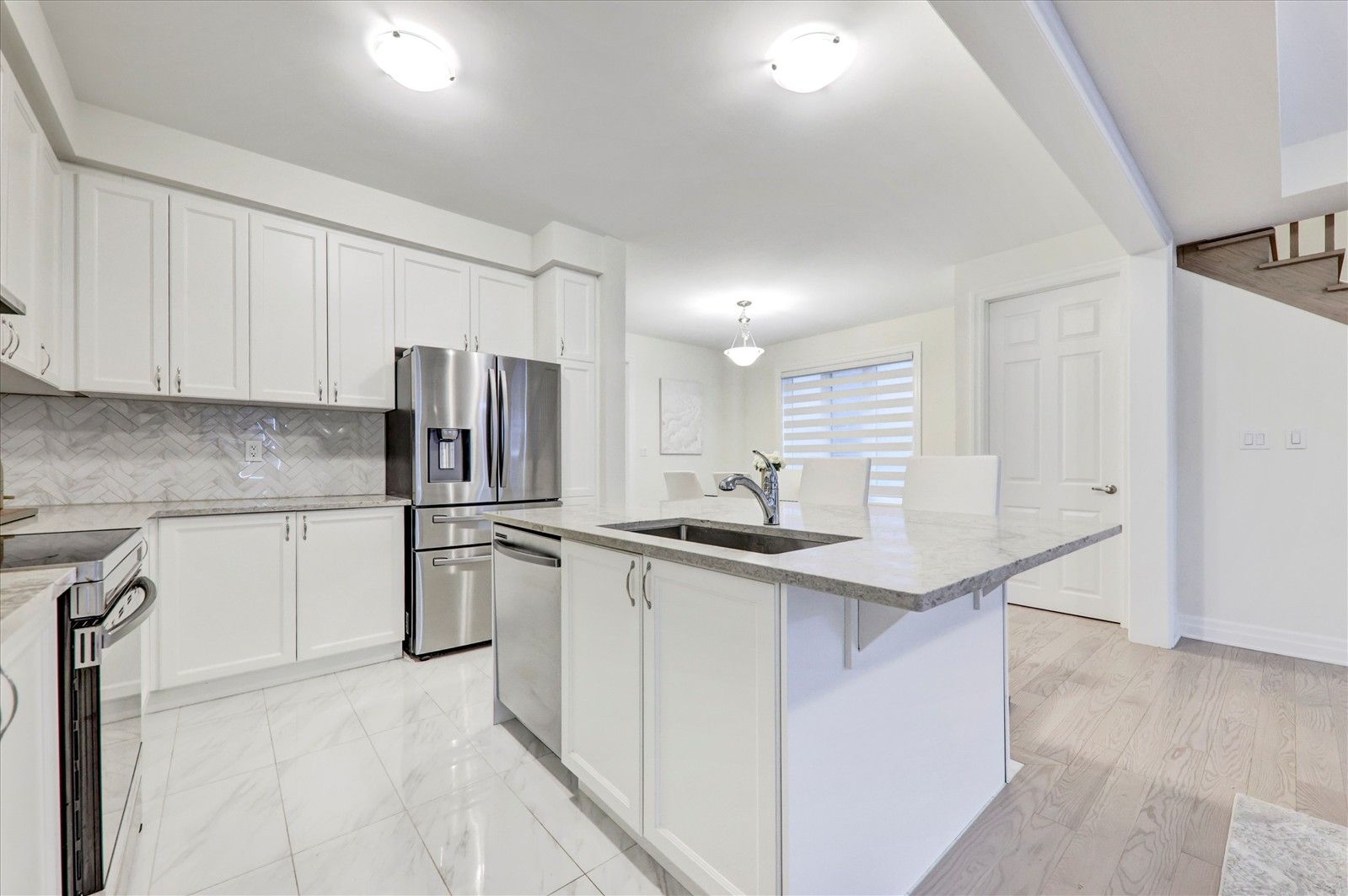 • Open-concept kitchen with quartz countertops and a cozy breakfast bar.