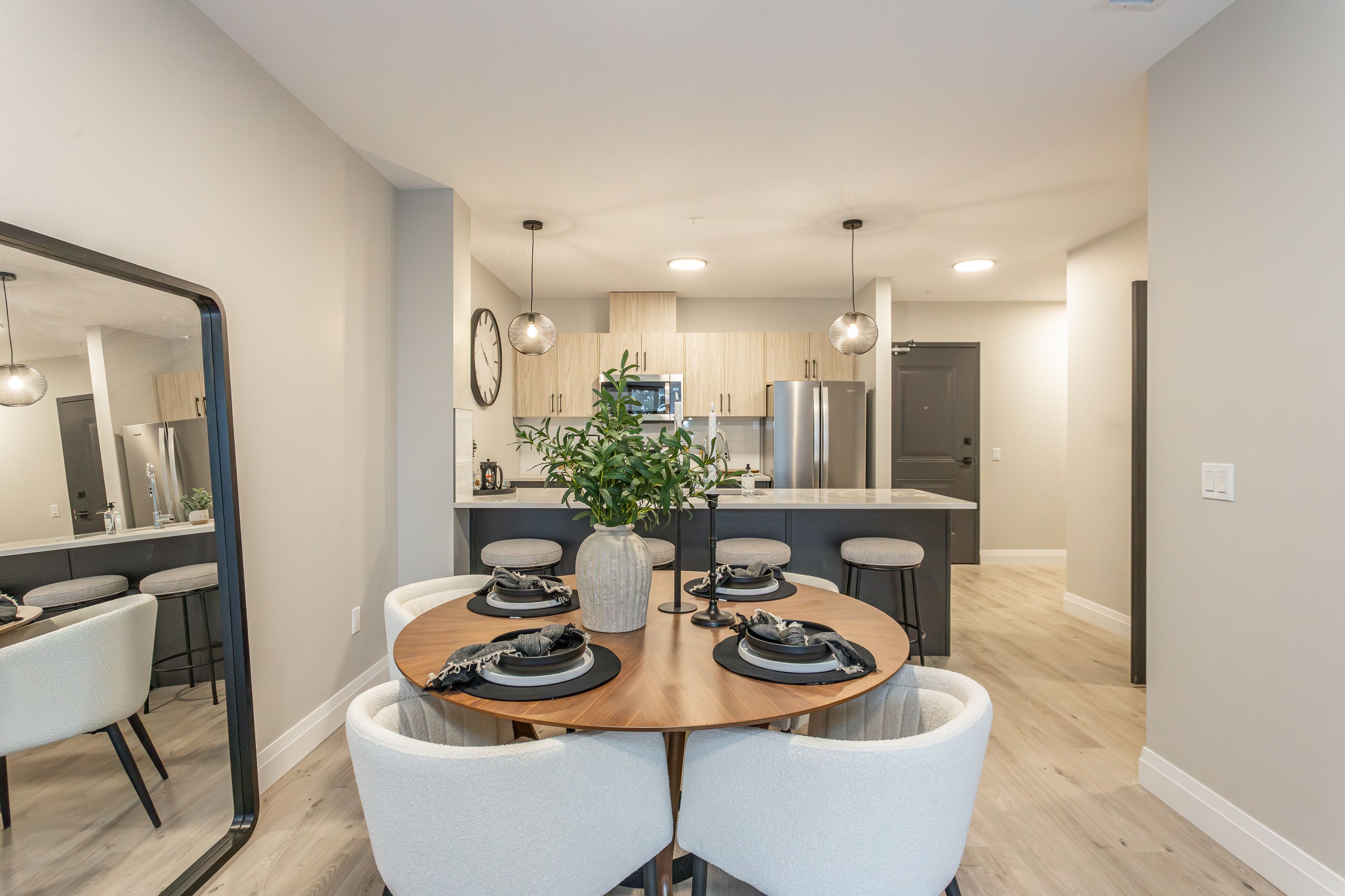 • Modern 2-bedroom, 2-bathroom suites with 910-965 sq. ft. of space.
