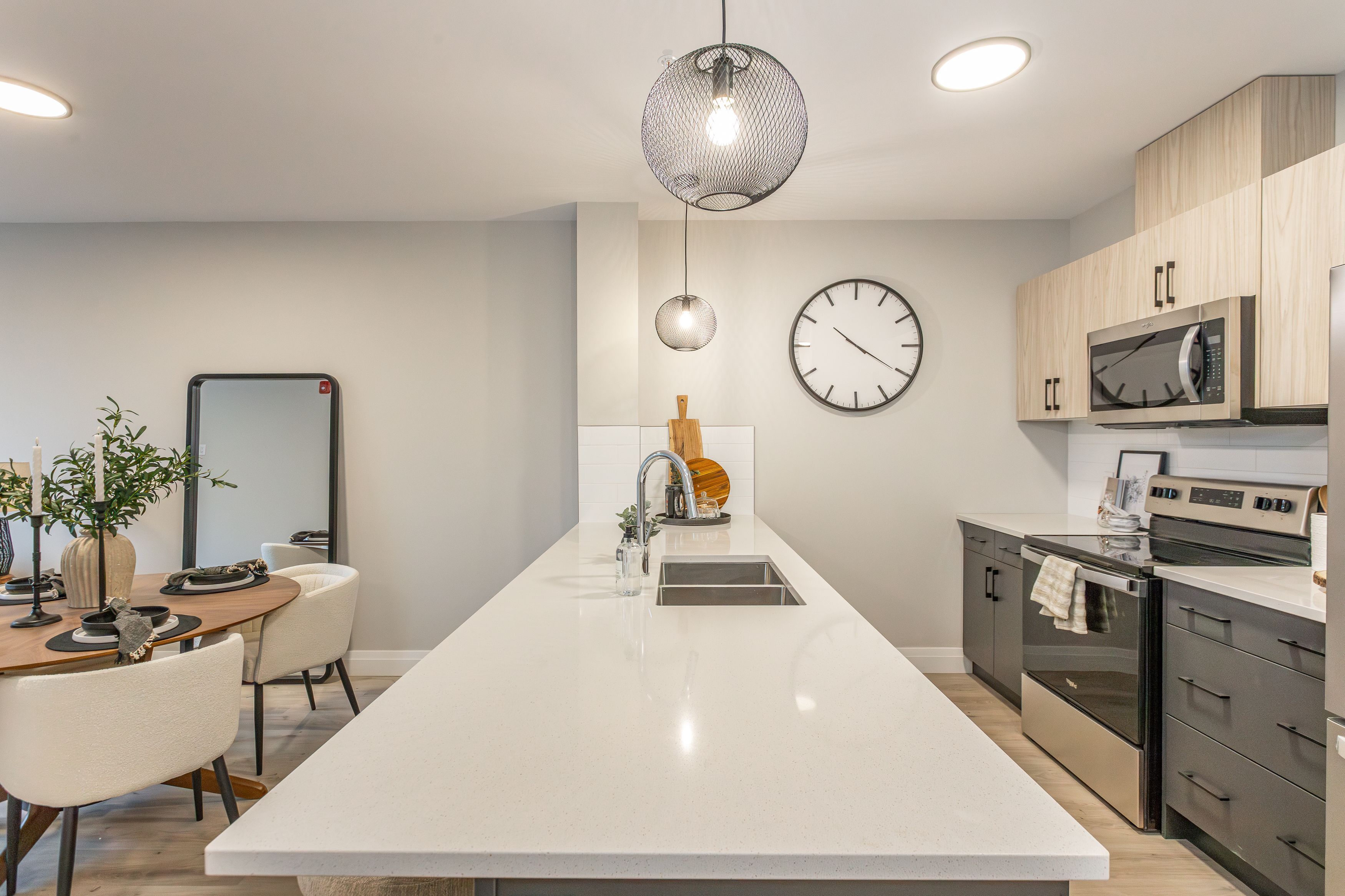 Welcome to modern living in north london's highly sought-after staxlyfe community. These beautifully designed 2-bedroom, 2-bathroom suites offer units between 910 - 965 sq. Ft. Of contemporary living space and features a private balcony, air conditioning, in-suite laundry, stainless steel appliances, quartz countertops, and durable vinyl plank flooring-ideal for comfortable, low-maintenance living. Residents enjoy exceptional building amenities, including a fully equipped fitness room, social lounge, bicycle storage, secure controlled entry, and elevators. This 6-storey, smoke-free, wheelchair-accessible building provides both comfort and peace of mind. Ideally situated within walking distance to food basics, starbucks, dollarama, parks, schools, and public transit, placing everyday conveniences right at your doorstep. Don't miss your opportunity to call staxlyfe home!