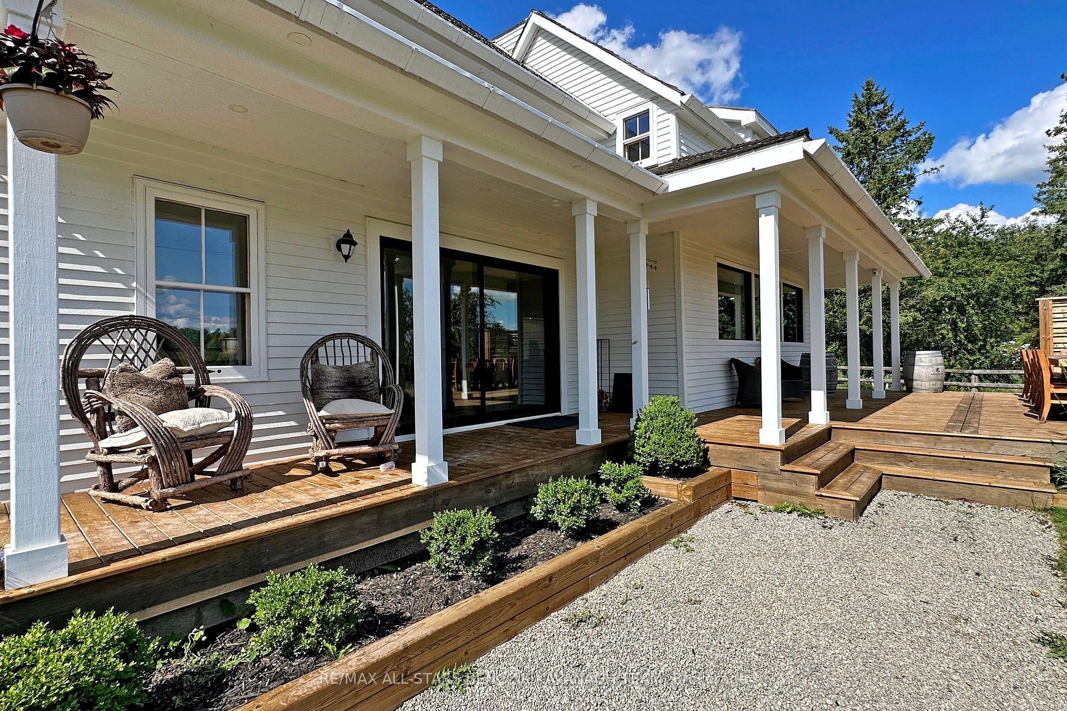 Experience country living at its finest in stouffville with this fully renovated 4-bedroom luxury farmhouse set on approximately 8 acres. The beautifully updated kitchen (2021) is designed for gourmet cooking, featuring premium appliances including a 48" aga mercury oven, caesarstone black tempal quartz countertops, xrock tile backsplash, and a large centre island. The open-concept layout is ideal for entertaining, showcasing upgraded palomina hardwood flooring and expansive windows and doors that capture breathtaking views of the surrounding landscape. Step outside to an oversized deck perfect for outdoor gatherings. The primary bedroom retreat offers serene pond views, a vaulted ceiling, and a spa-like 4-piece ensuite complete with heated floors, a large glass-enclosed shower, and double sinks (2021). Above the garage, a separate loft provides a private sanctuary with its own kitchenette and bathroom. Equestrian and hobby farm amenities include a 66' x 134' solid indoor arena (2005), bank barn with custom-built chicken coop, paddocks, and an outdoor riding ring. The property also features approximately 3 acres of mature hardwood bush. Conveniently located just 10 minutes from downtown stouffville and aurora, and close to nearby golf courses.