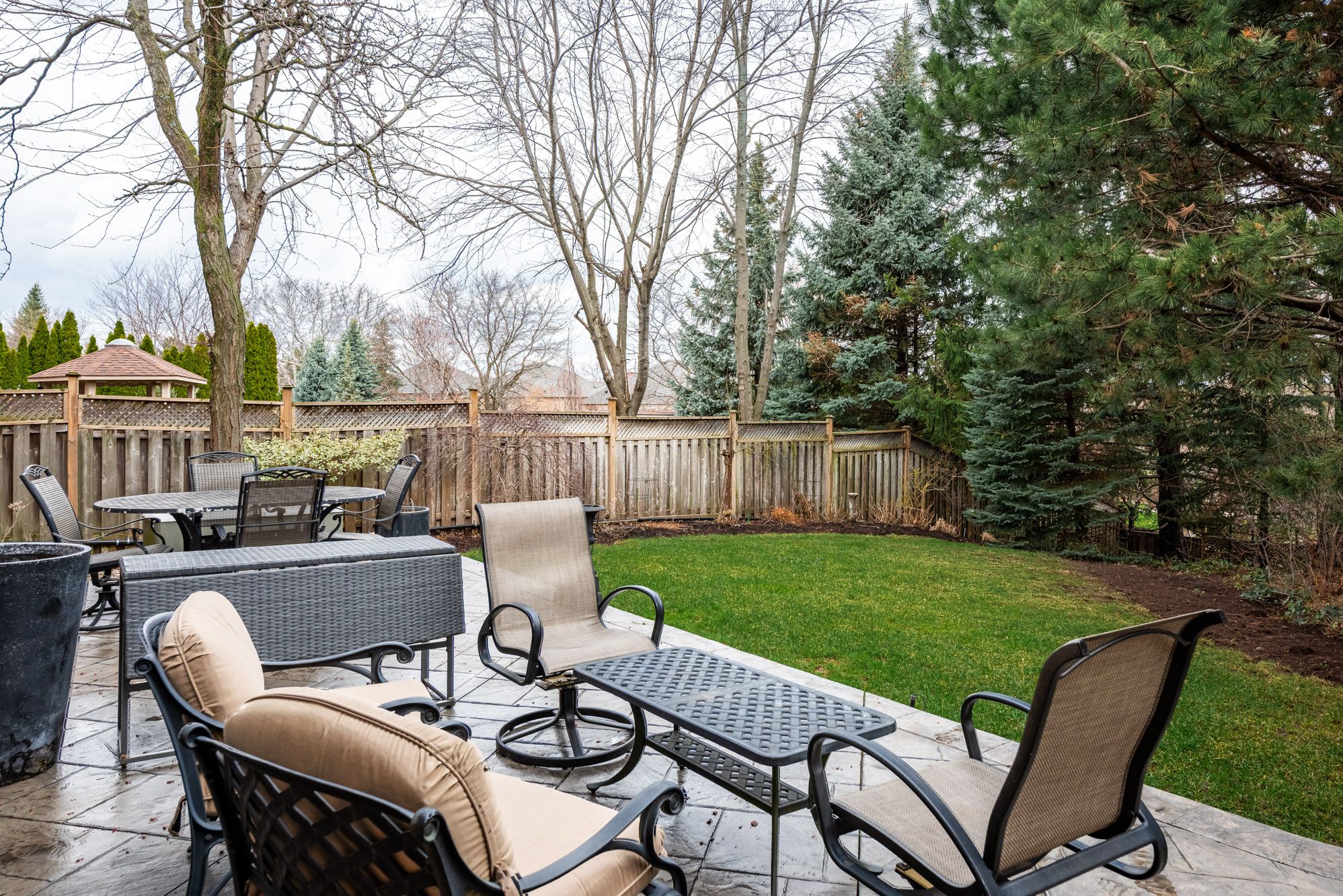 • Private backyard with a choice of gazebo or patio for relaxation.