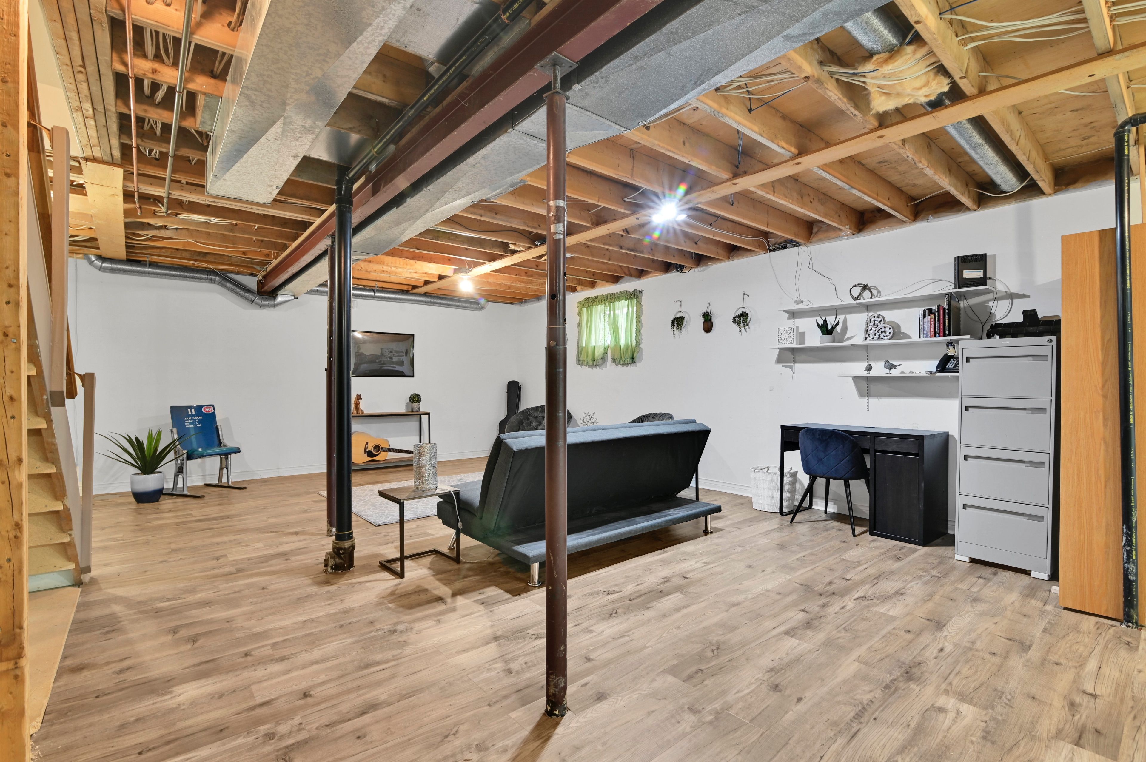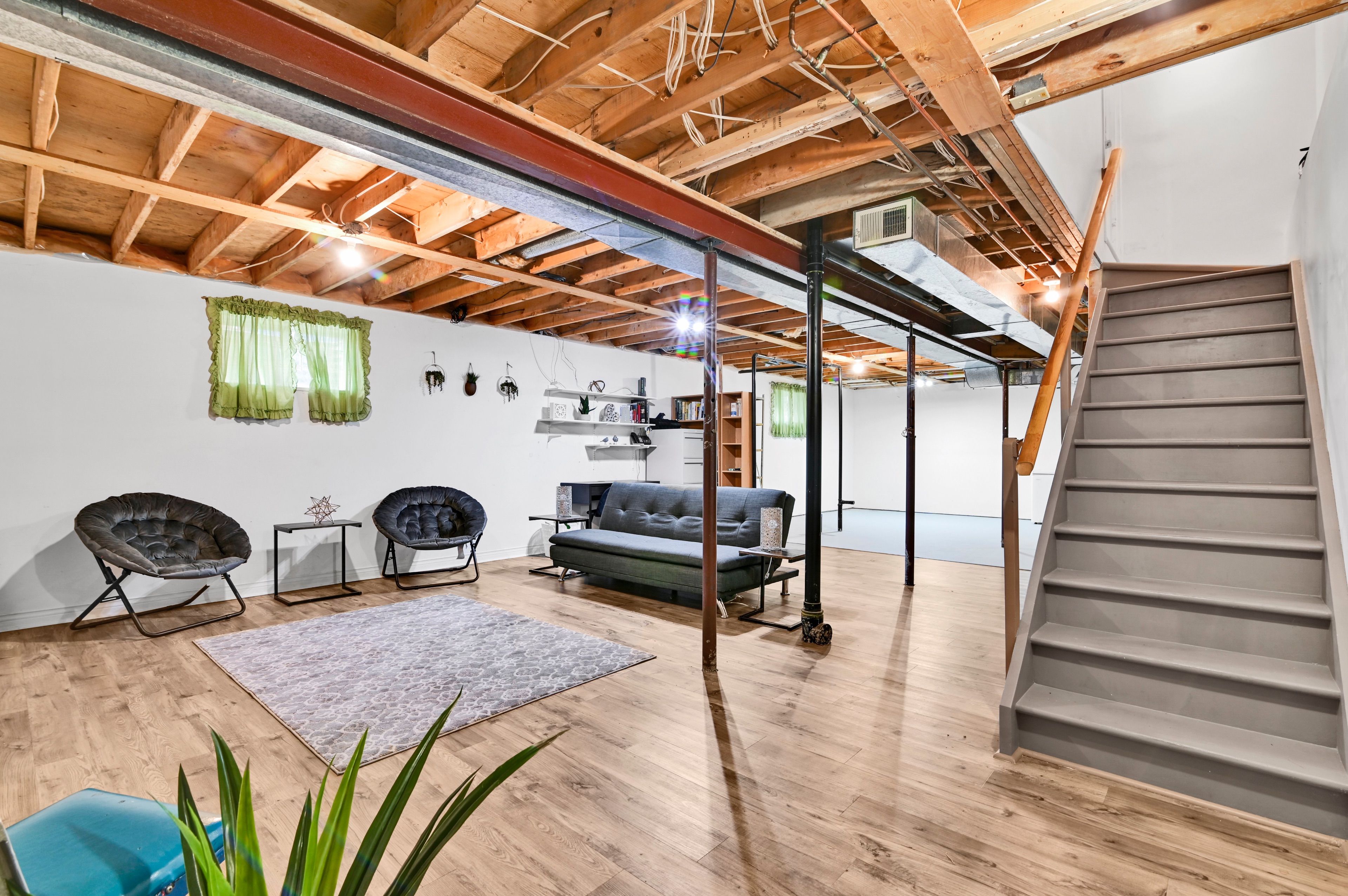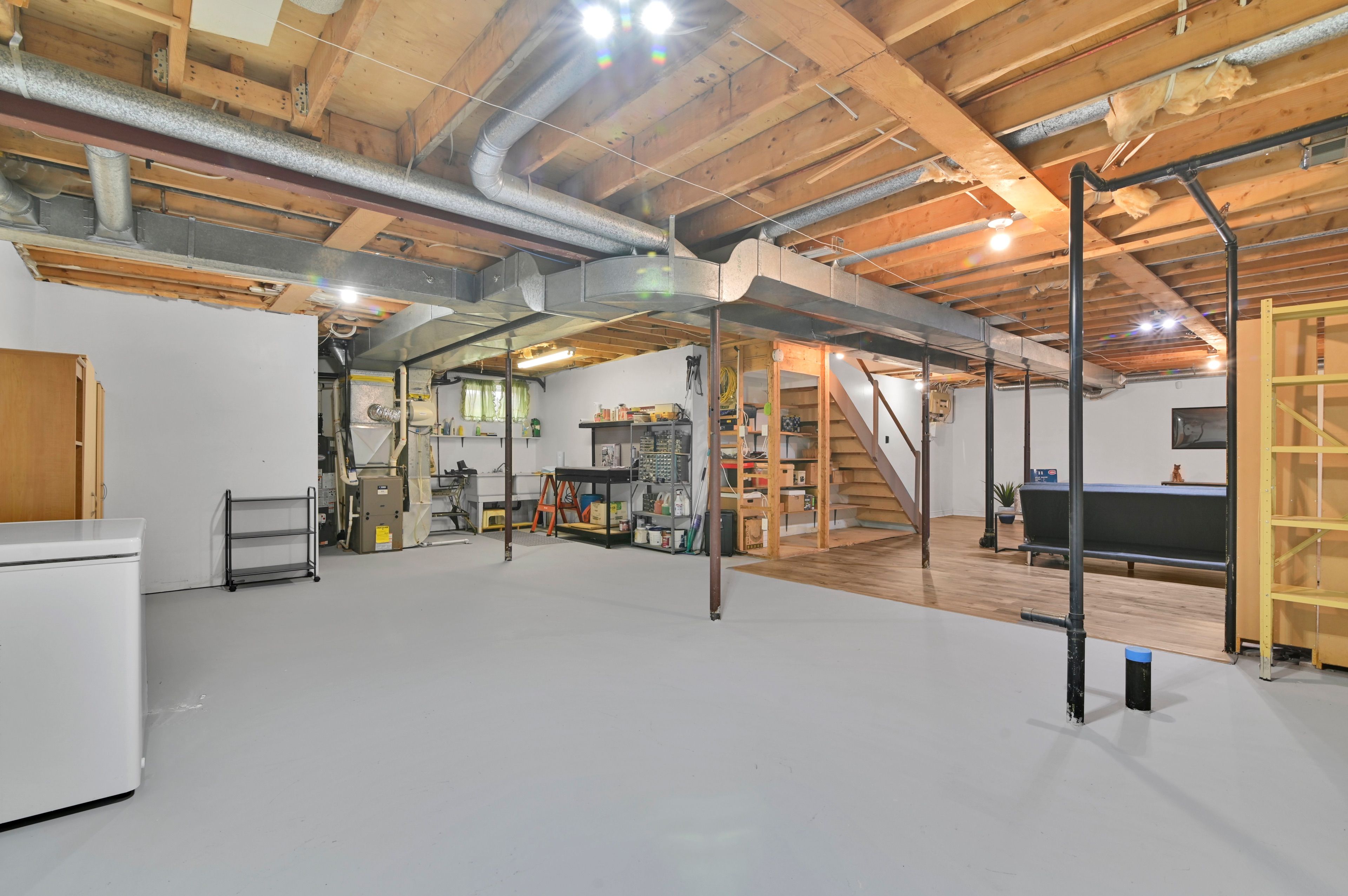 • Partially finished basement plumbed for a future bathroom addition.