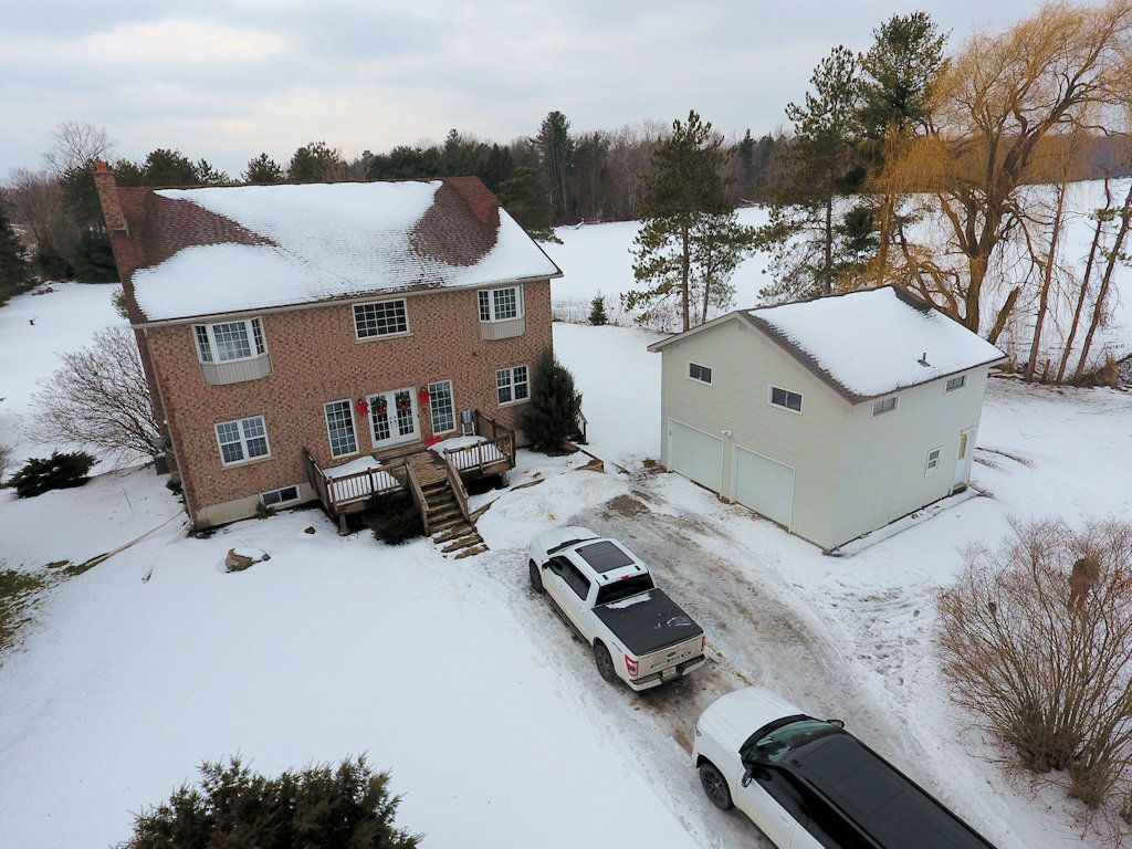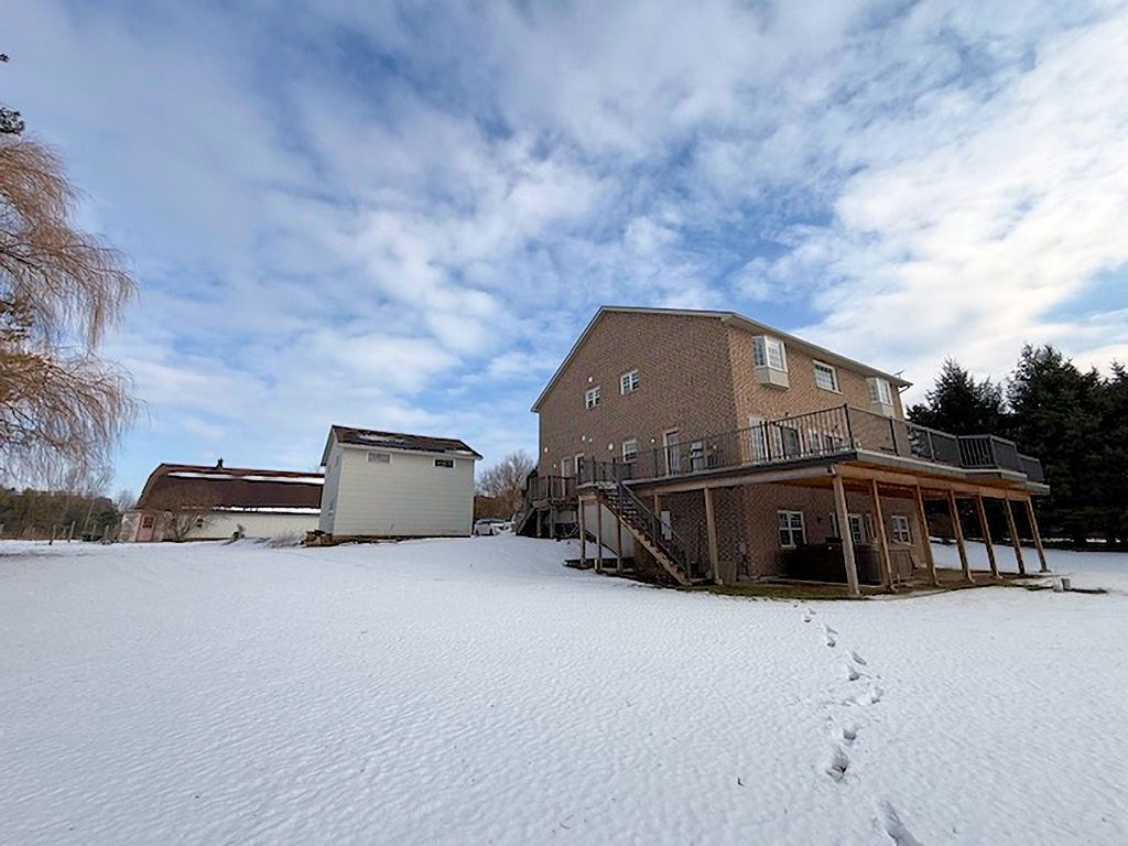 Welcome to beautiful norfolk county. This impressive farm spans approximately 105 acres, with 68 acres of workable land. An irrigation pond is conveniently located midway across the property on far east side. At the heart of the farm sits a custom two storey home, newly built in 2003, showcasing a grand formal entry with porcelain tile floors, exposed maple staircase, & two storey 18' vaulted ceilings. The sun filled main floor features a spacious open concept design, highlighted by a vaulted great room & open catwalk above. The raised panel maple kitchen includes a center island overlooking the great room & dining area, which is perfect for entertaining. The main floor primary suite is a private retreat, complete with a walk-in closet and luxurious 5pc ensuite. A private home office overlooks the front yard, ideal for working from home, along with a 3pc guest bathroom and attached laundry room. The second level offers two oversized bdrms, each approximately 560 sq. Ft., providing ample space for teenagers or extended family. These bedrooms share a 5pc "jack & jill" bathroom. The full walkout basement is ready for future development. Outside, the spacious side yard features a newly installed full length elevated duradeck at the rear of the home, complete with a separate staircase. The solid hip roof barn measures 75' x 45' and is in excellent condition, featuring new steel siding and updated windows. Inside, the barn includes a workshop area and animal stalls, making it ideal for equipment, vehicles, or livestock. A detached garage/shop adjacent to the home includes an upper level apartment, perfect for guests or farm labour. Recent upgrades include a new furnace and air conditioning (aug 2020), upgraded r-60 insulation (2019), and a new asphalt roof (2018). Ideally located just minutes from long point, several conservation areas, and only a six-minute drive to lake erie.