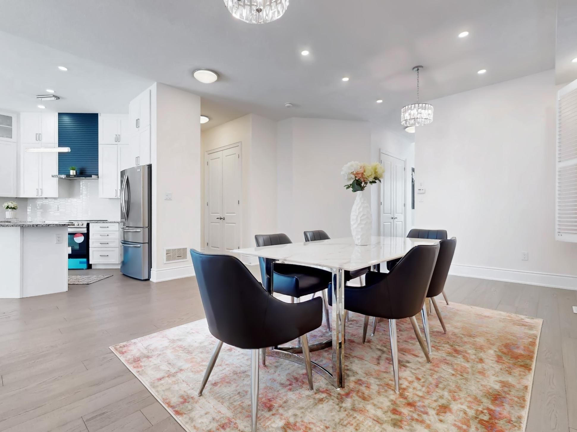 • Three full kitchens and five washrooms for flexible living options.