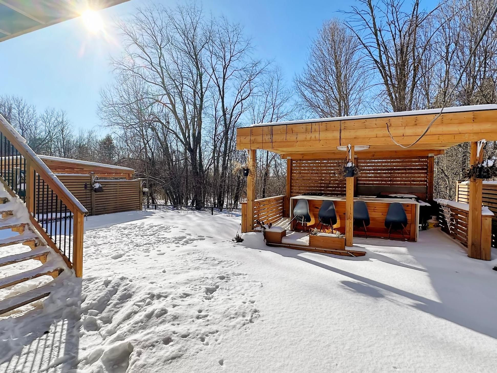 • Private backyard featuring a custom pergola and gazebo for outdoor gatherings.