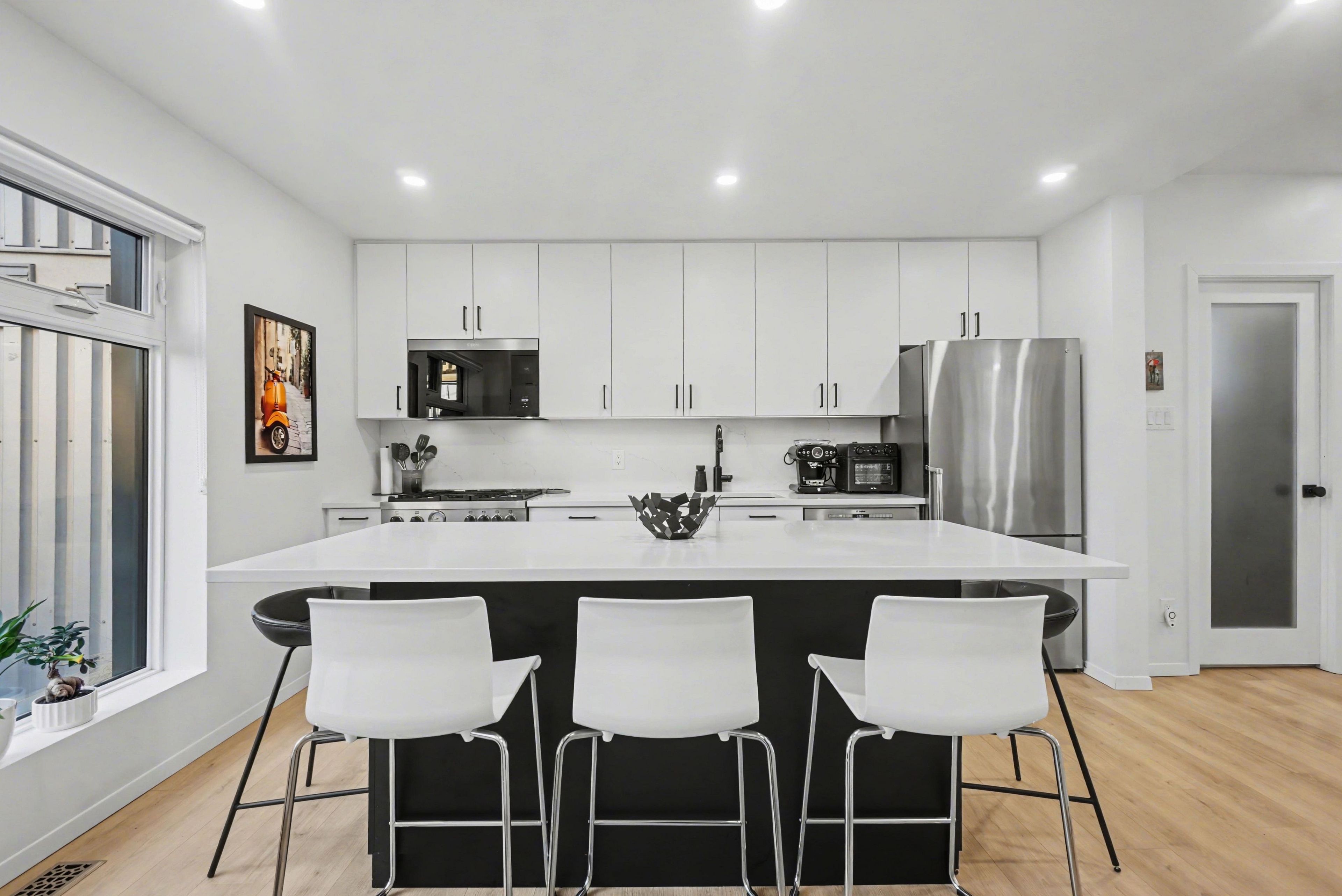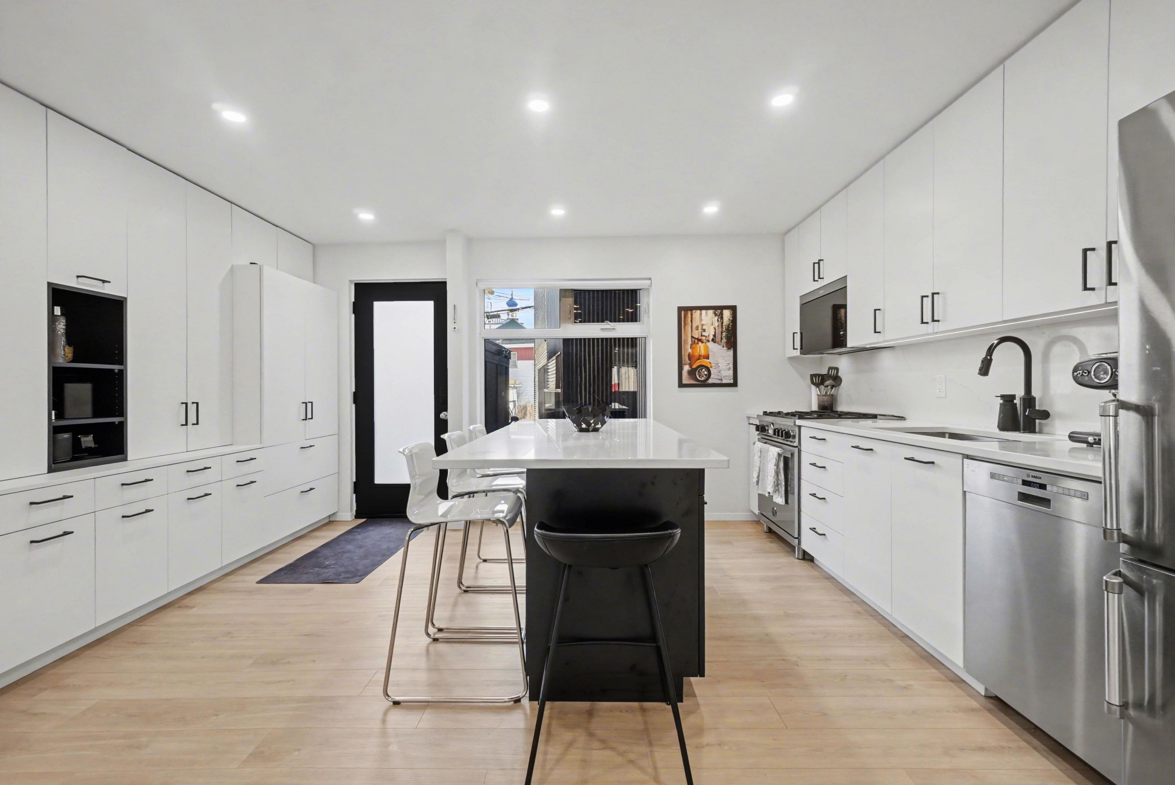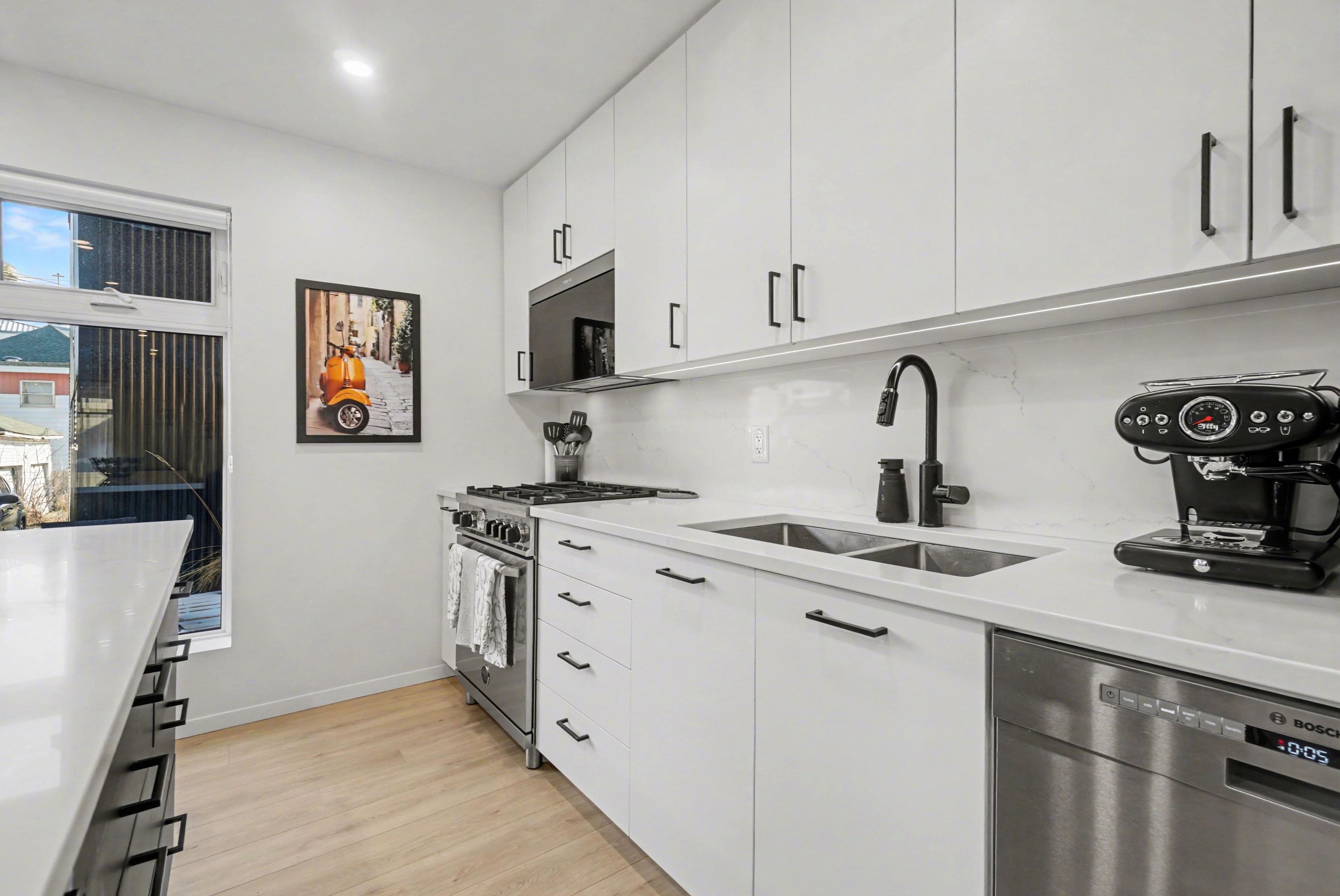 • Well-appointed kitchen with Italian chef appliances and open living space.
