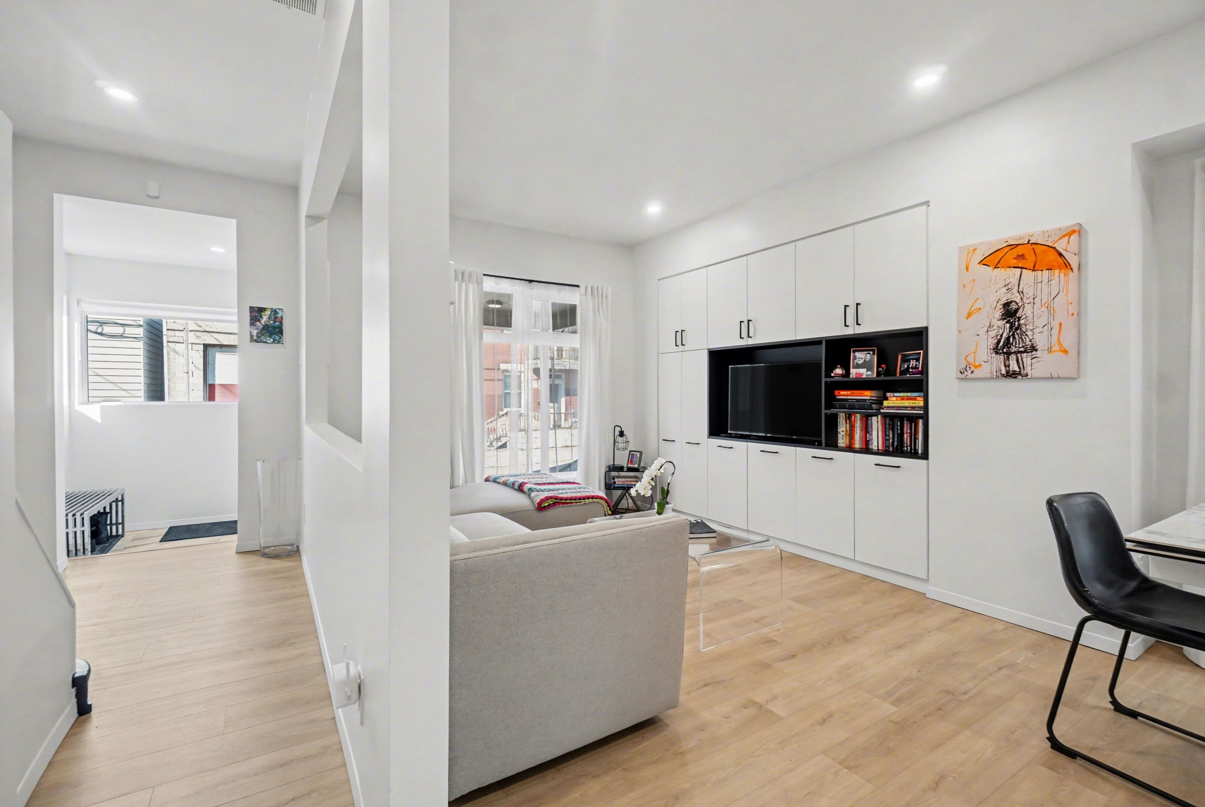 • Bright interior with custom millwork and ample natural light throughout.