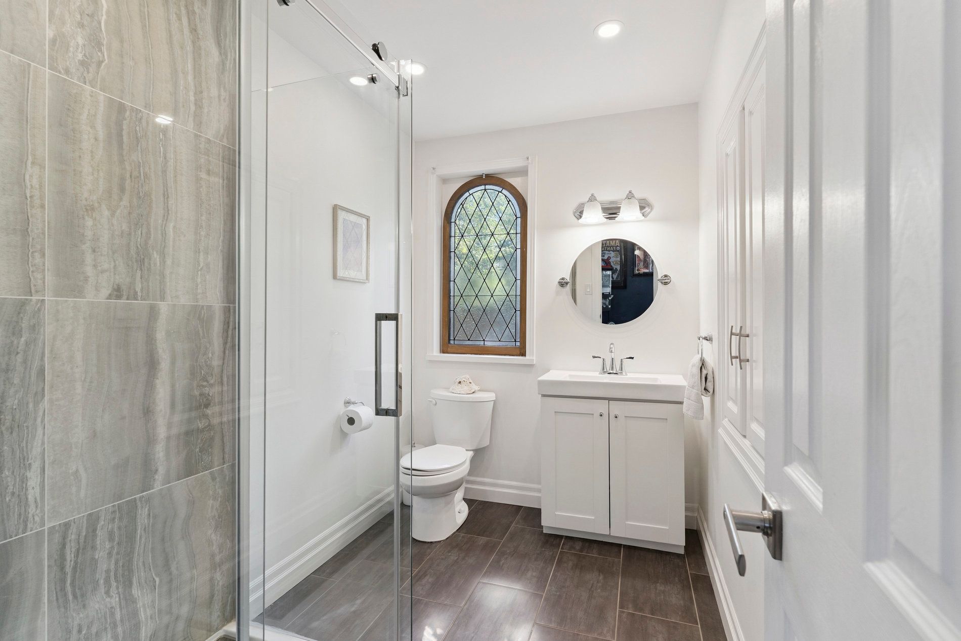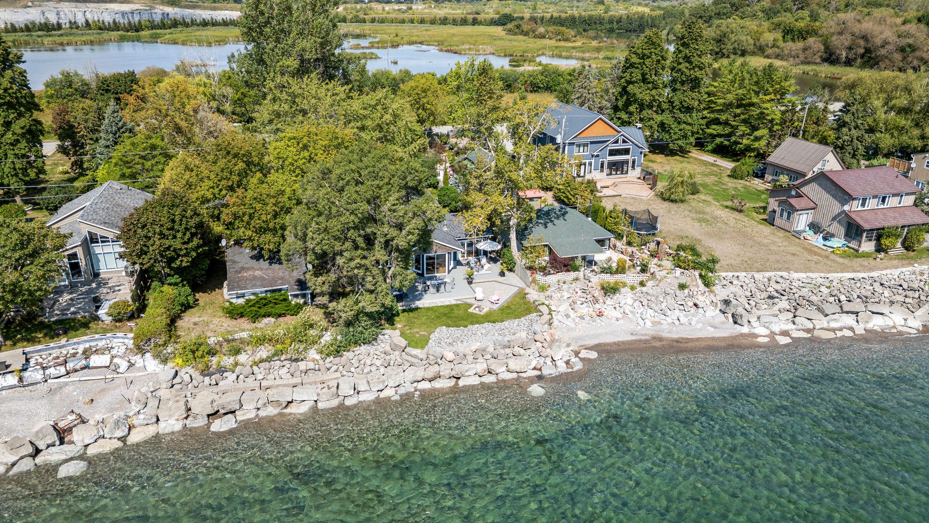 Awaken to sweeping views of lake ontario from this elegant waterfront bungalow, set on a rare 300-ft-deep lot with over 40ft of private lakefront. The vaulted great room features a stunning floor-to-ceiling stone fireplace, cathedral ceilings, and 12-ft sliding glass doors all connecting seamlessly to the expansive lakeside trex decking. A chefs kitchen complete with thermador appliances, convenient pot filler, modern counters, elegant skylight windows, and a pass-through window, that truly bring the sound of waves crashing on the shoreline, inside. The primary suite offers a spa-like ensuite with heated marble floors, walk-in closet, and direct walkout to the deck. A separate wing includes a full second kitchen, family flex room with expansive sliding glass doors to the courtyard, a bedroom, and 3-pc bathideal for multi-generational living. The detached 2 car garage features an insulated loft apartment with a kitchen, 3-pc bath, fireplace, and walk-in closet. Landscaped grounds include a hot tub, exquisite french inspired gardens, and multiple outdoor living areas, all just minutes from downtown bowmanville, hwy 401, and under an hour to toronto.