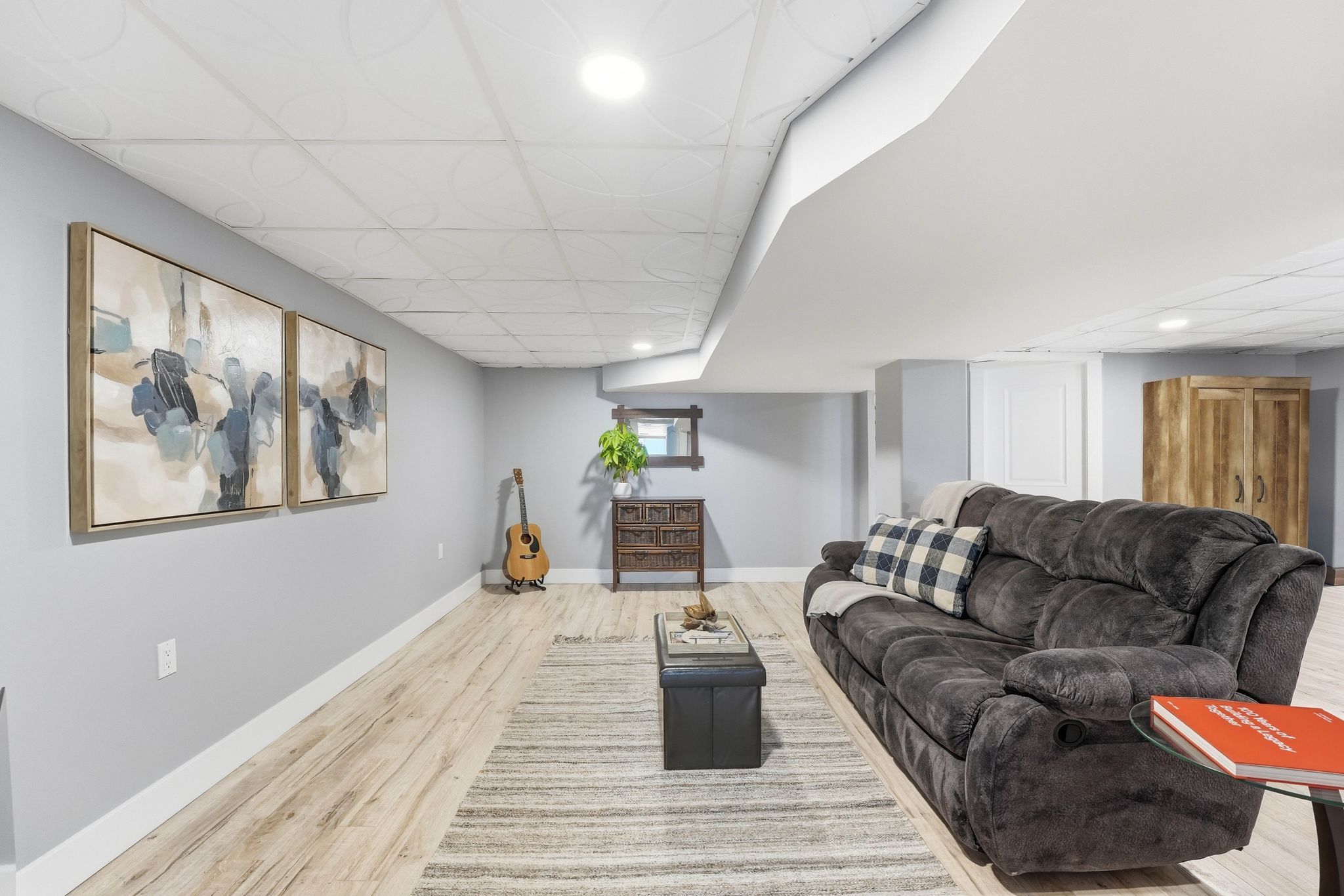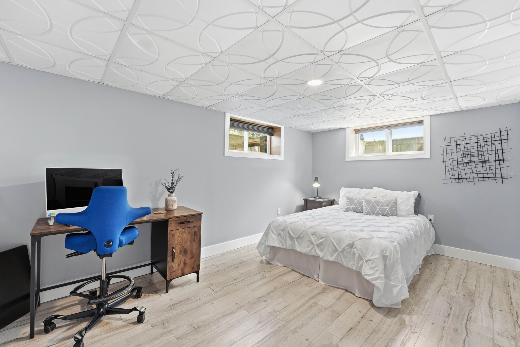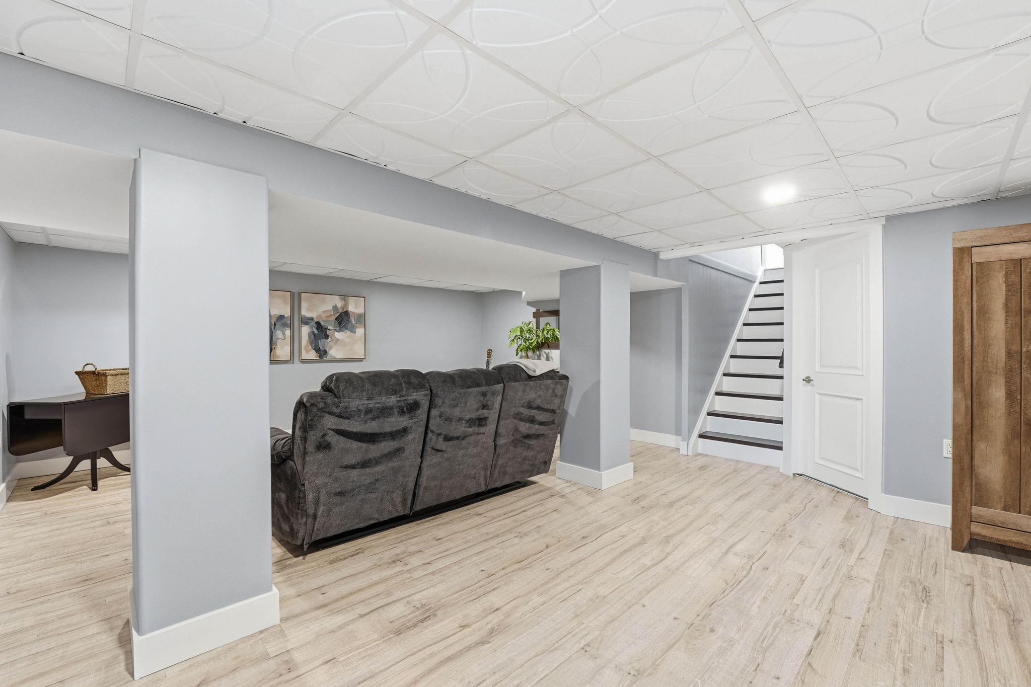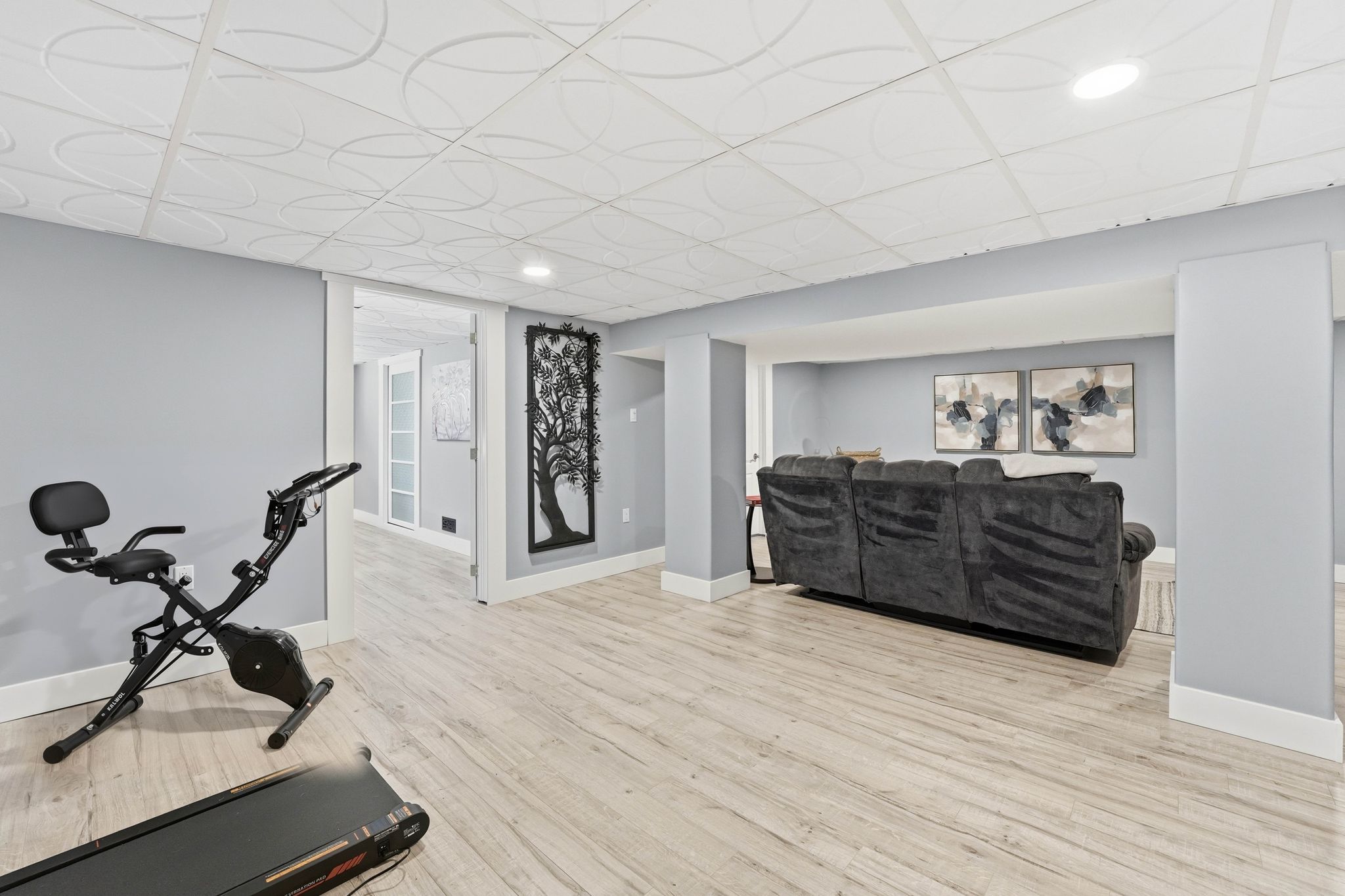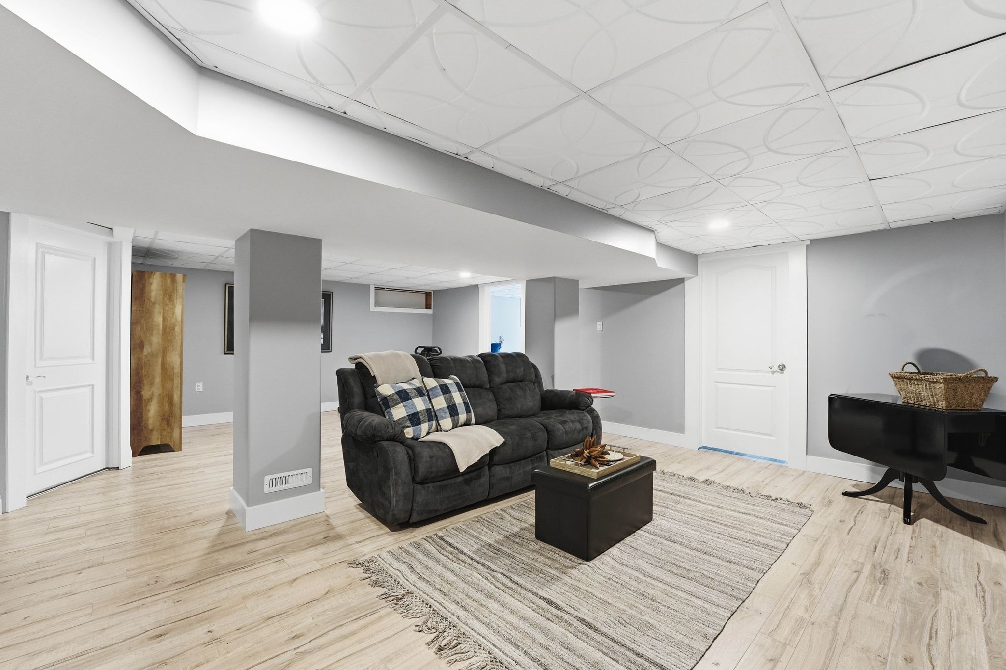 • Fully finished basement with two bedrooms and a large recreation area.