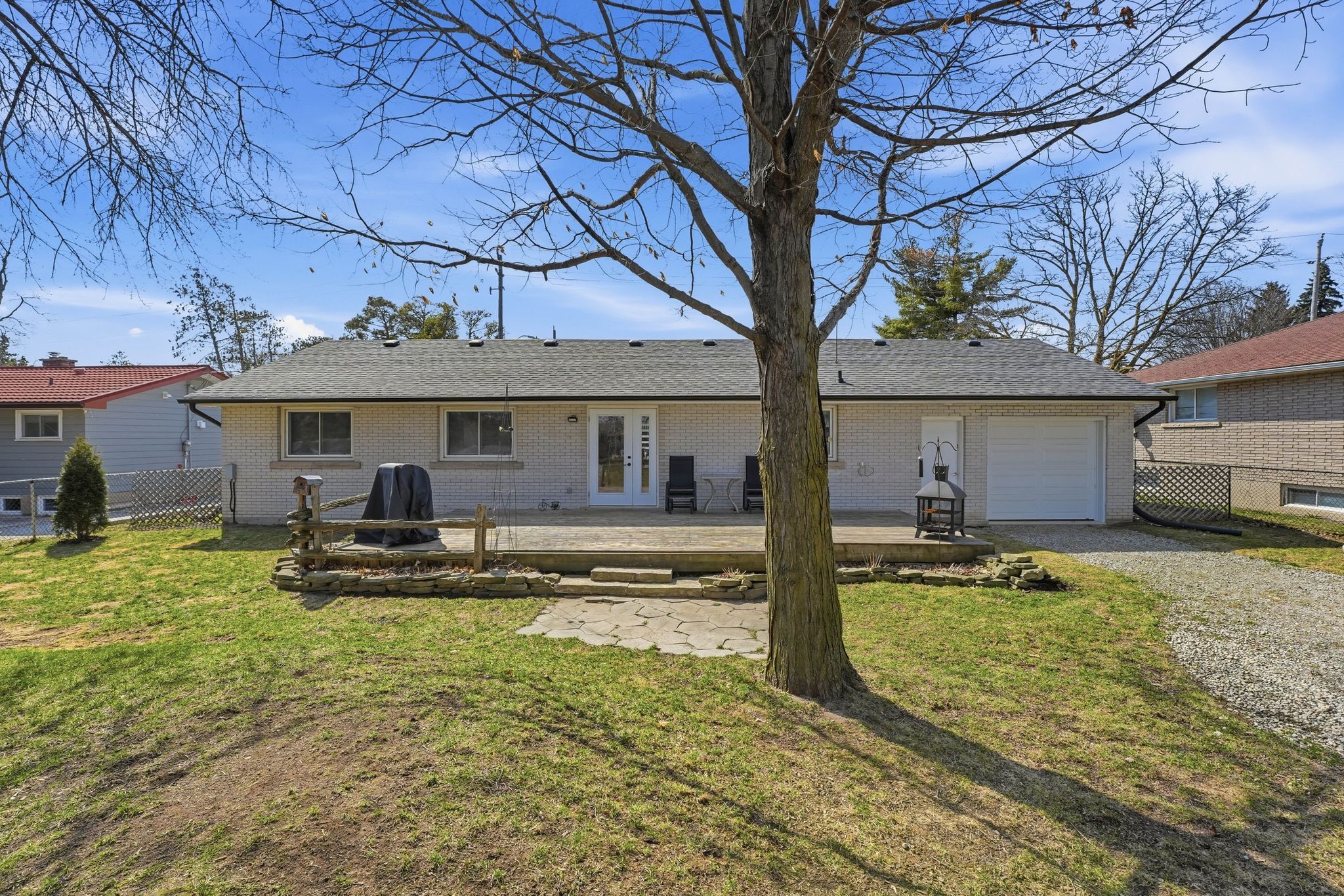Welcome to 141 church street north, a beautifully updated 2+2 bedroom bungalow set on an oversized 76' x 125' mature lot in the north end of alliston. This home has been exceptionally well cared for, with thoughtful upgrades throughout, making it completely move-in ready. The main floor was originally designed as a 3-bedroom layout (and can easily be converted back), but is currently configured as a spacious primary suite offering a true retreat. The bright, open-concept living area features a custom fireplace and flows seamlessly into a separate dining space with a walk-out to a private deck and beautifully landscaped backyard, while the renovated kitchen is both functional and stylish for everyday living. The fully finished basement adds incredible versatility with two additional bedrooms, a large recreation space, and ample storage, ideal for families, guests, or working from home. A standout feature is the impressive garage setup, including a 24x24 detached garage (approx. 2. 5 car) plus a 1-car attached garage with inside entry, along with a large double driveway. The home is connected to municipal services, so there is no septic. Located within walking distance to alliston's vibrant amenities and community events, including ribfest, potato festival, parades, shops, and the hospital, you can truly enjoy everything this community has to offer. With great schools, parks, restaurants, and quick access to highway 89 and highway 400, this home offers the perfect balance of lifestyle and convenience for buyers looking to get into the market or downsize without compromising on space.