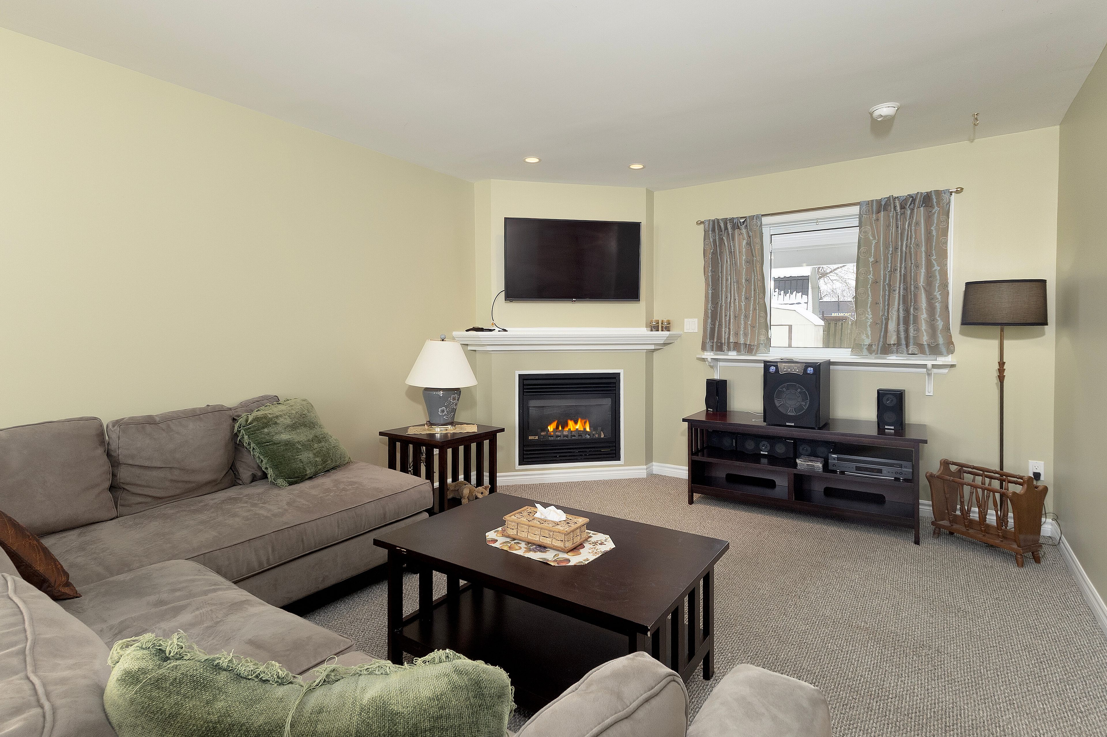 • Cozy living room with a natural gas fireplace and included flat-screen TV.