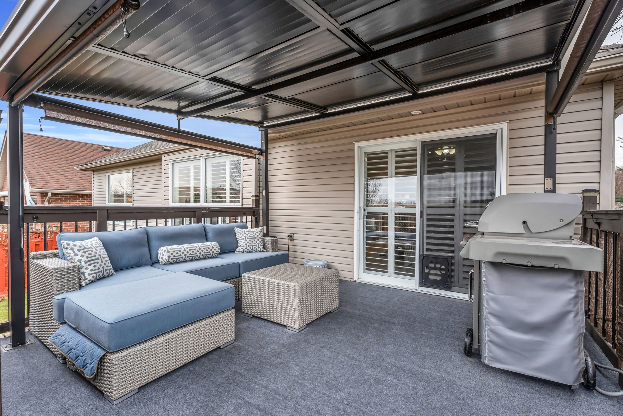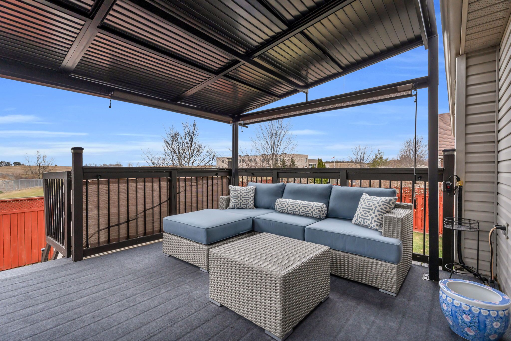 • Outdoor gazebo with retractable roof is great for entertaining.