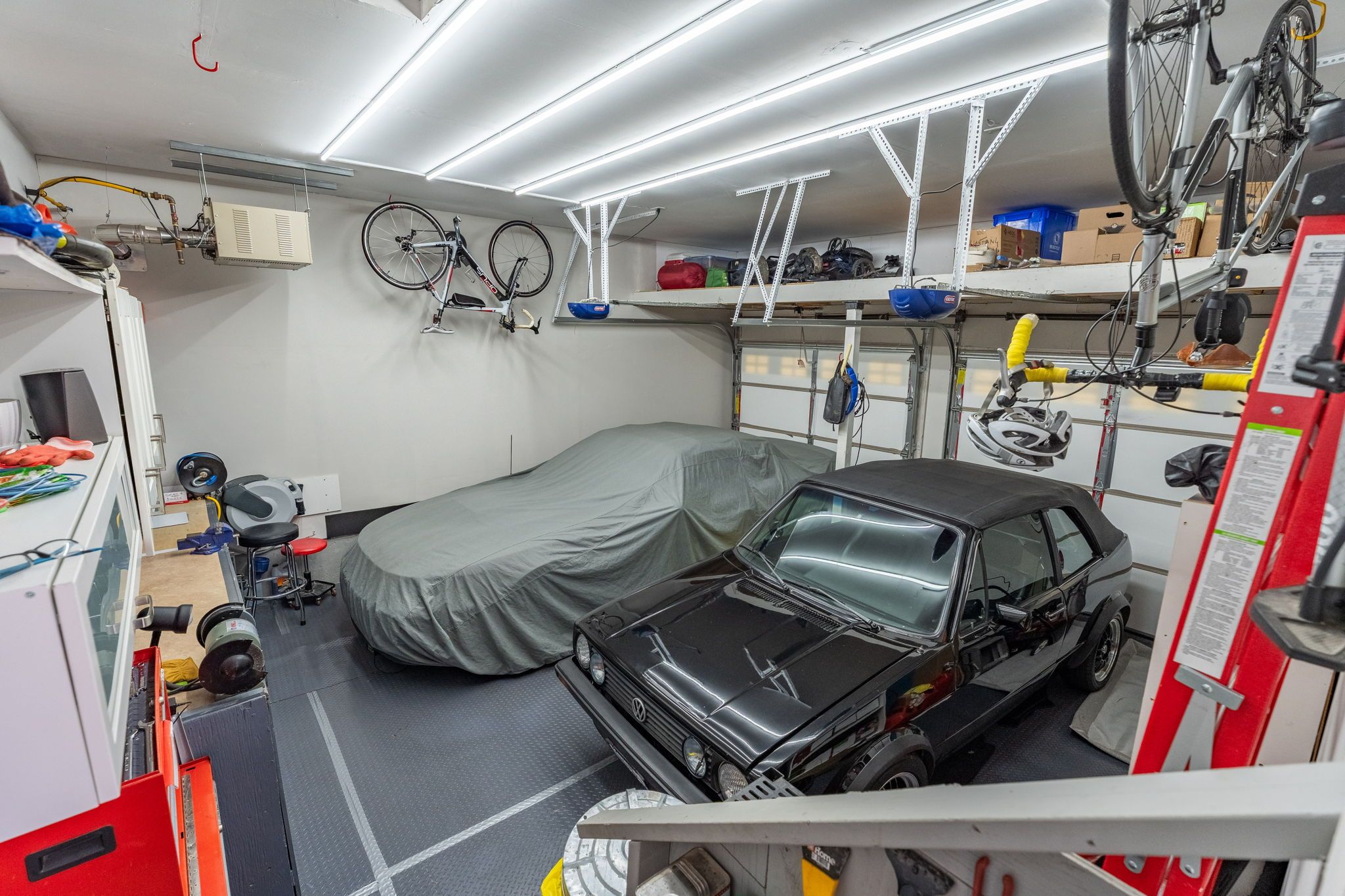 • Spacious two-car garage with custom organization and year-round heating.