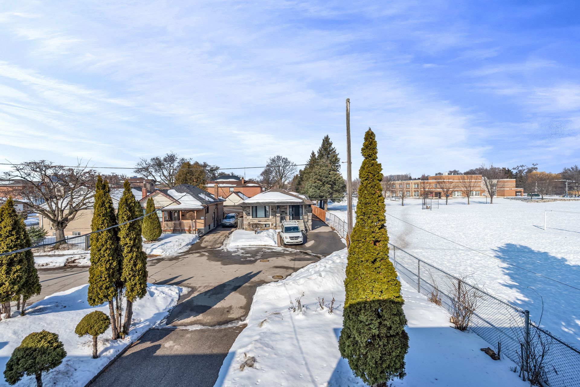 Large detached toronto home on a quiet court next to an open field! True pride of ownership well maintained and upgraded 2 kitchen, 2. 5 bath, 3 bedroom home! Spacious open concept main floor with sun filled living and dining room, family sized eat in kitchen with breakfast area and a rare two piece main floor bathroom for your guests! Upper floor features three large bedrooms, hardwood flooring, large closets and an updated full four piece bathroom with tub! Finished lower level has plenty of natural light with above grade windows, a potentially private side entrance, 2nd kitchen, open concept rec room with wood fireplace and a huge cold cellar! The finished lower level is ideal for extended family or potential income! Worry free ownership with recently upgraded: roof shingles, eavestroughs, furnace, central air, upgraded attic insulation and more!! The long private driveway leads to a gorgeous double detached garage garage for plenty of parking and storage! Enjoy clear views siding on to a park/field and the quiet enjoyment of living on a small and private court / cul de sac of just a few homes! All this in an ideal toronto location close to highway access, the upcoming eglinton lrt, schools, parks, humber hospital and much more!