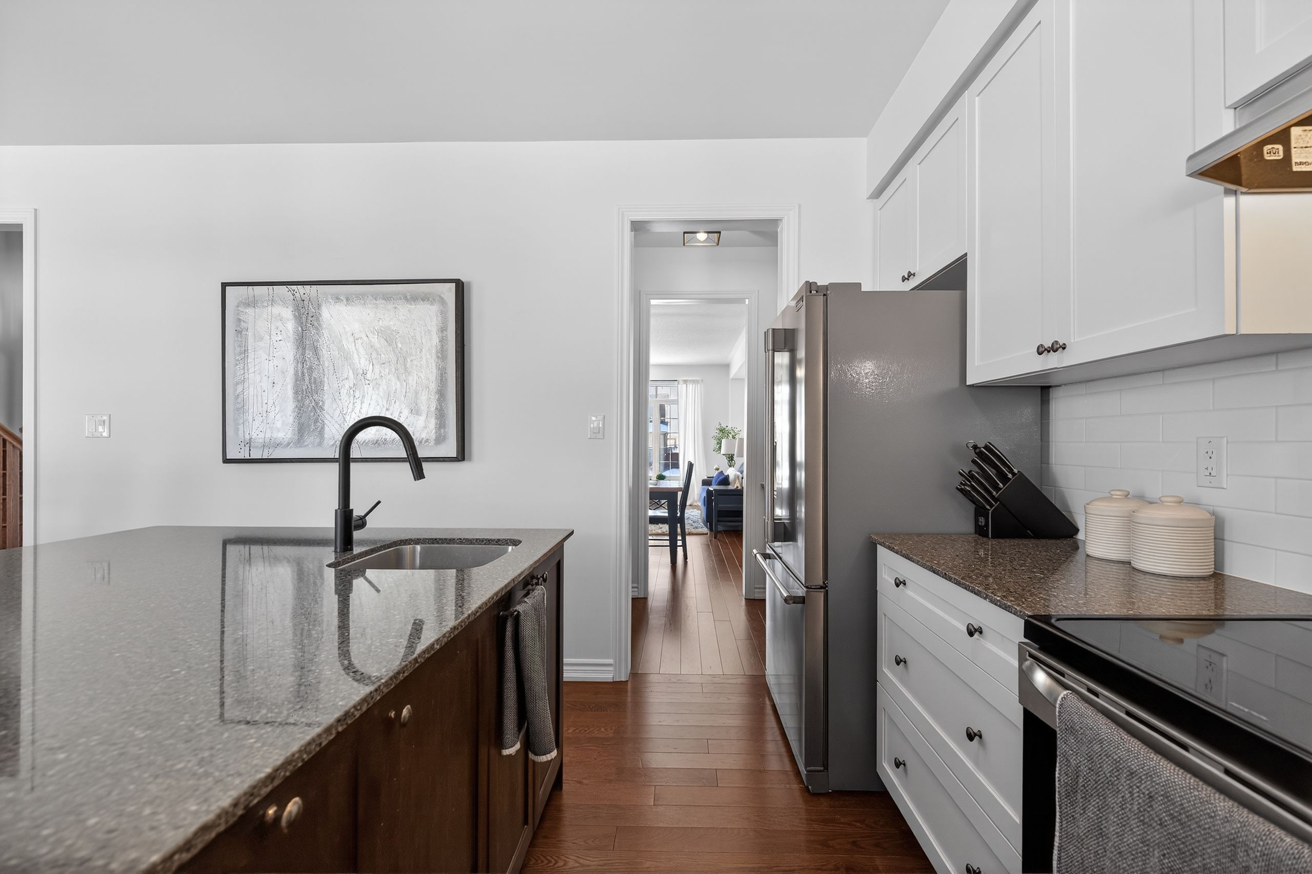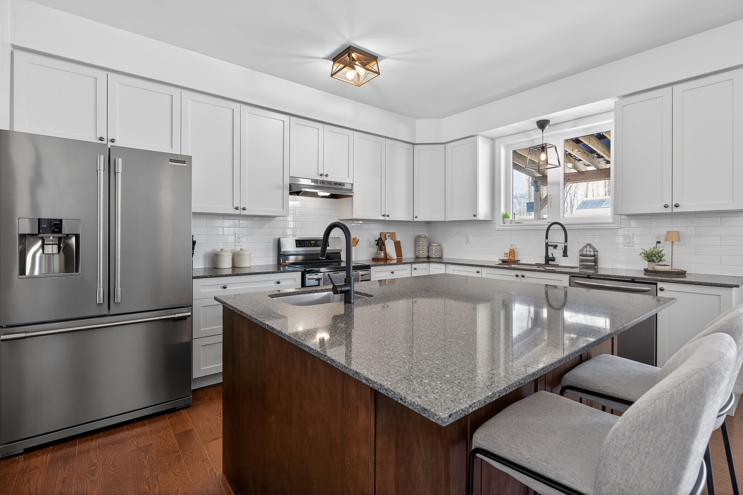 • Chef-inspired kitchen features quartz countertops and a large island.